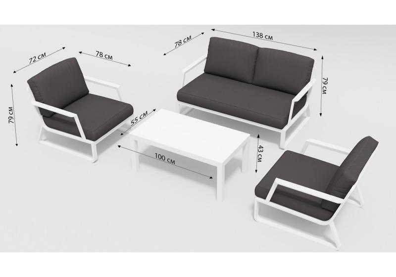 Цвет: каркас белый / подушки антрацит / столешница белая глянцевая