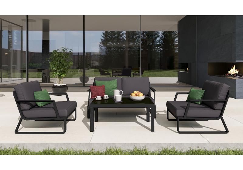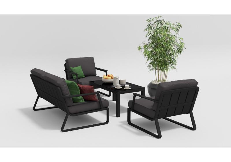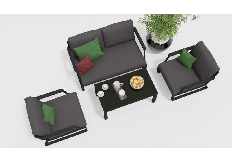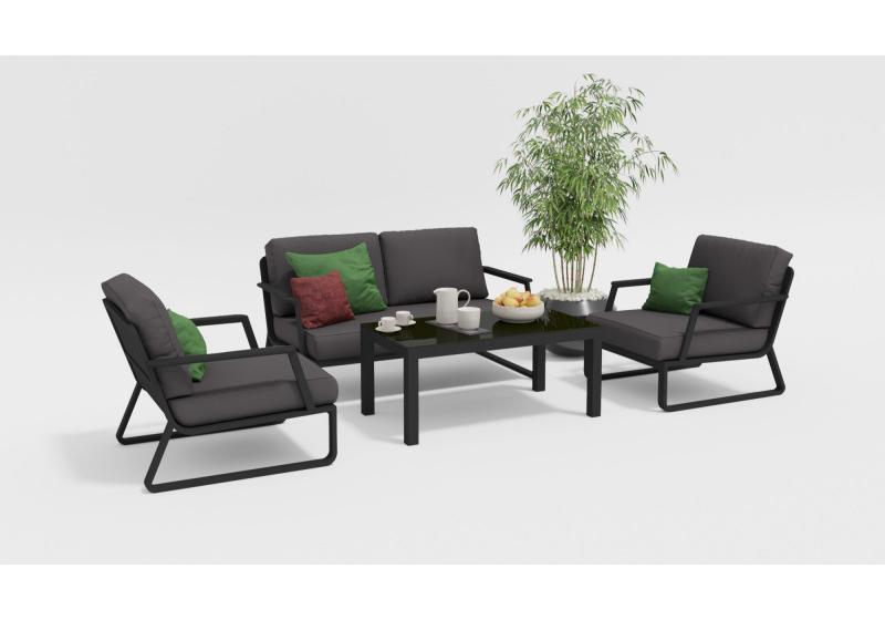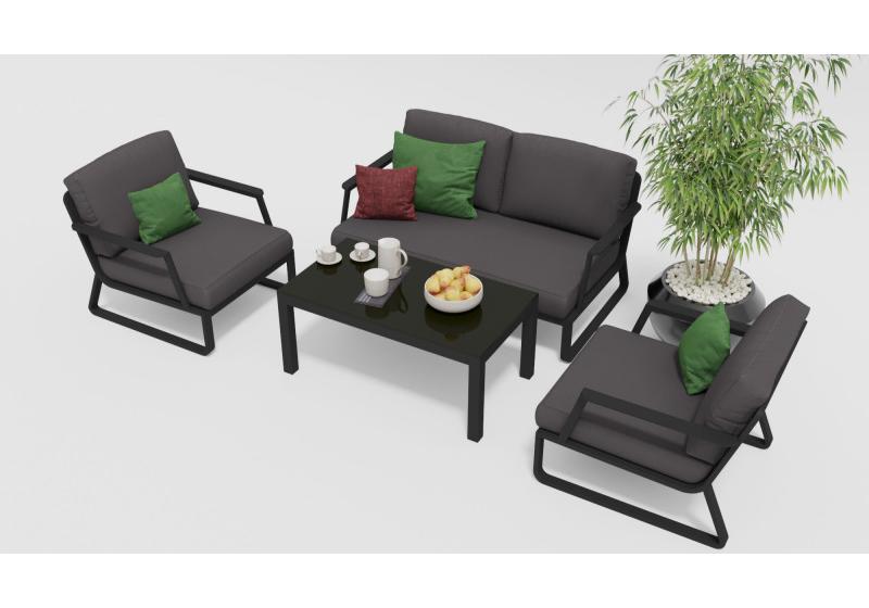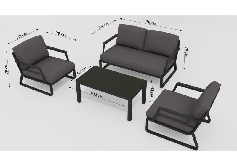 Цвет: каркас темно-серый карбон / подушки антрацит / столешница черная глянцевая