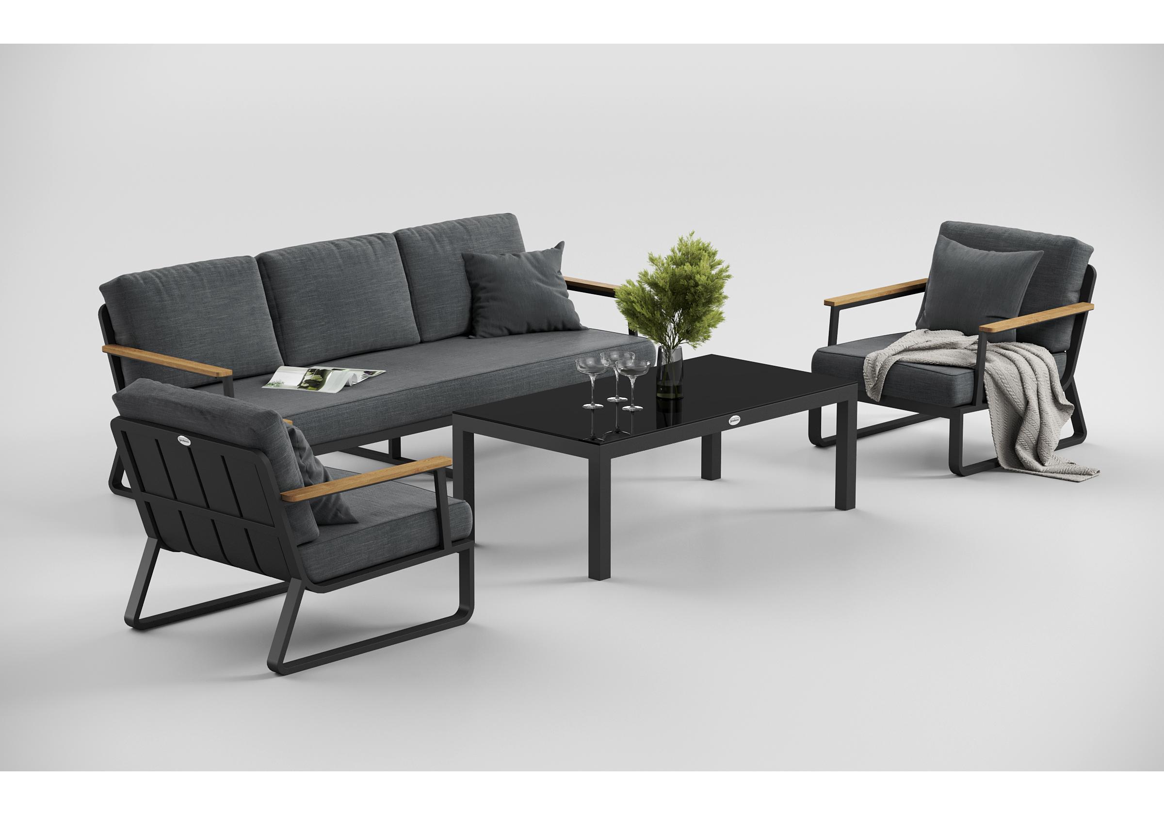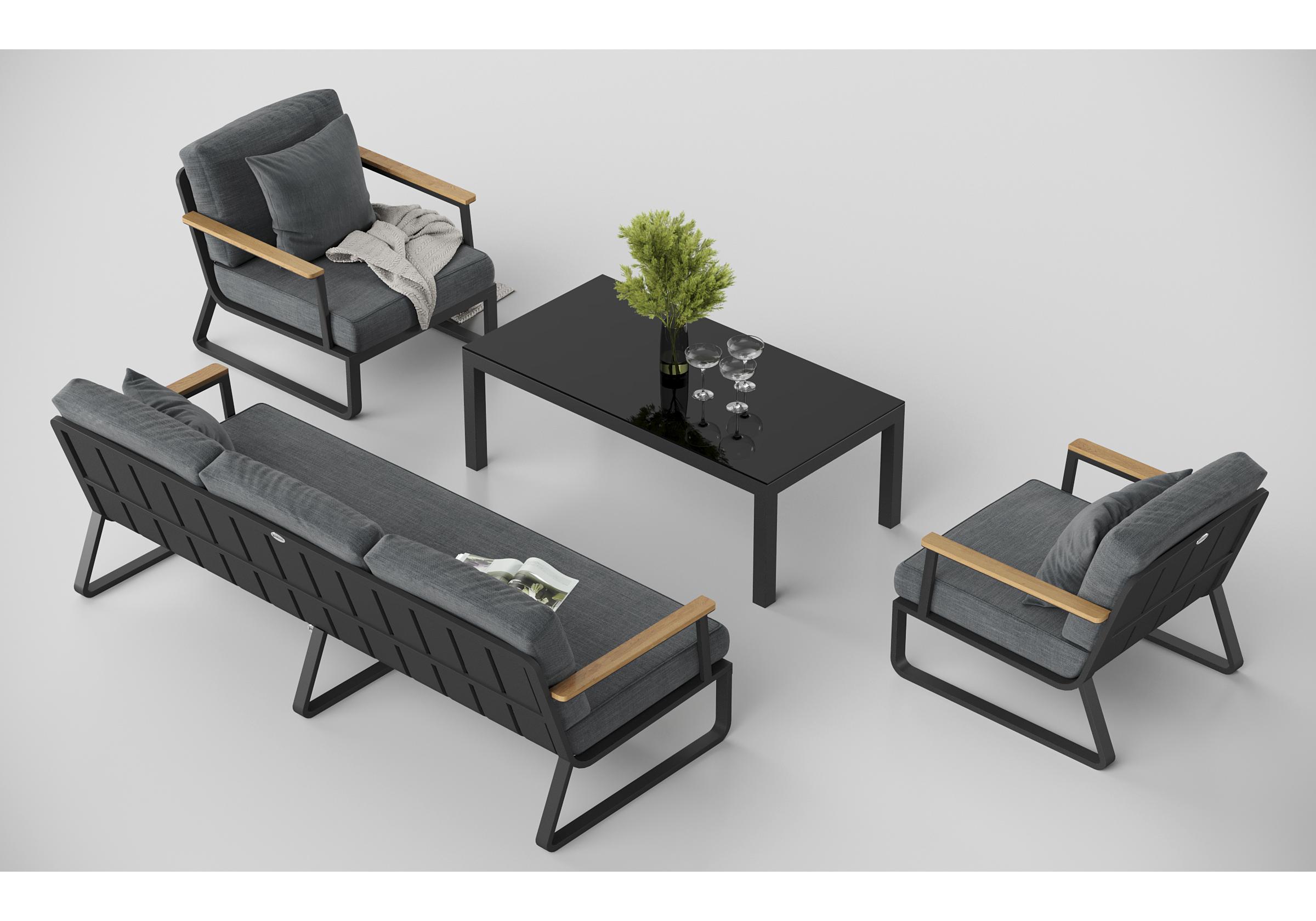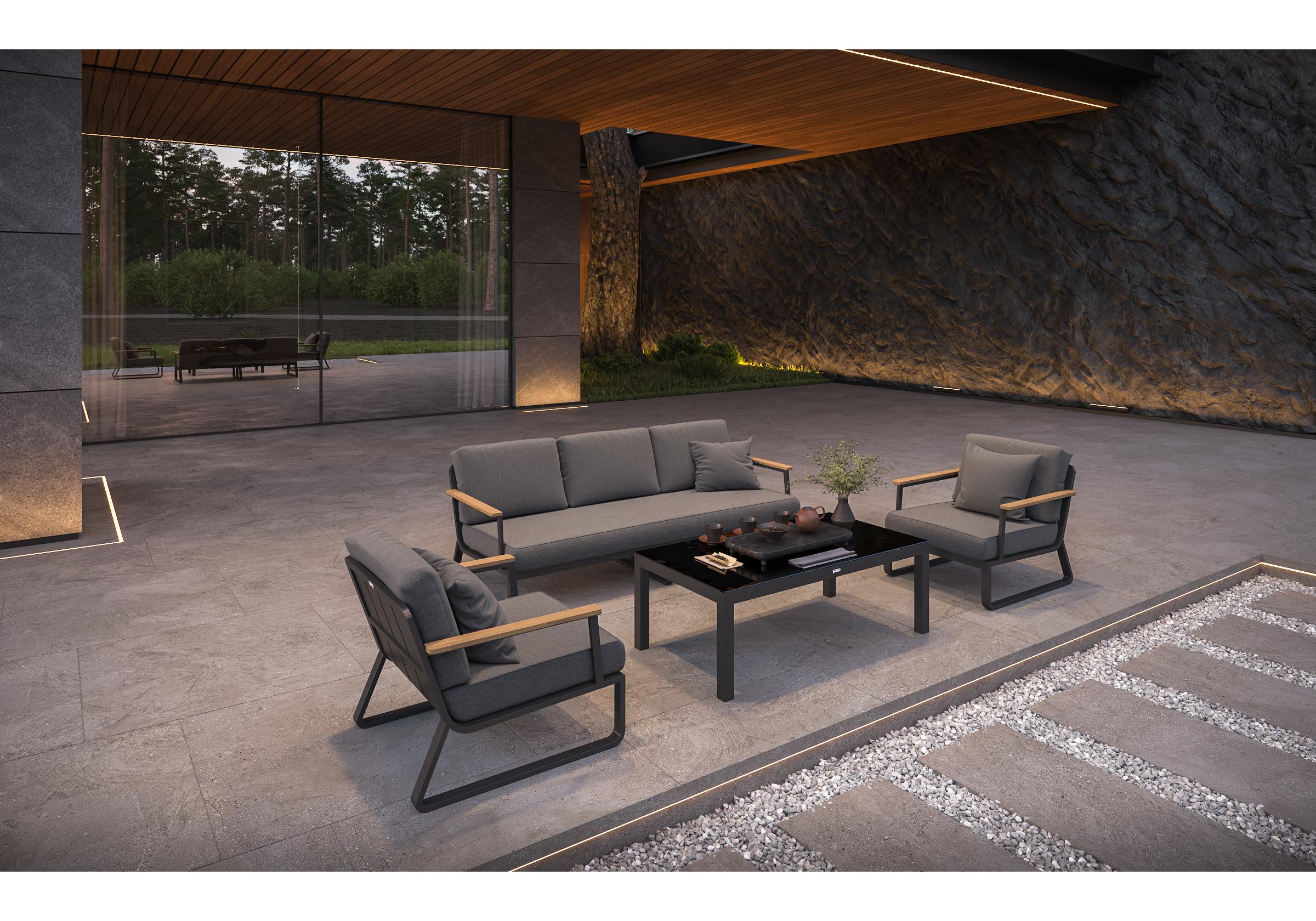 Особенности: подлокотники из благородного тика, премиальная уличная ткань, съемные чехлы подушек на "молнии", дополнительно можно приобрести комплект защитных чехлов