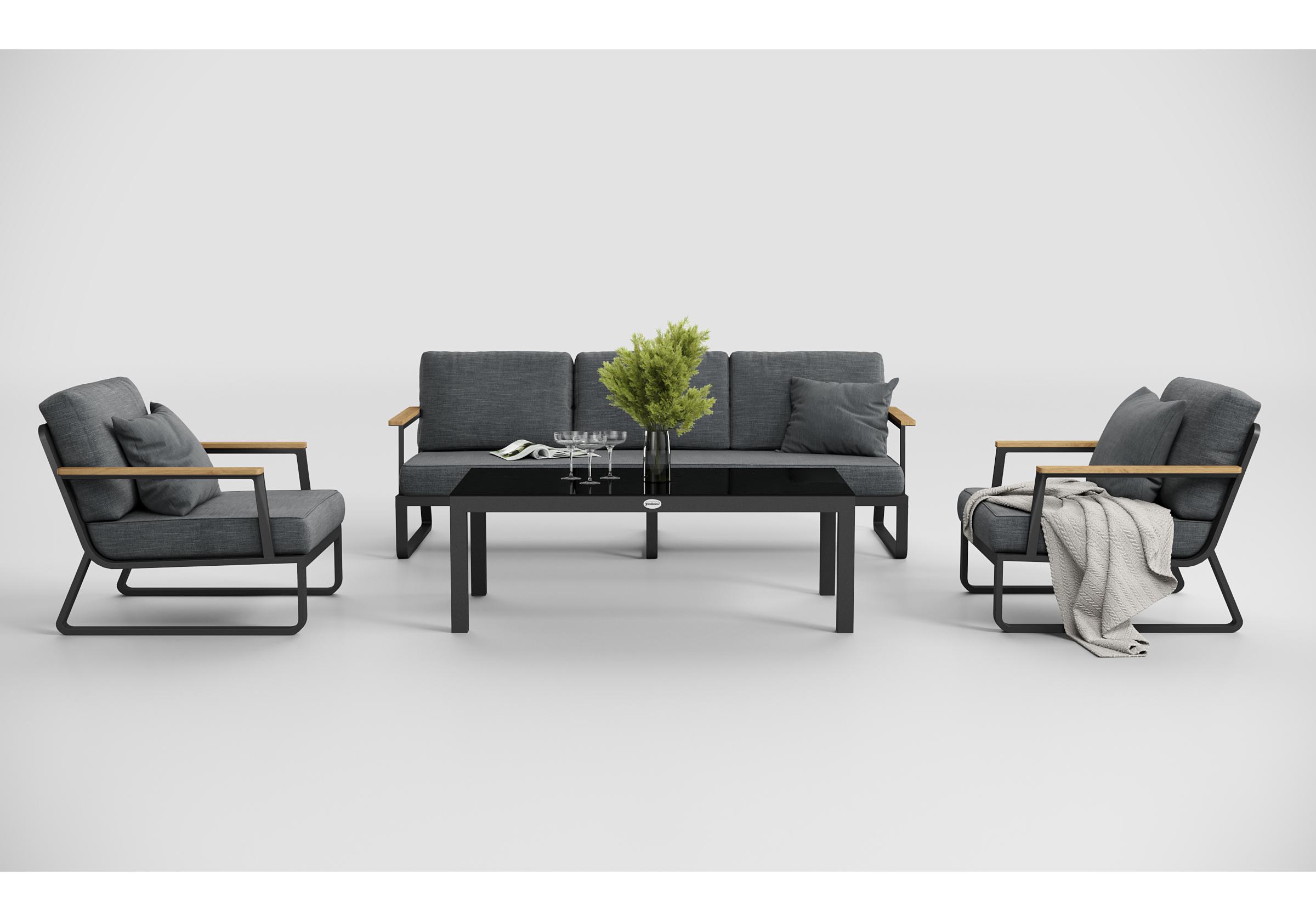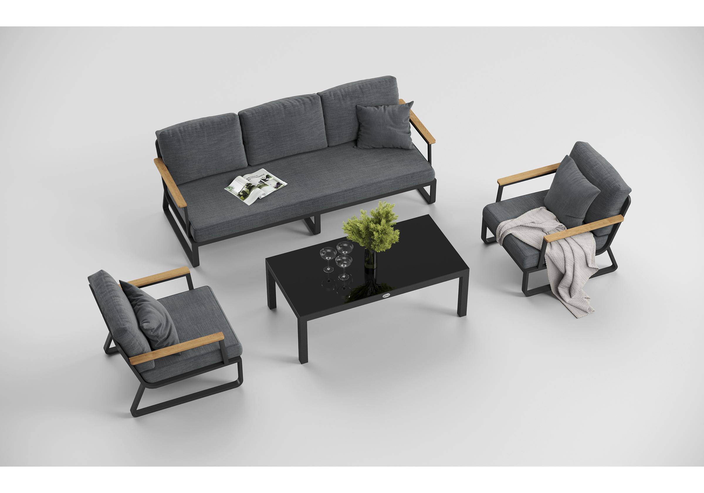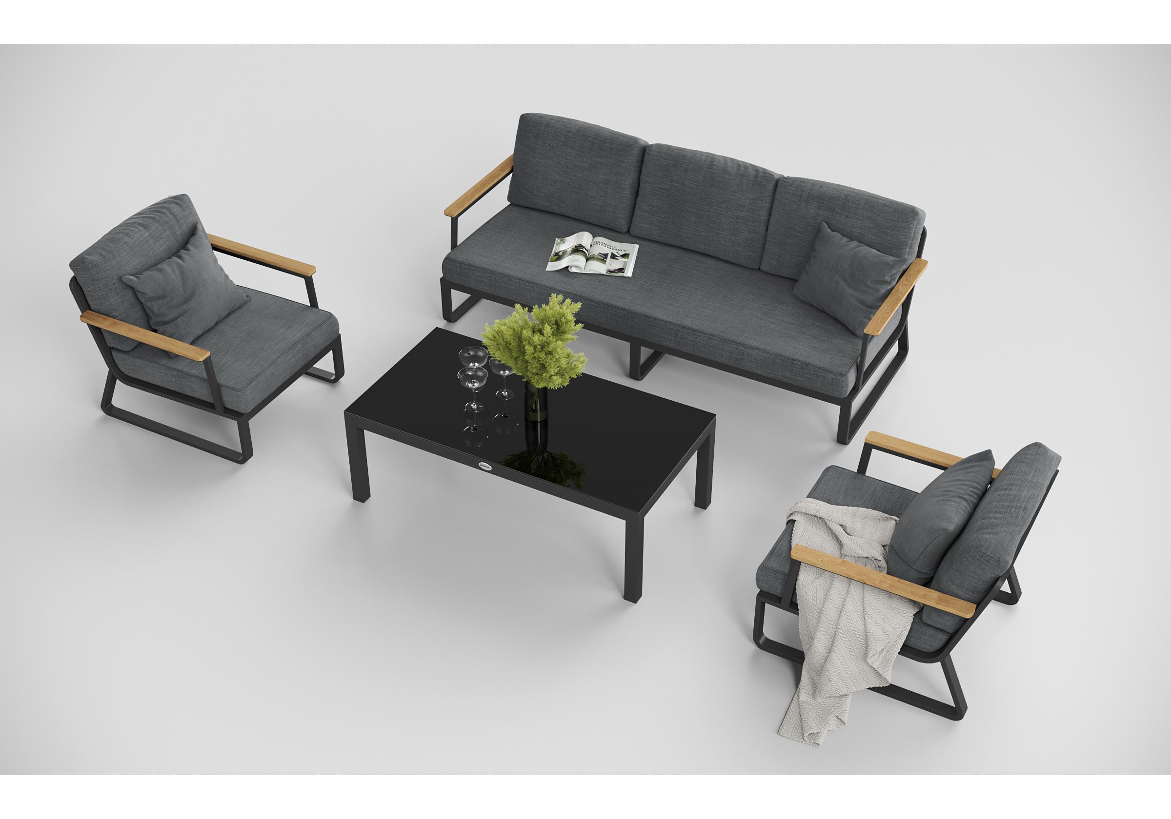 Особенности: подлокотники из благородного тика, премиальная уличная ткань, съемные чехлы подушек на "молнии", дополнительно можно приобрести комплект защитных чехлов