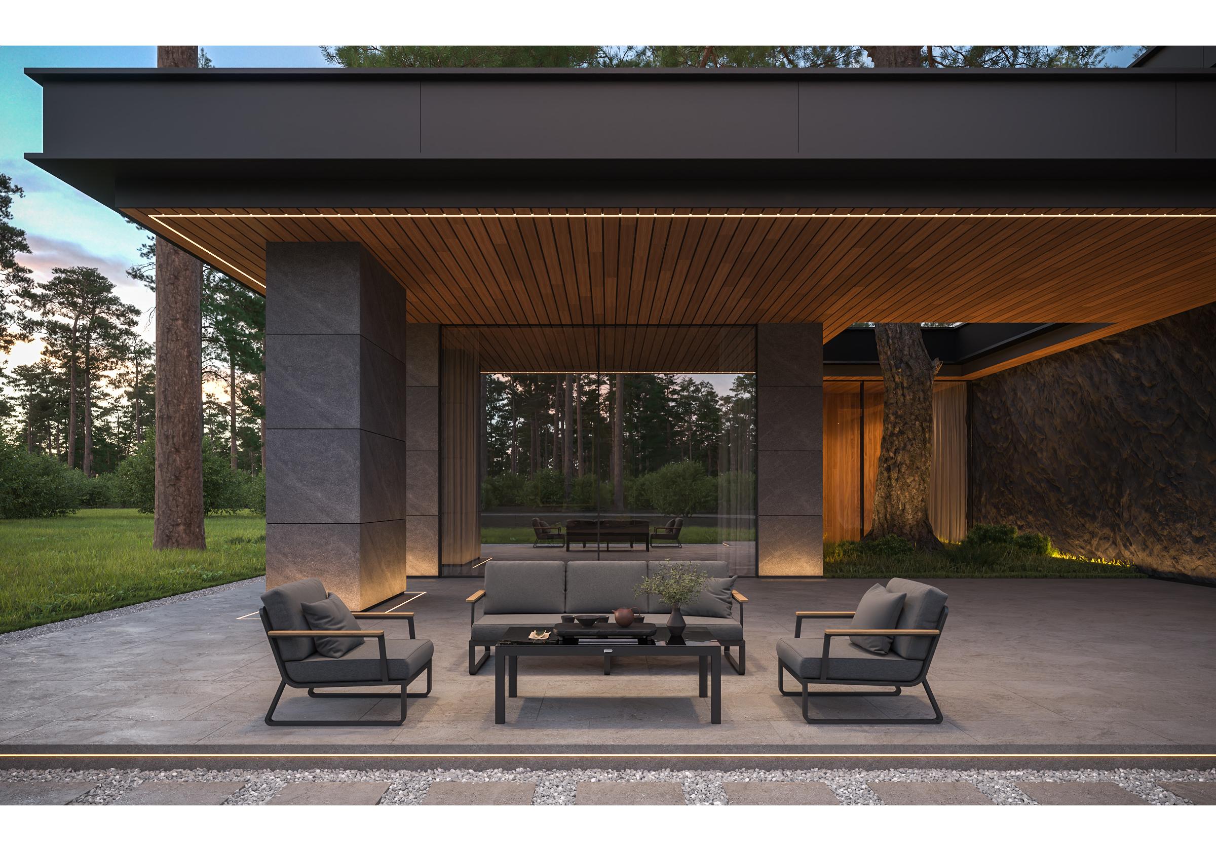 Материалы: всесезонный алюминий, тик, премиальная уличная ткань, закаленное стекло