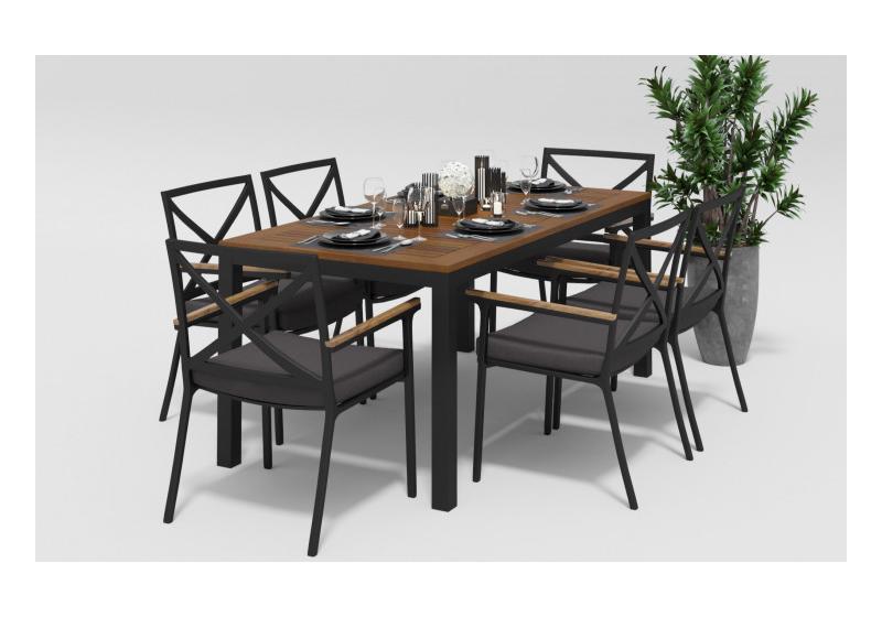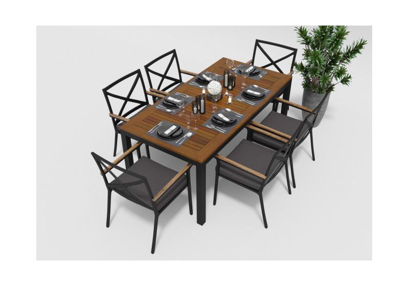 Цвет: каркас темно-серый / подушки антрацит / столешница тик