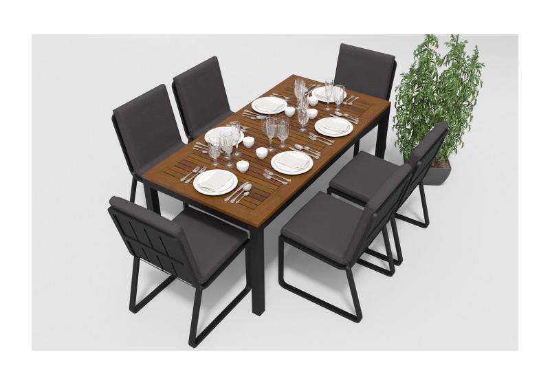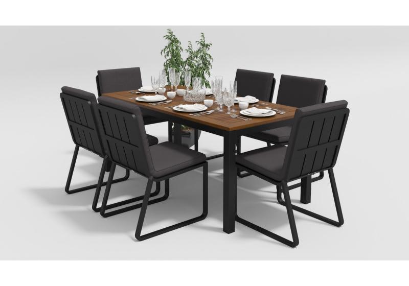 Цвет: каркас темно-серый / подушки антрацит / столешница тик