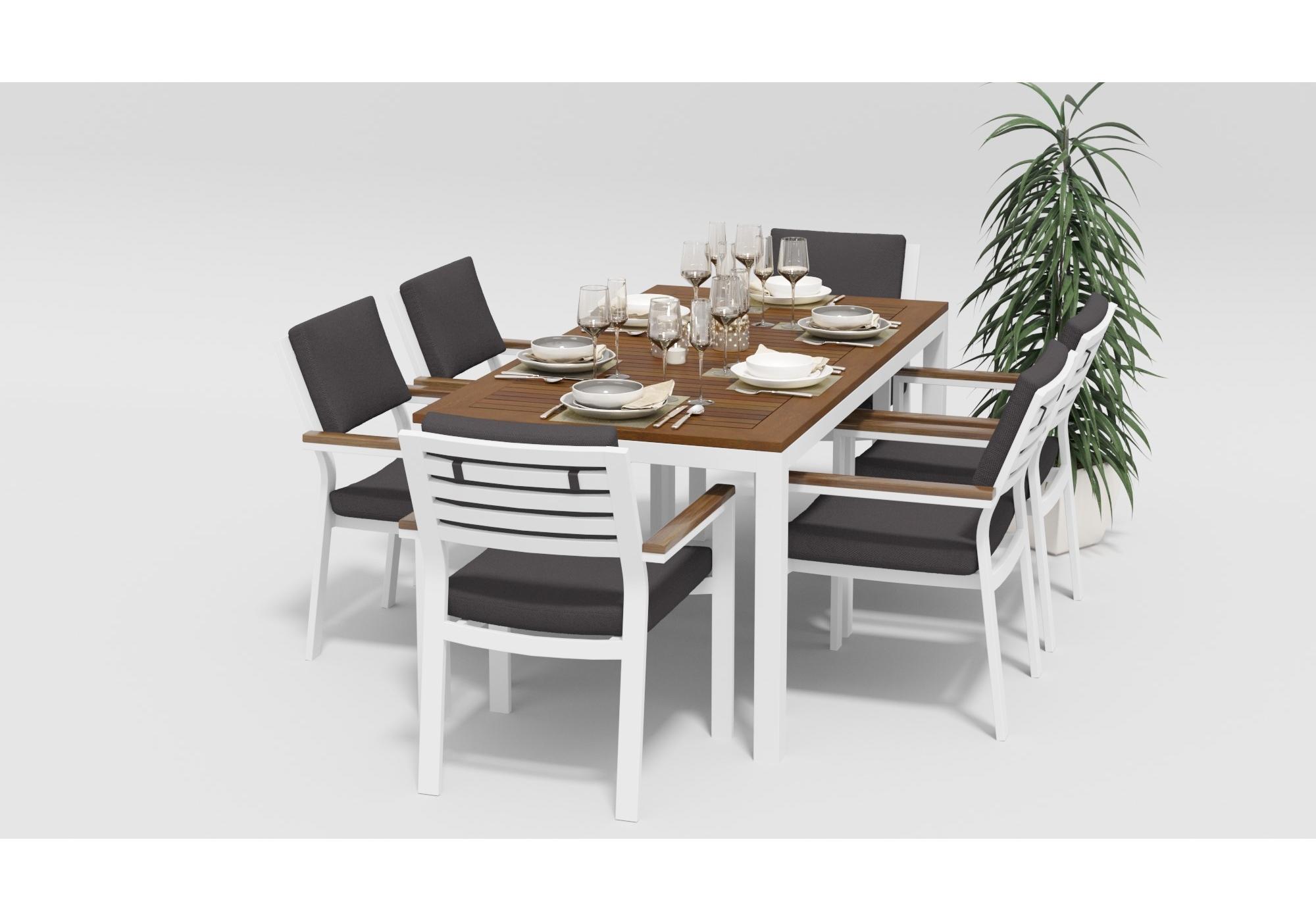 Цвет: каркас белый/подушки антрацит/столешница тик