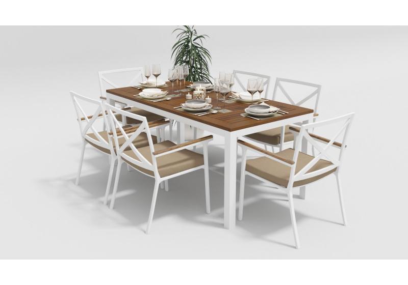 Цвет: каркас белый / подушки бежевые / столешница тик