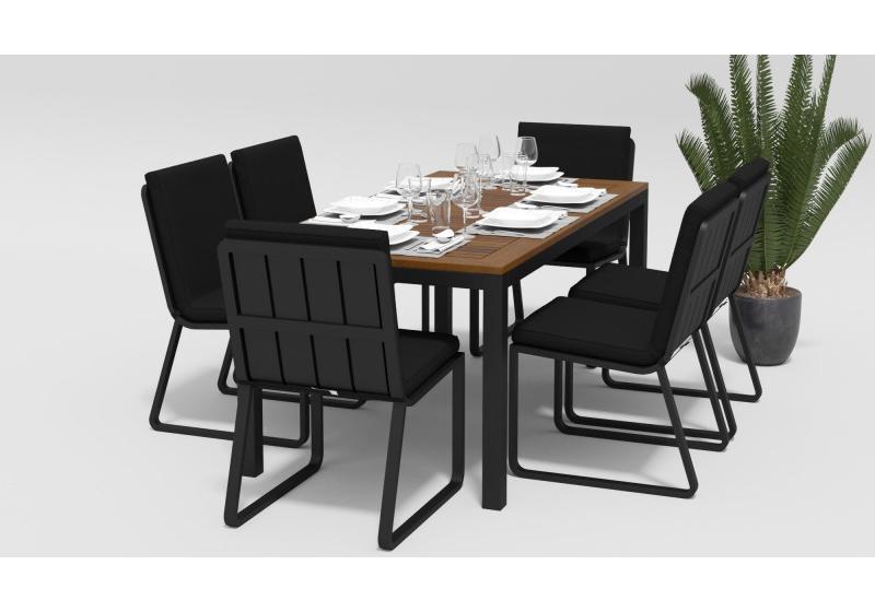 Цвет: каркас темно-серый / подушки черные / столешница тик