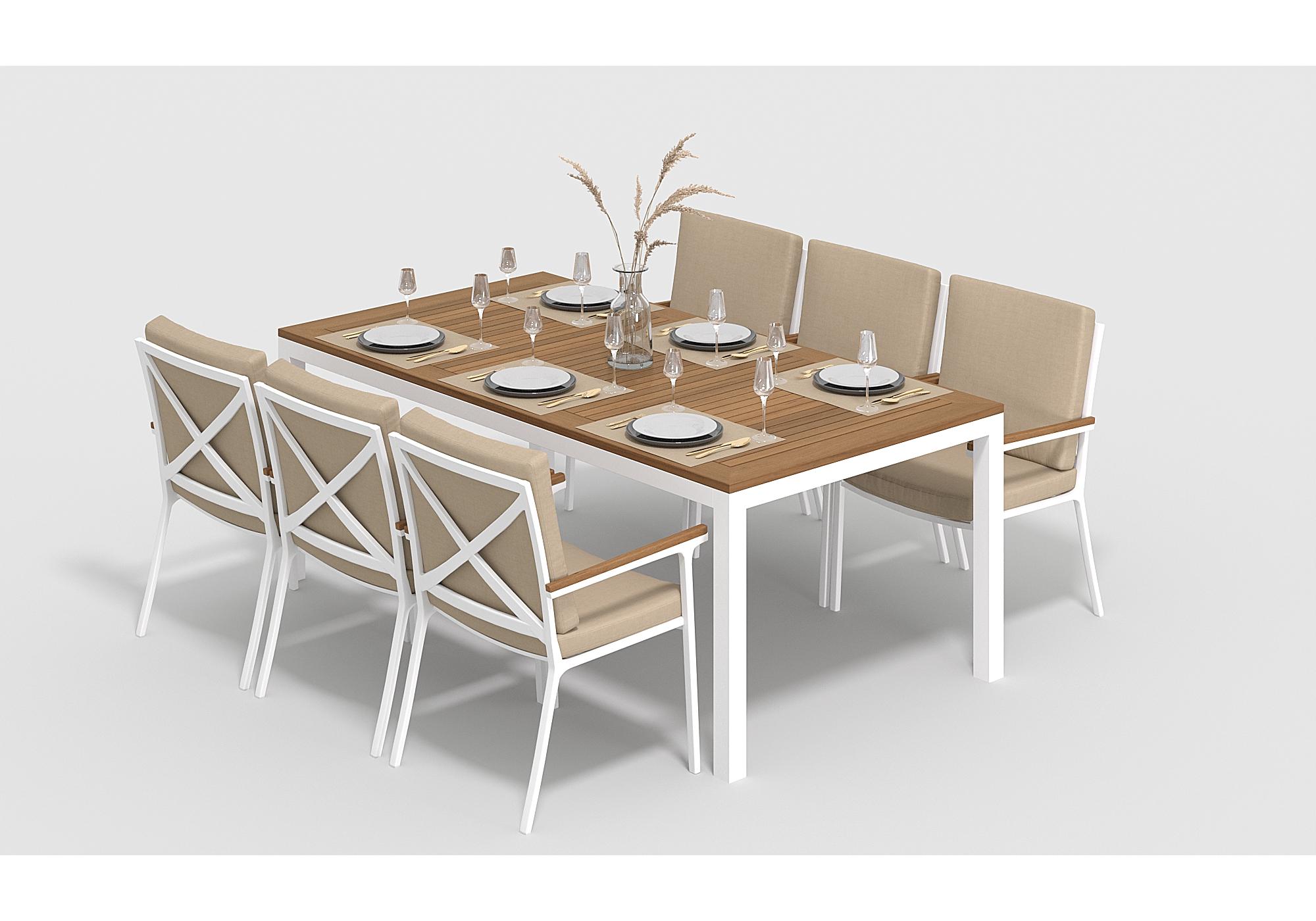 Цвет: каркас белый/подушки бежевые/столешница тик
