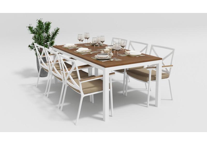 Цвет: каркас белый / подушки бежевые / столешница тик