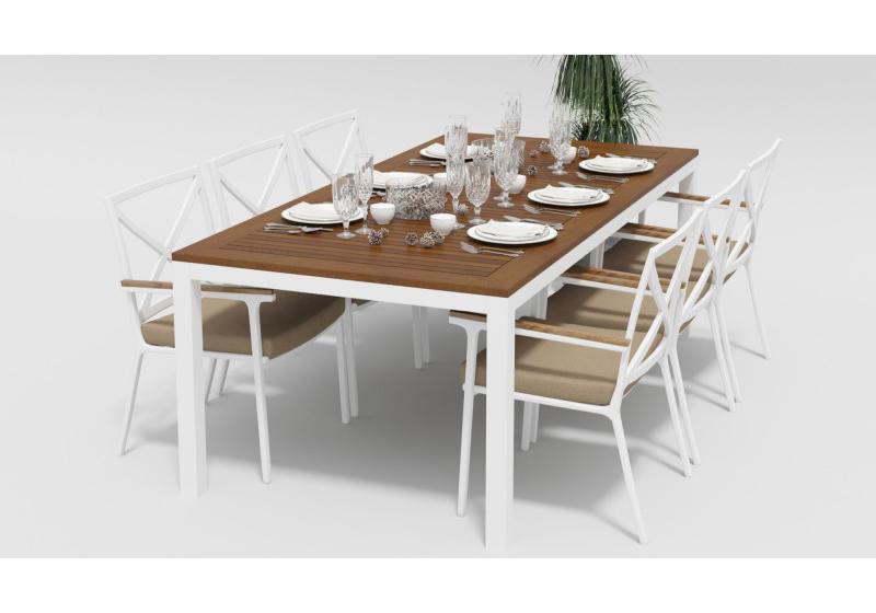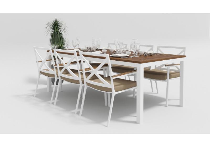 Цвет: каркас белый / подушки бежевые / столешница тик