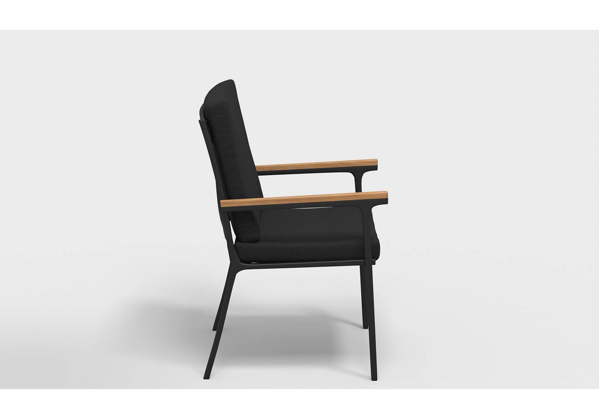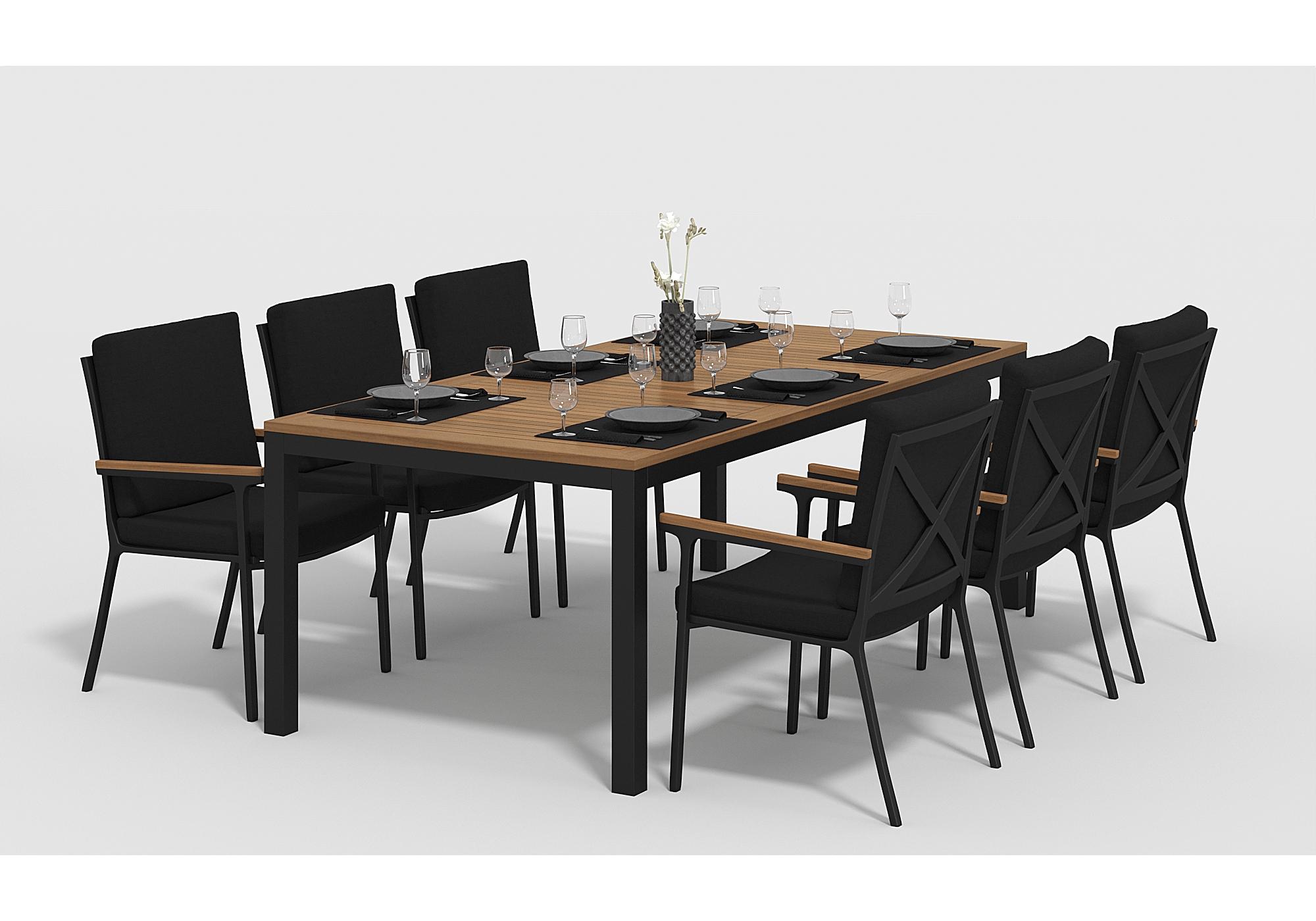 Цвет: каркас темно-серый карбон/ подушки черные/ столешница тик