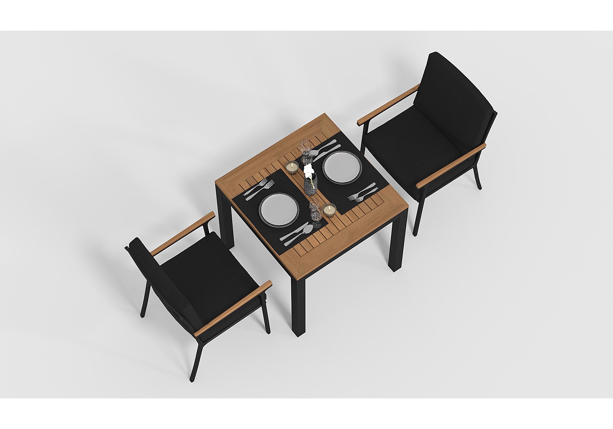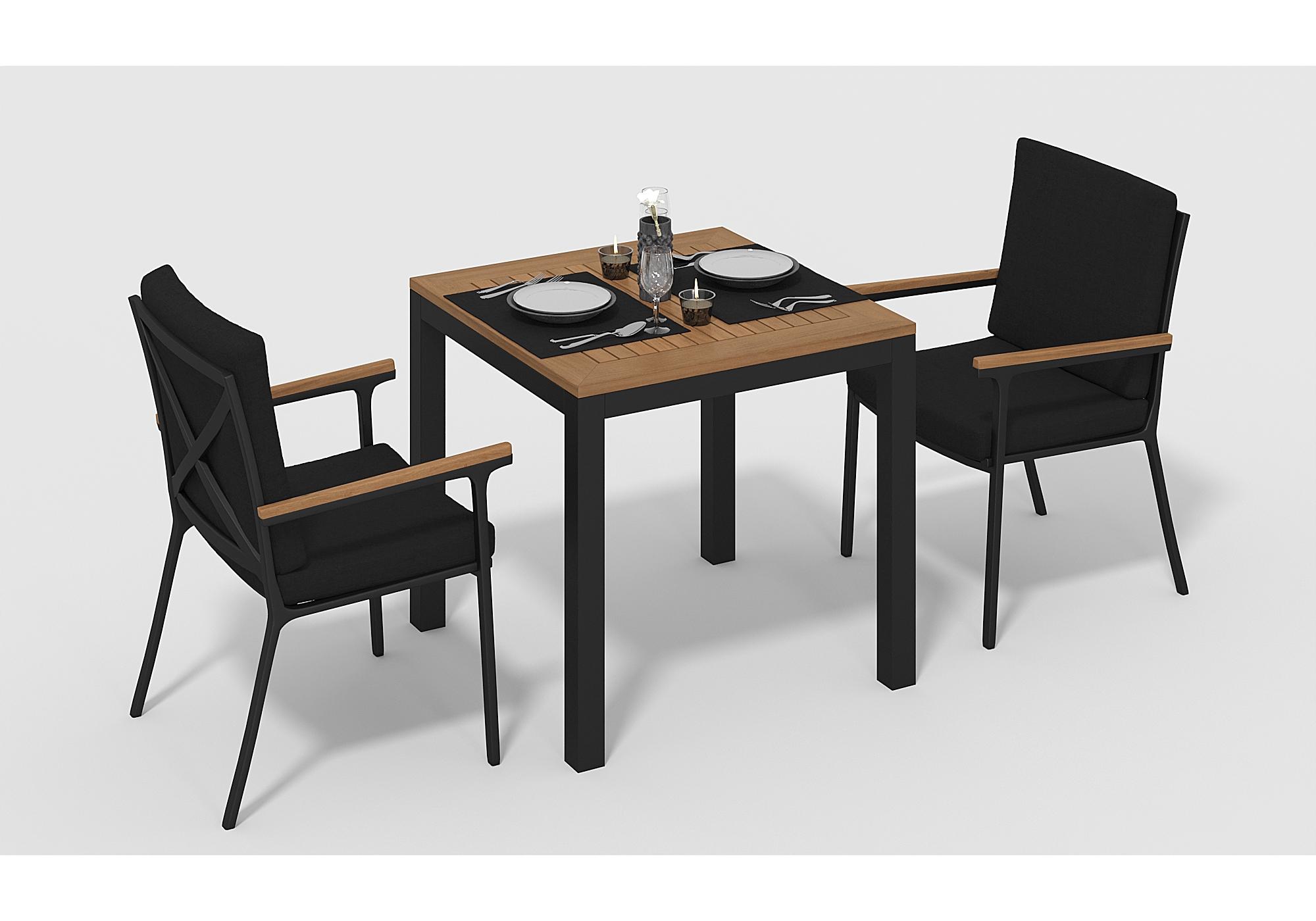 Цвет: каркас темно-серый карбон/ подушки черные/ столешница тик