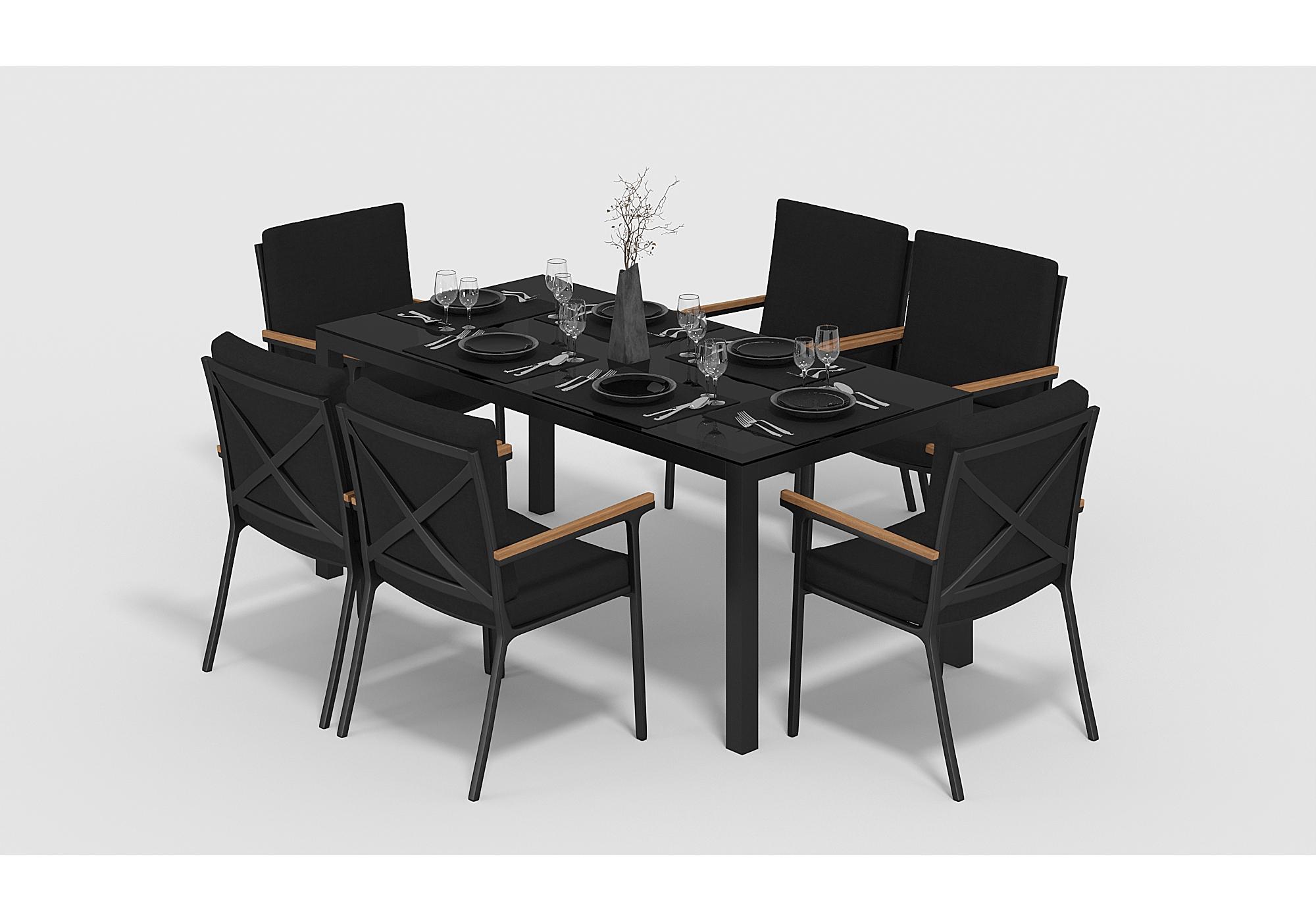 Материалы: всесезонный алюминий, ткань для улицы, закаленное стекло, тик