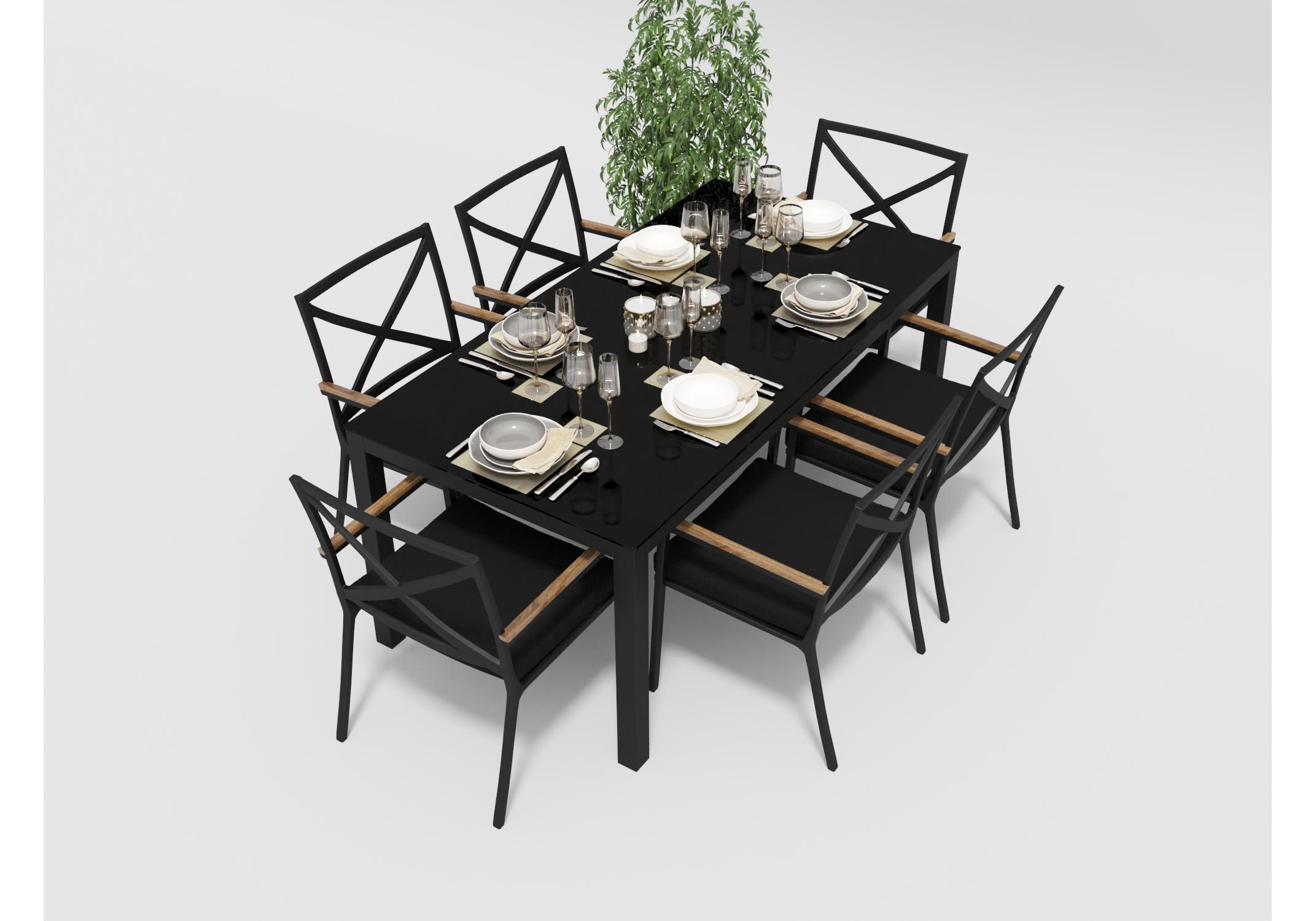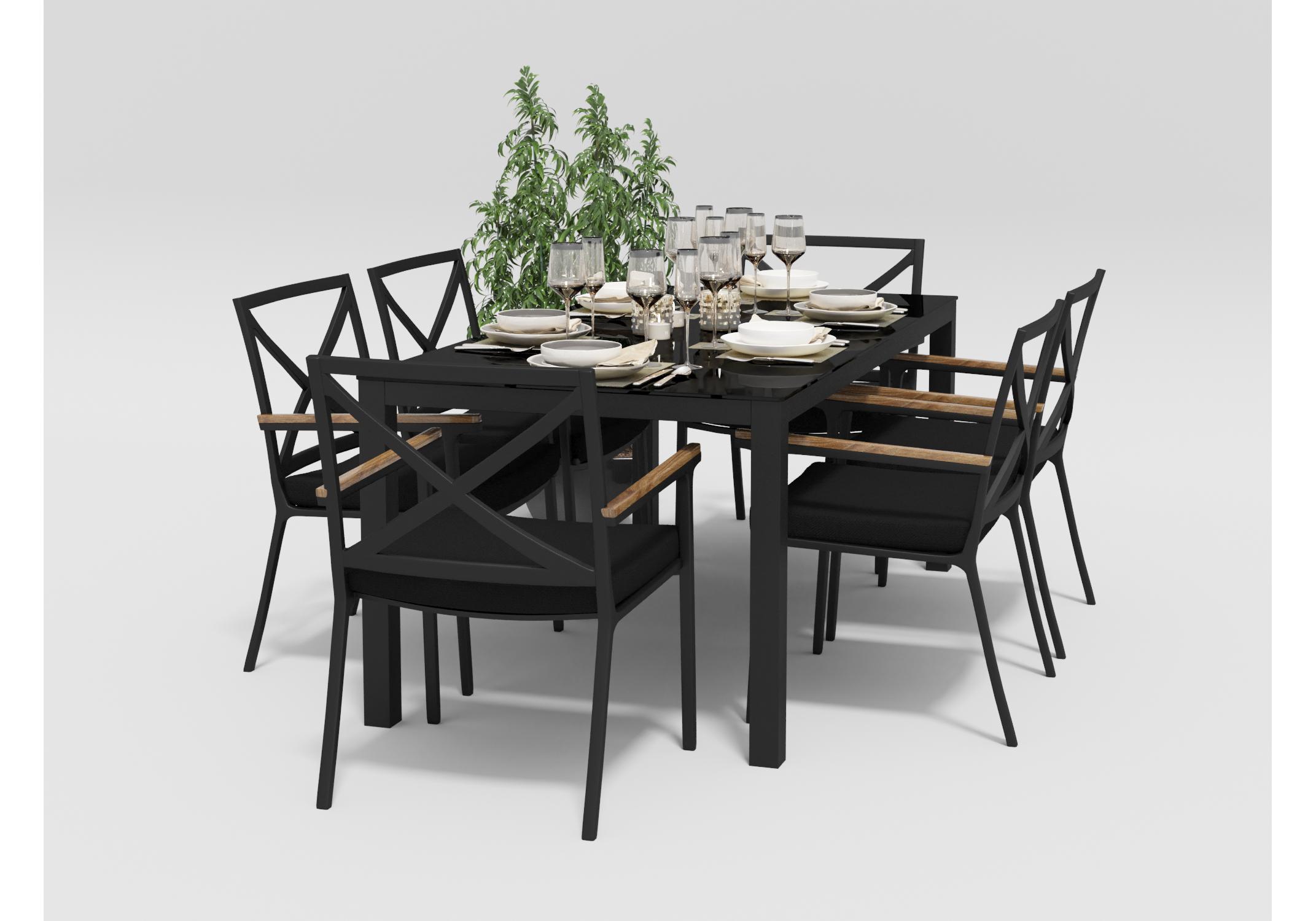 Материалы: всесезонный алюминий, ткань для улицы, закаленное стекло, тик