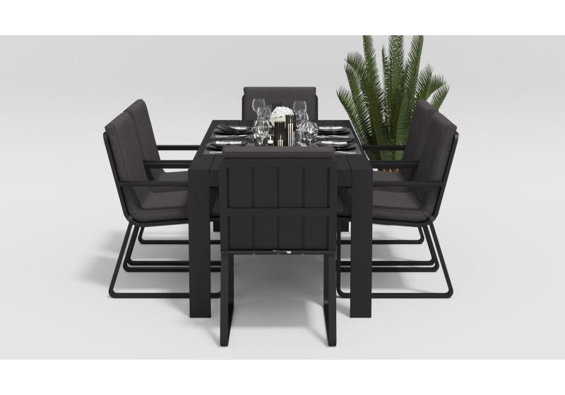 Особенности:столешница из алюминиевых планок шириной 7 см, единая подушка стула с креплением к каркасу,съемный чехол подушки на "молнии"