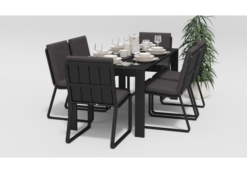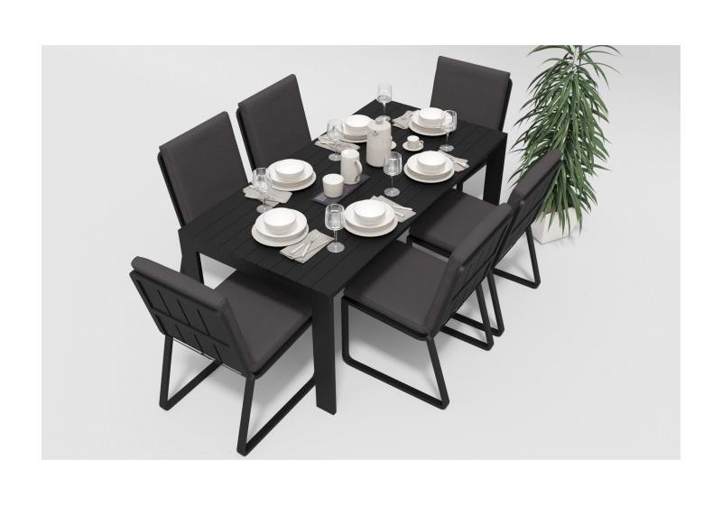 Особенности:столешница из алюминиевых планок шириной 7 см, единая подушка стула с креплением к каркасу, съемный чехол подушки на "молнии"