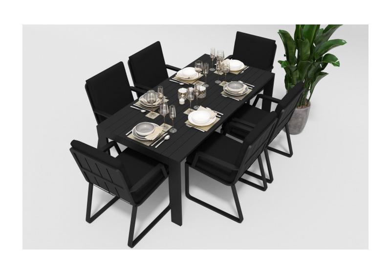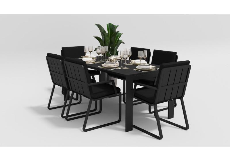 Особенности:столешница из алюминиевых планок шириной 7 см, единая подушка стула с креплением к каркасу,съемный чехол подушки на "молнии"