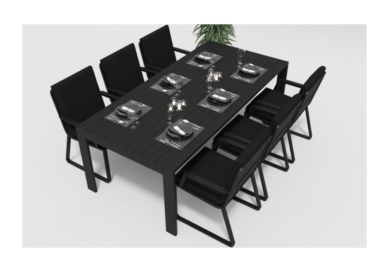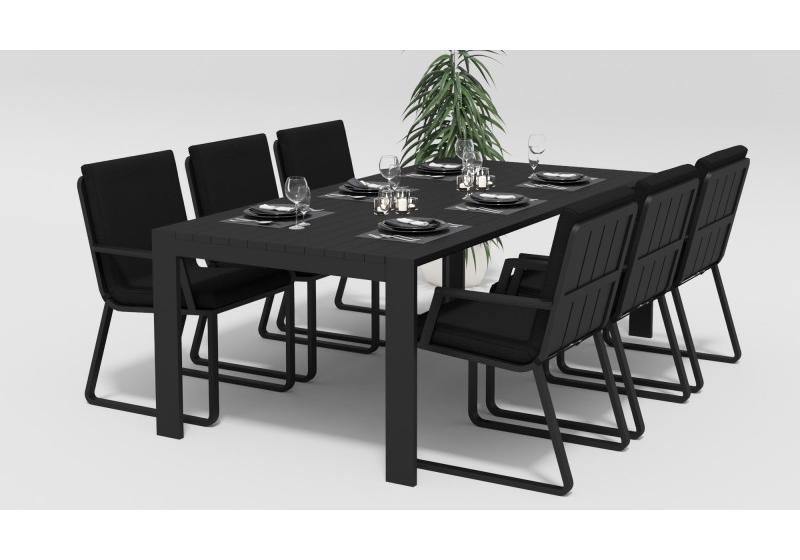 Особенности:столешница из алюминиевых планок шириной 7 см, единая подушка стула с креплением к каркасу,съемный чехол подушки на "молнии"