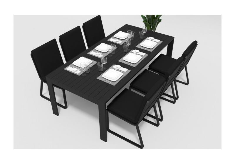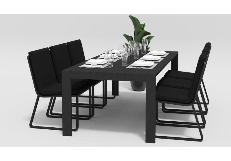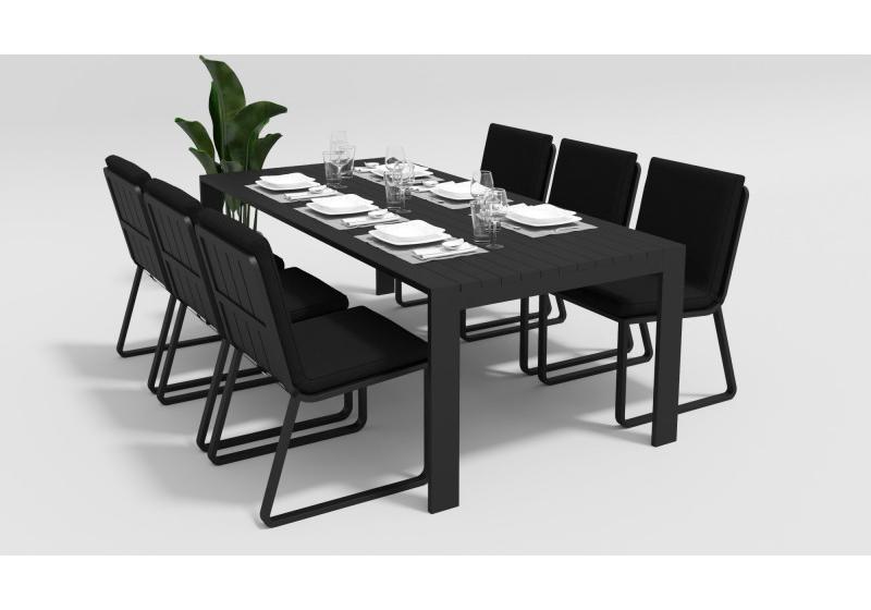 Особенности:столешница из алюминиевых планок шириной 7 см, единая подушка стула с креплением к каркасу,съемный чехол подушки на "молнии"