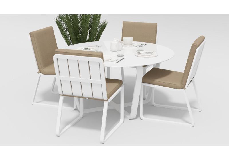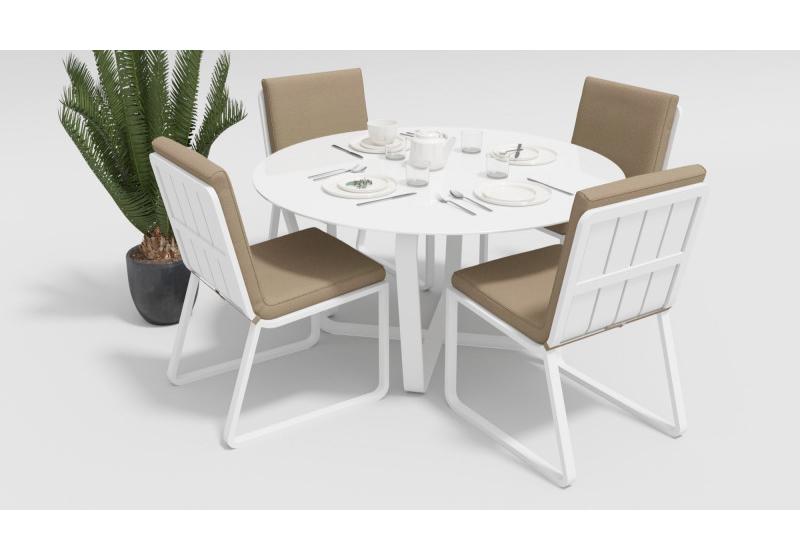 Цвет: каркас белый / подушки бежевые / столешница белая глянцевая