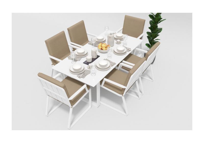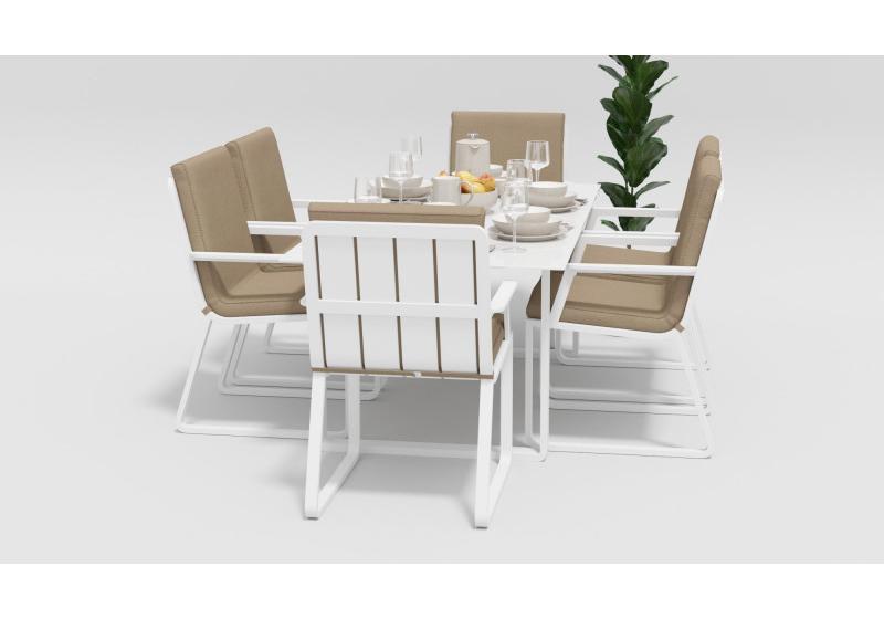 Цвет: каркас белый / подушки бежевые / столешница белая глянцевая