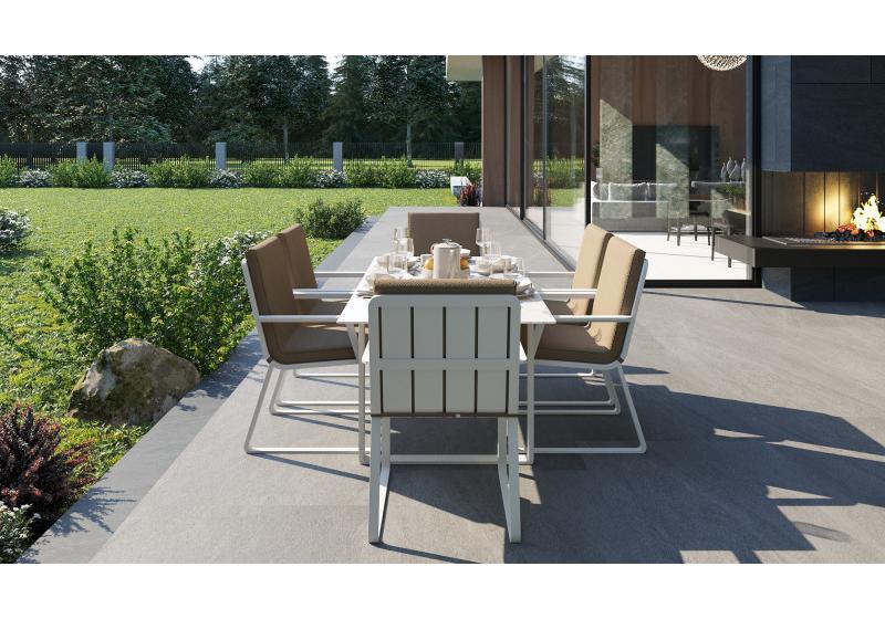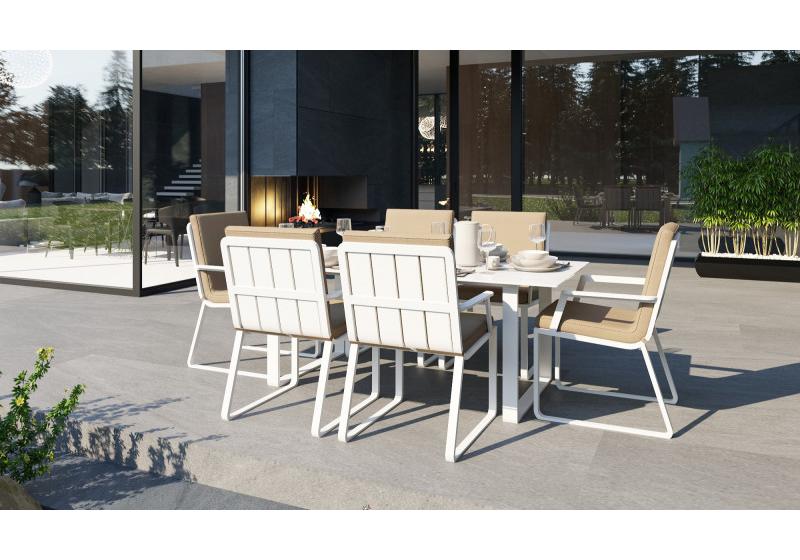 Материалы: всесезонный алюминий, ткань для улицы, закаленное стекло