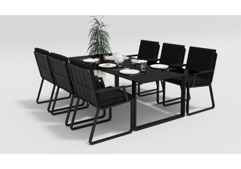 Цвет: каркас темно-серый карбон / подушки черные / столешница черная глянцевая