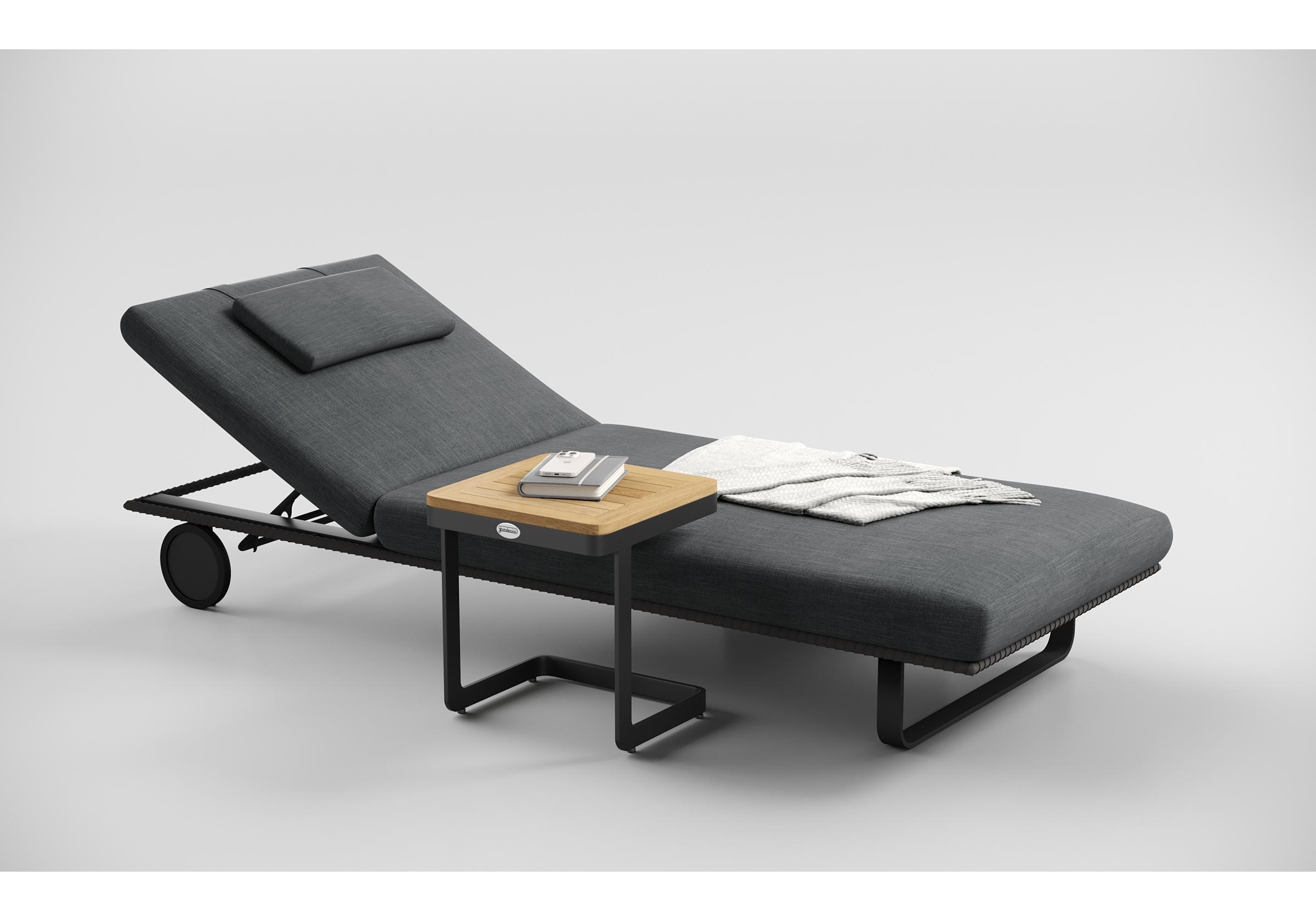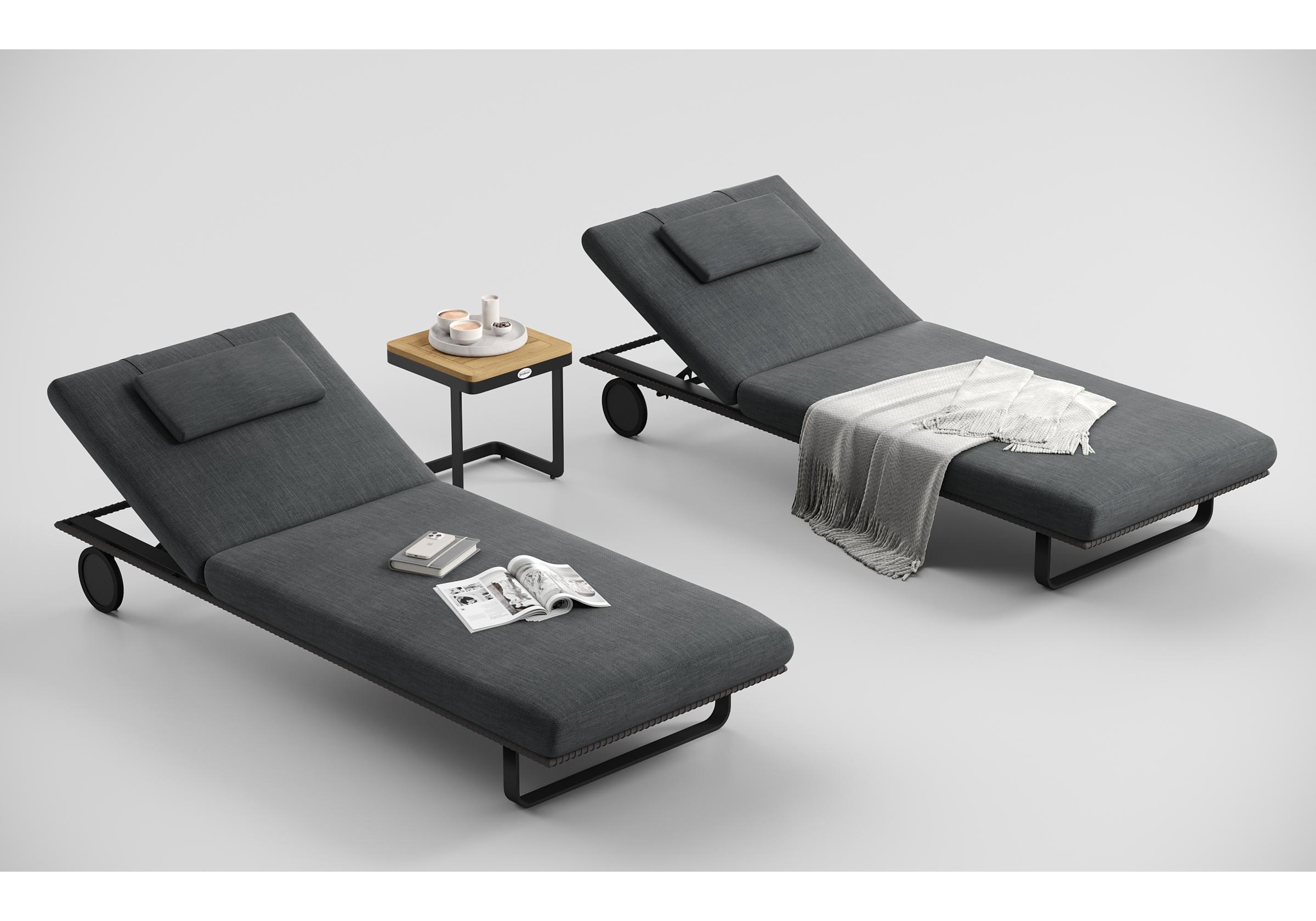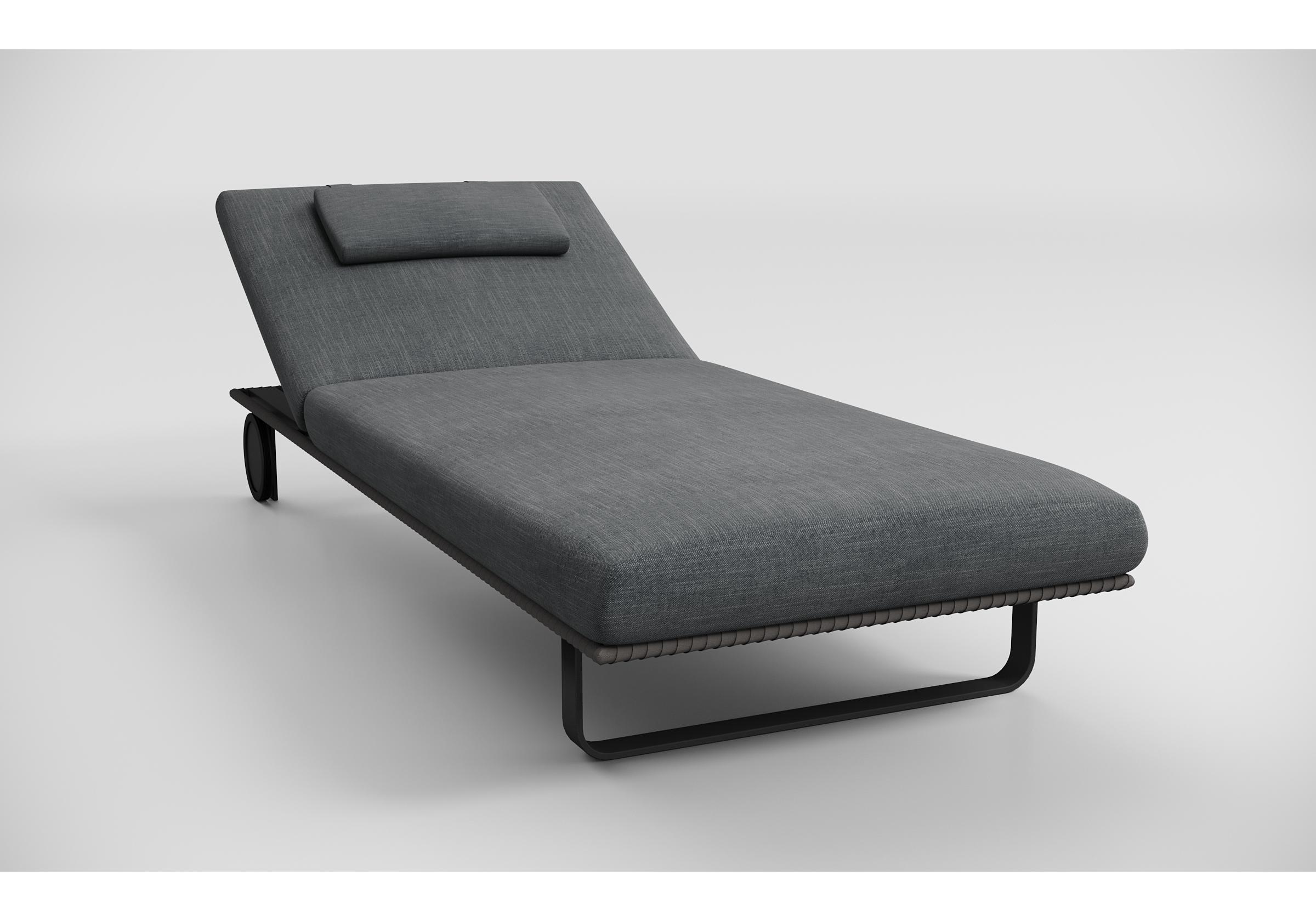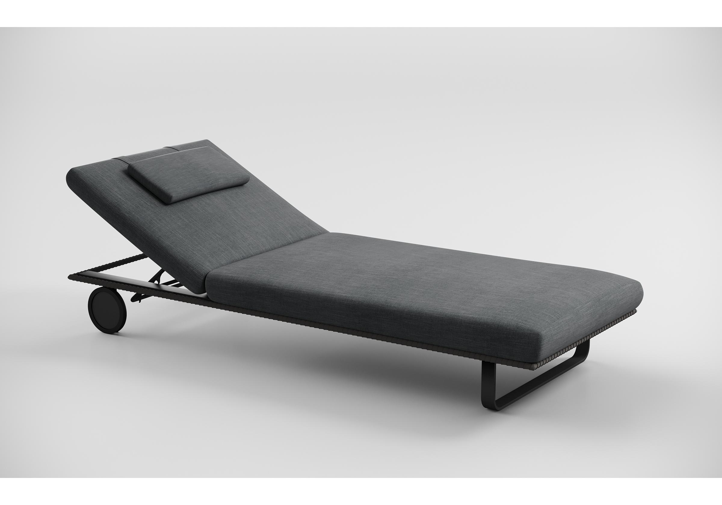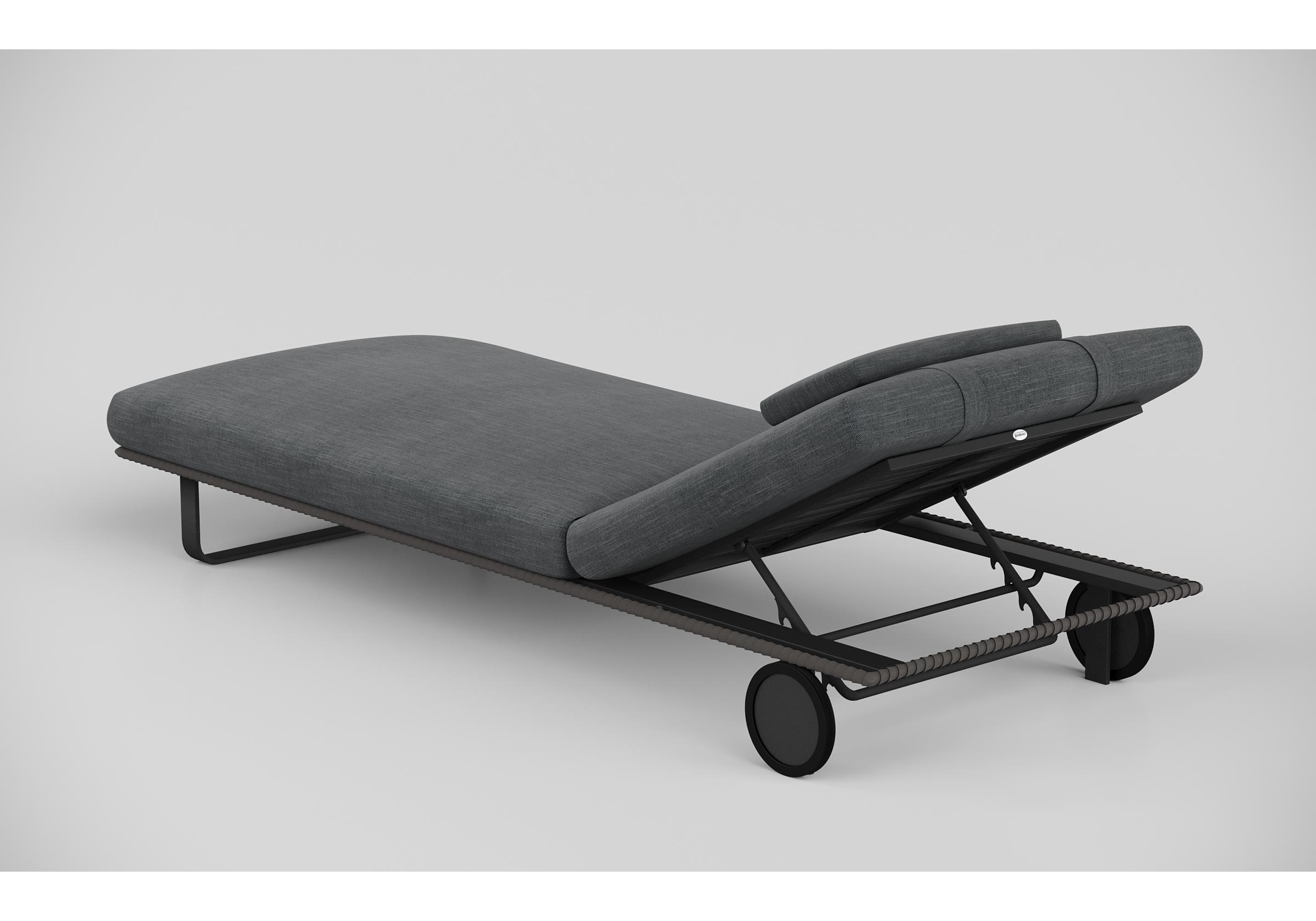 Особенности: премиальная уличная ткань, отдельная подушечка для головы (толщина 5 см), веревочное плетение вокруг каркаса, чехол подушки съемный "на молнии", колеса для смены локации