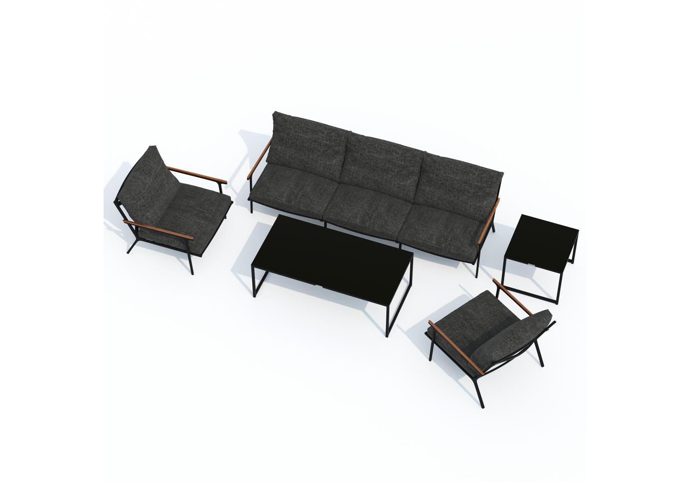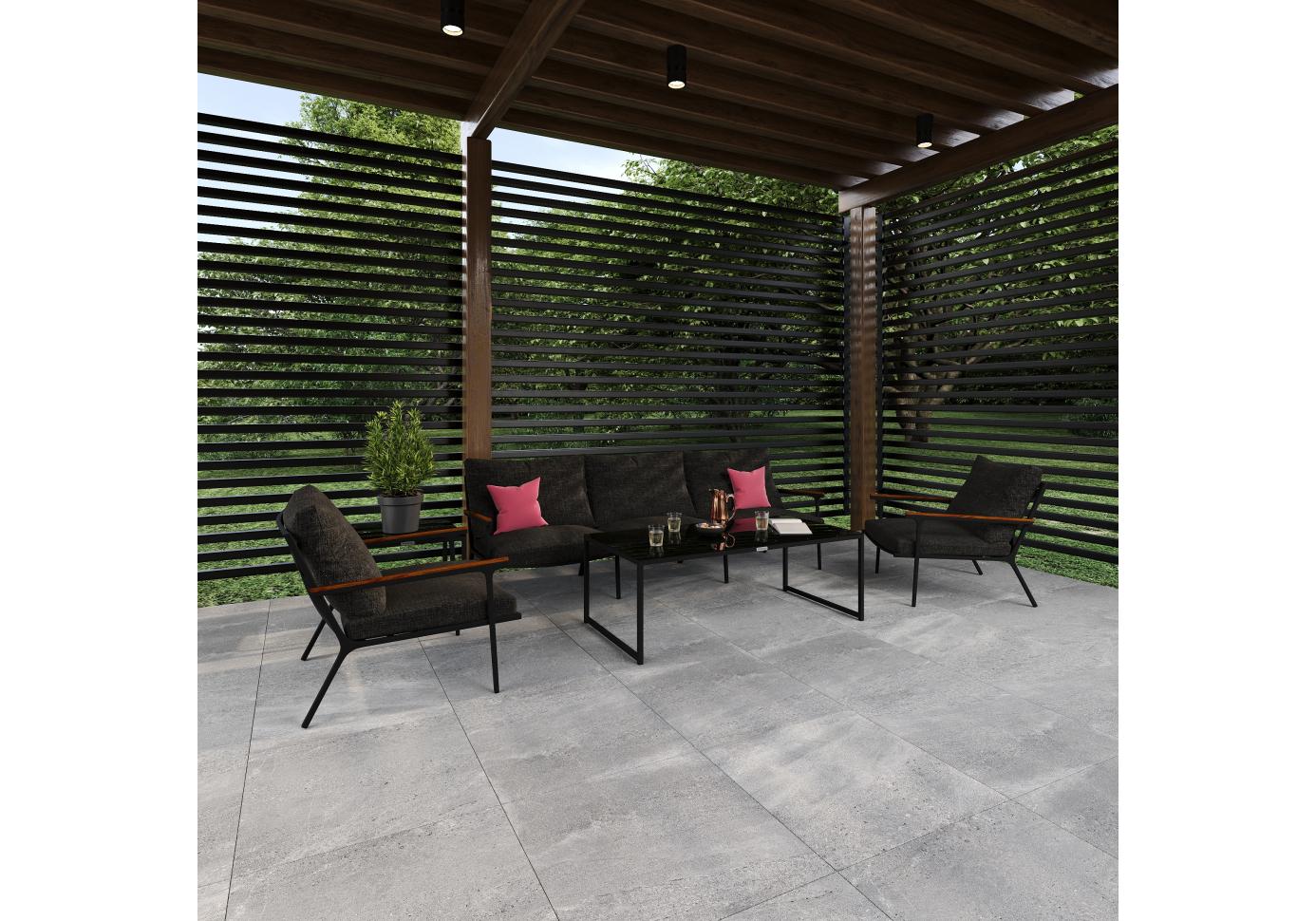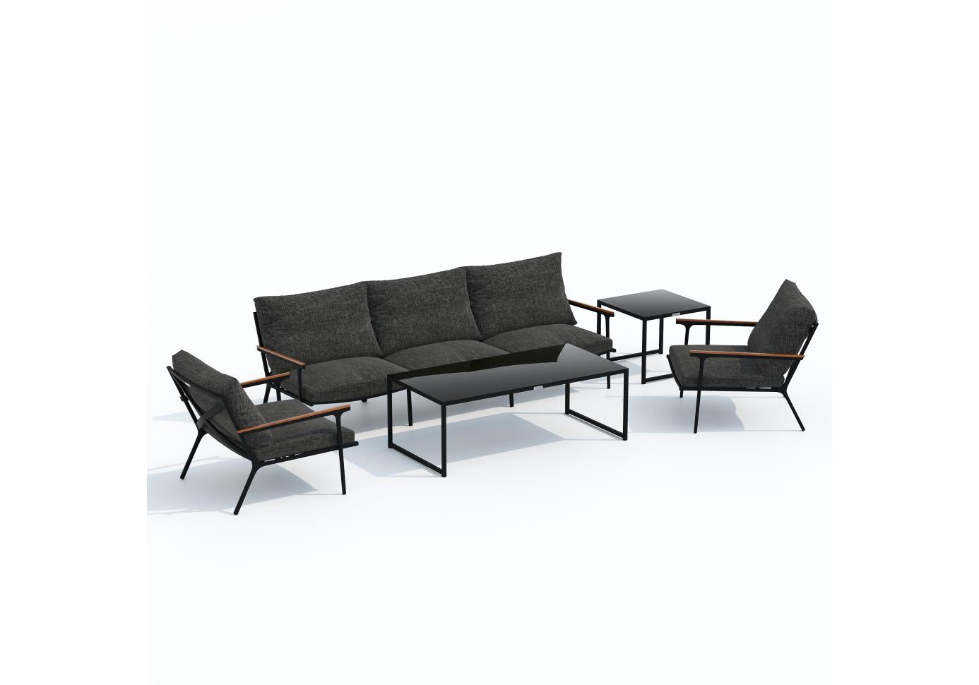 Мягкий трёхместный диван, большие кресла и два журнальных столика со столешницей из чёрного глянцевого стекла - создать поистине уютное пространство для отдыха легко. Минимализм и сдержанная цветовая гамма, которую можно дополнить яркими акцентами в виде различных предметов декора. Чехлы цвета маренго идеально сочетаются с темно-серым каркасом. Они не выгорят на солнце и выдержат любые капризы погоды. Благодаря вшитой молнии их легко снять и почистить, если на них есть видимые загрязнения.