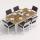 Каркас мебели выполнен из всесезонного алюминия с порошковым покрытием белого цвета, подлокотники стульев декорированы вставками из тика, подушки сидений обшиты уличной тканью темно-серого цвета с водоотталкивающей пропиткой, толщина подушек 5 см, чехол съемный на "молнии", столешница обеденного стола изготовлена из тика