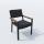 Каркас мебели выполнен из всесезонного алюминия с порошковым покрытием темно-серого цвета, подлокотники стульев декорированы вставками из тика, подушки сидений обшиты уличной тканью цвета антрацит с водоотталкивающей пропиткой, толщина подушек 5 см, чехол съемный на "молнии", столешница обеденного стола изготовлена из тика.