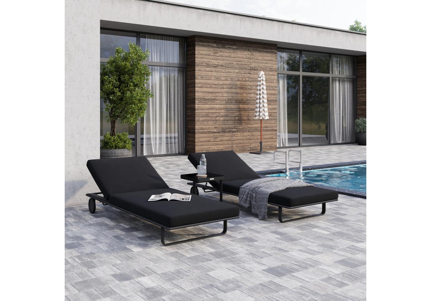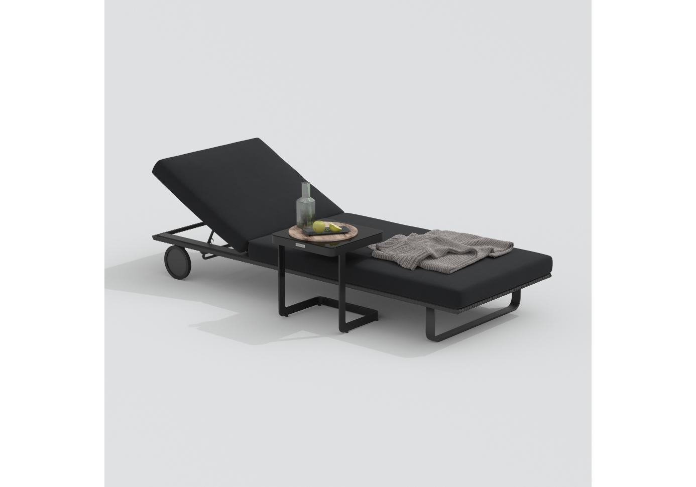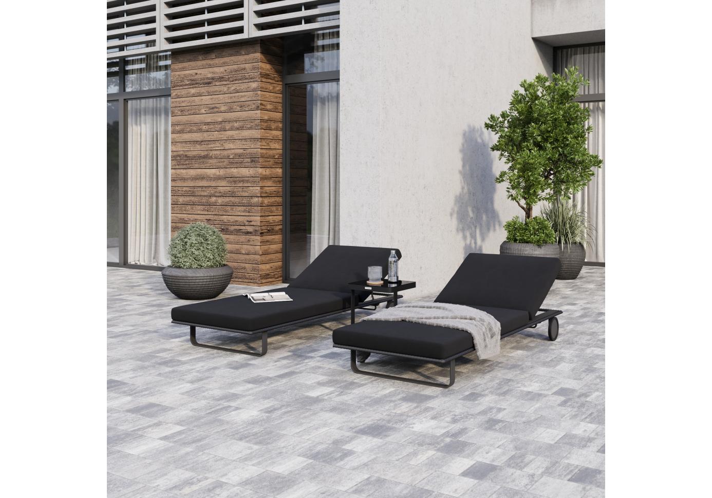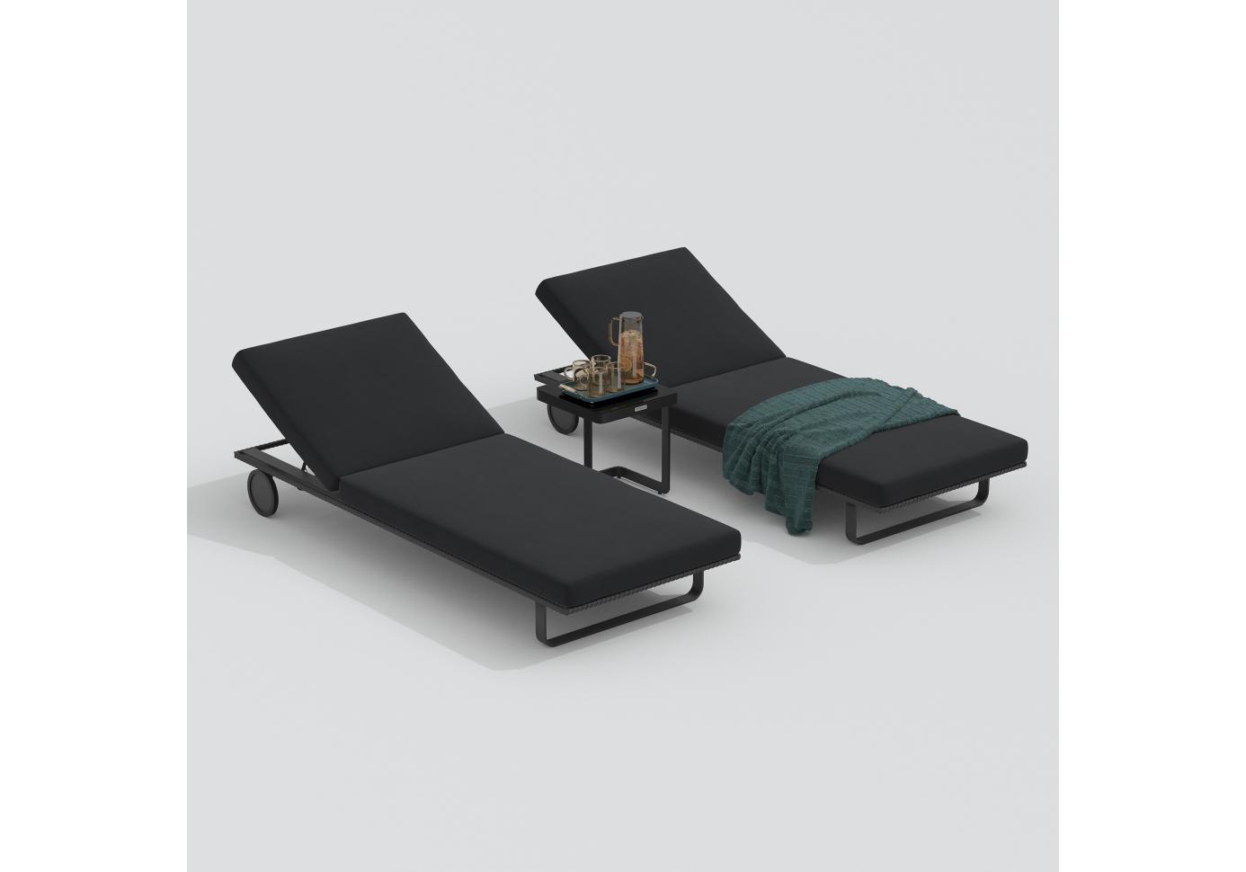 Шезлонг КОСТА на колесах черный - каркас карбон
