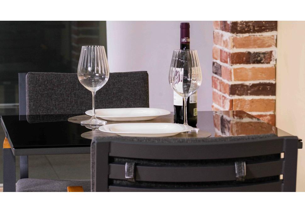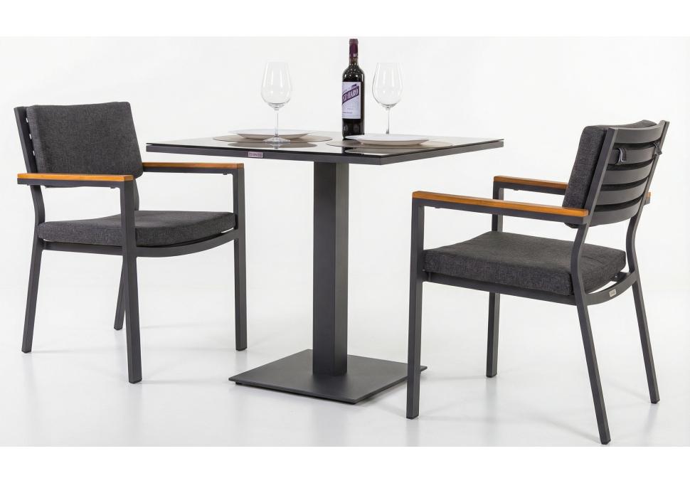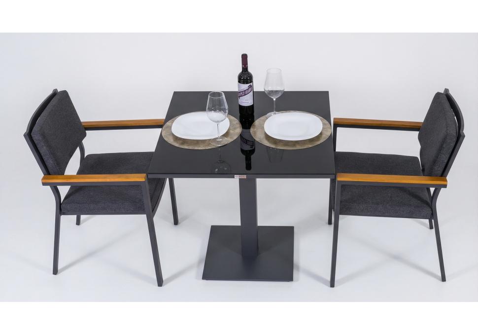 Материалы: каркас - всесезонный алюминий с порошковым напылением, столешница - закаленное стекло