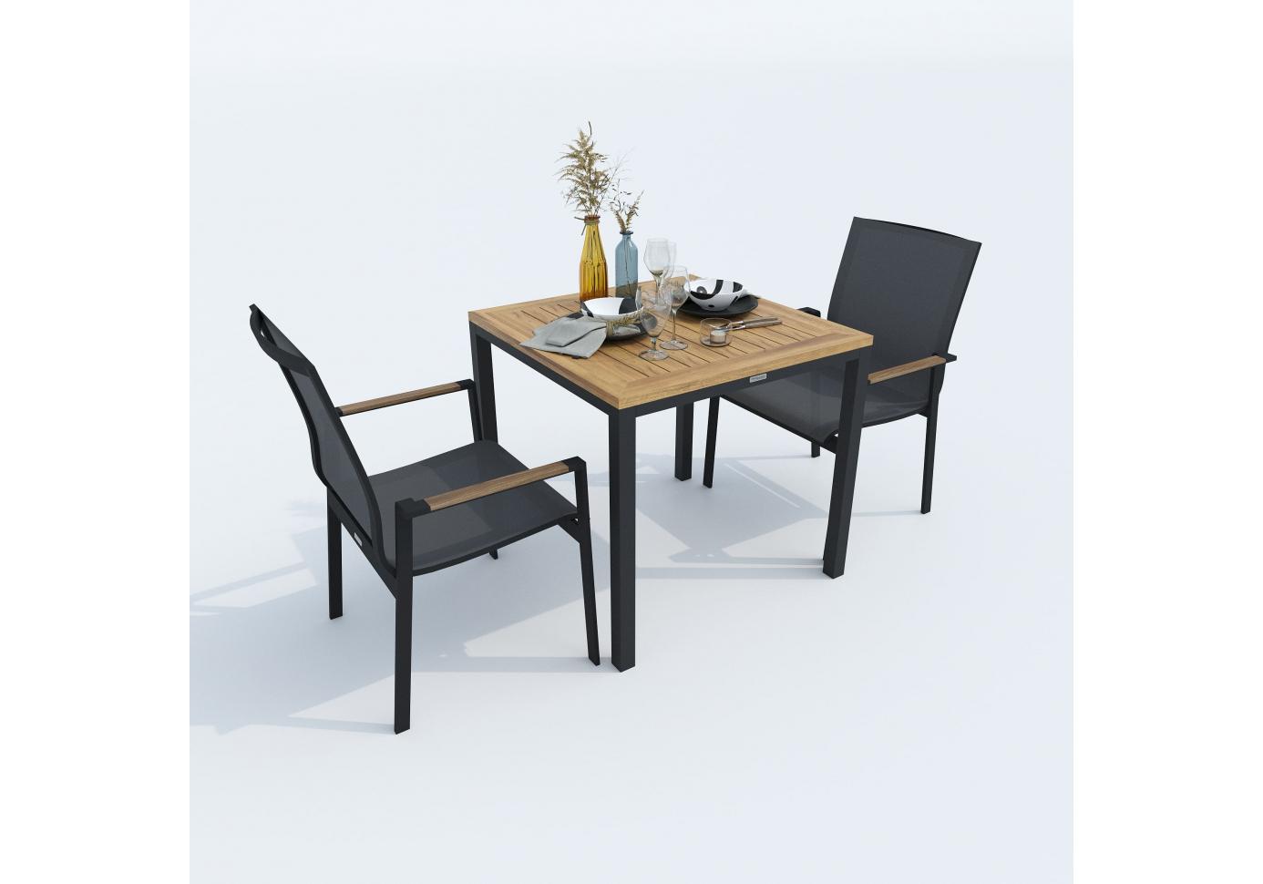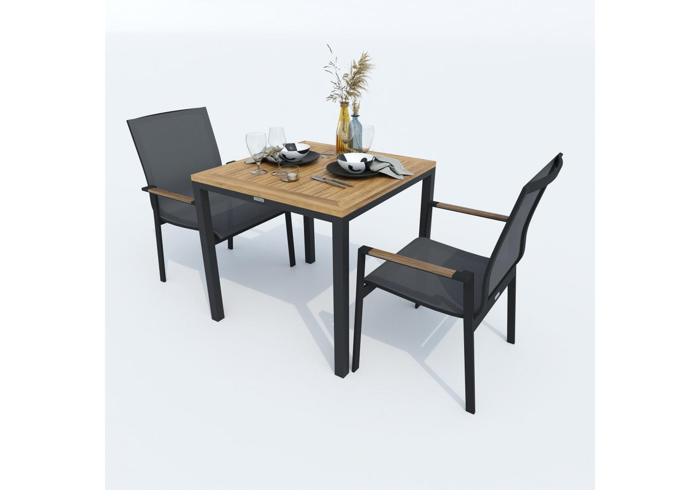 Материалы: каркас - всесезонный алюминий с порошковым напылением, столешница - поливуд (древесно-полимерный композит)
