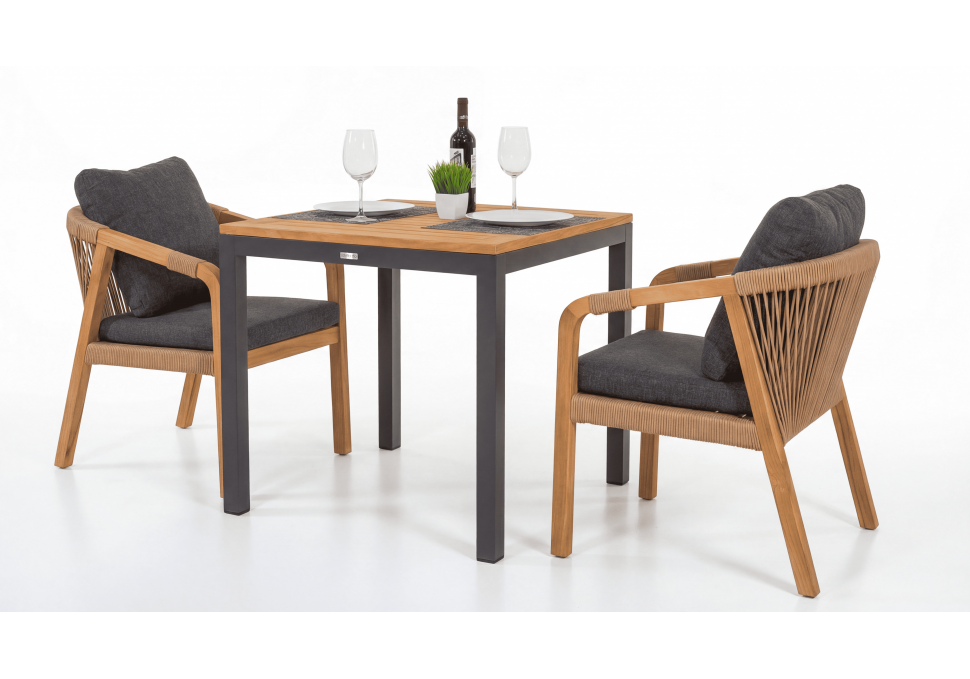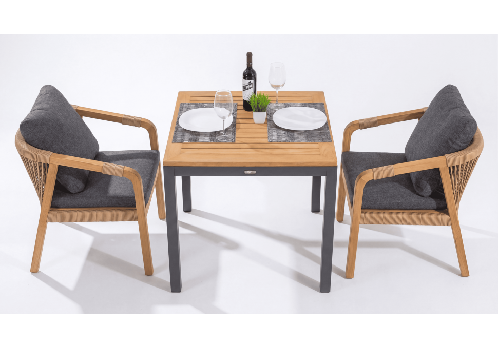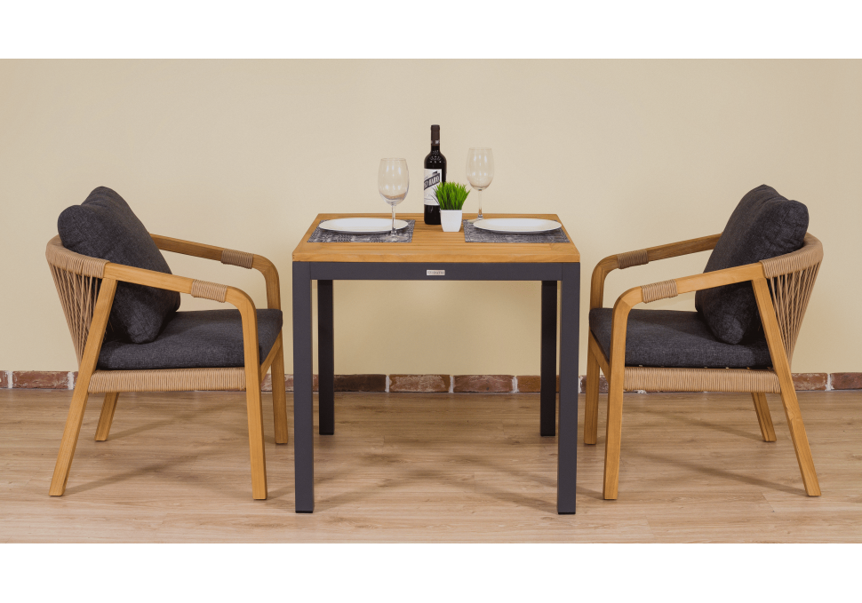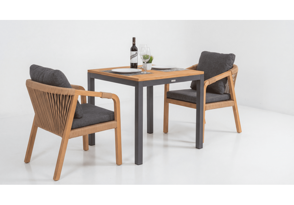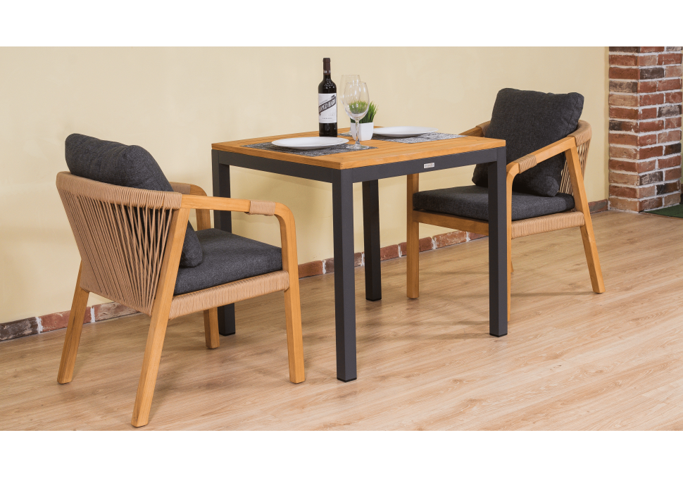 Стол обеденный ТЕЛЛА алюминий, тик 80x80 см (4 ножки)