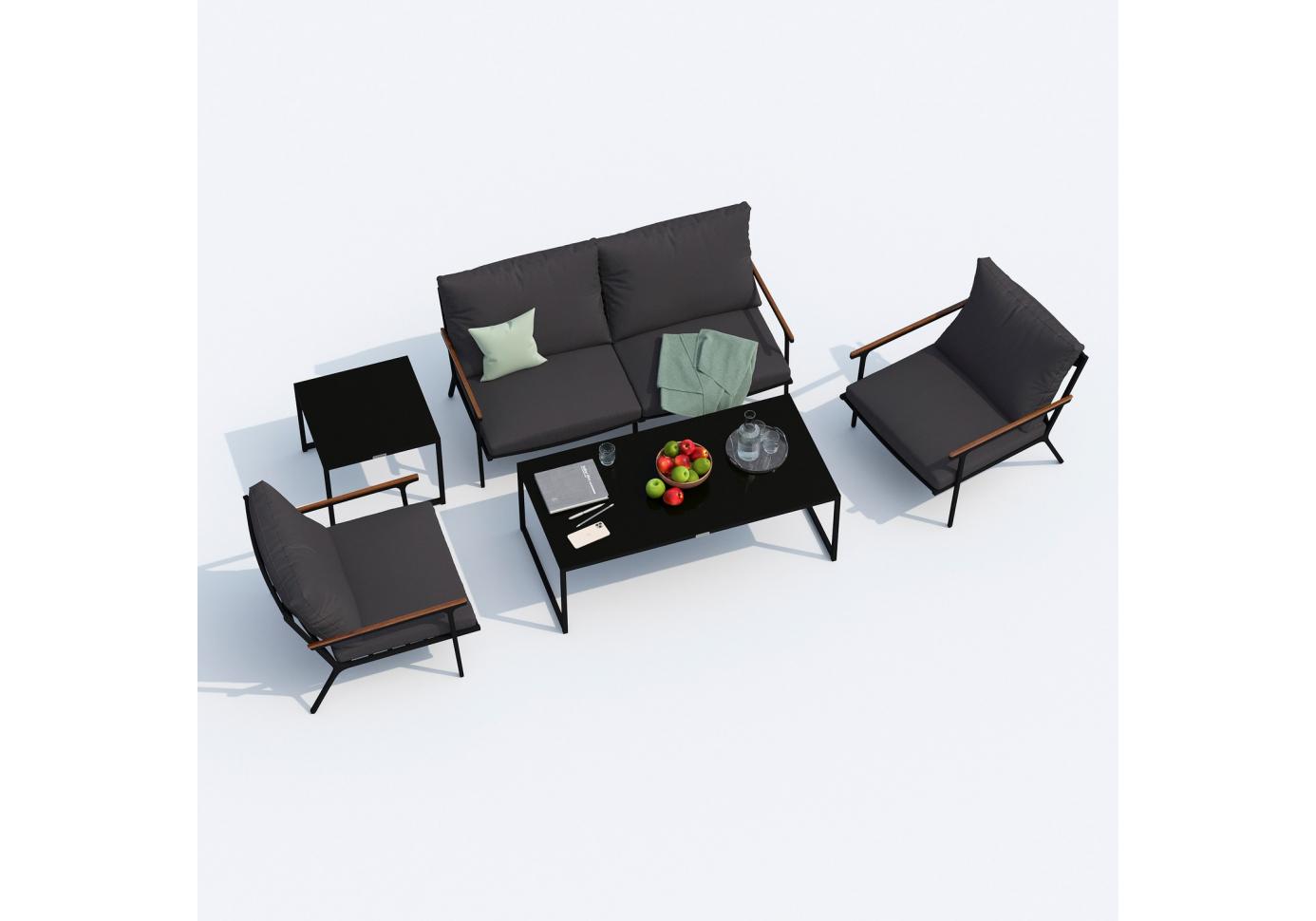Столик журнальный ФЕСТА идеально сочетается с коллекцией мебели ФЕСТА. Мягкий двух или трехместный диван, большие кресла и два журнальных столика со столешницей из чёрного глянцевого стекла - создать поистине уютное пространство для отдыха легко. Минимализм и сдержанная цветовая гамма, которую можно дополнить яркими акцентами в виде различных предметов декора. Черные чехлы или цвета антрацит идеально сочетаются с темно-серым каркасом. Они не выгорят на солнце и выдержат любые капризы погоды. Благодаря вшитой молнии их легко снять и почистить, если на них есть видимые загрязнения.