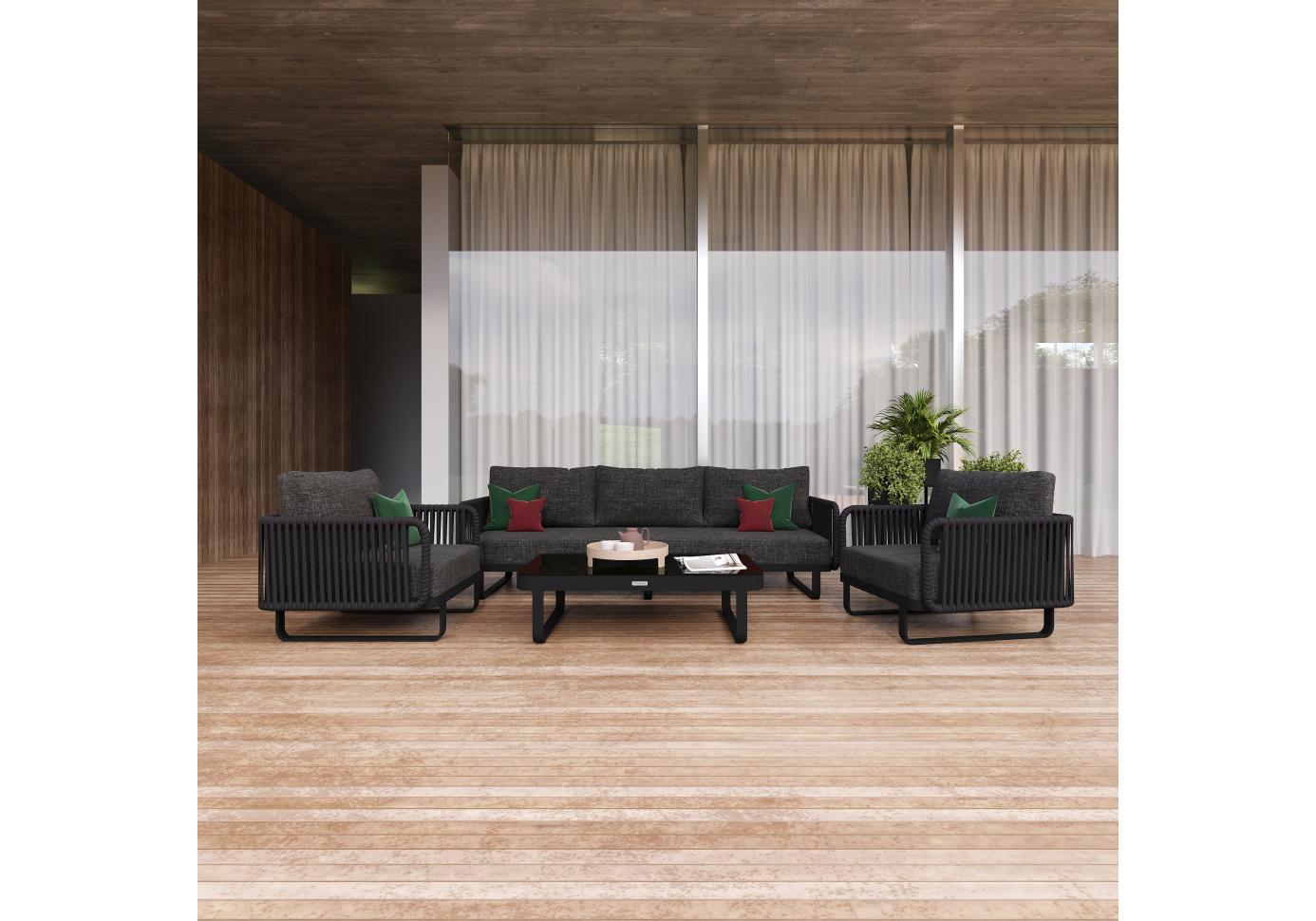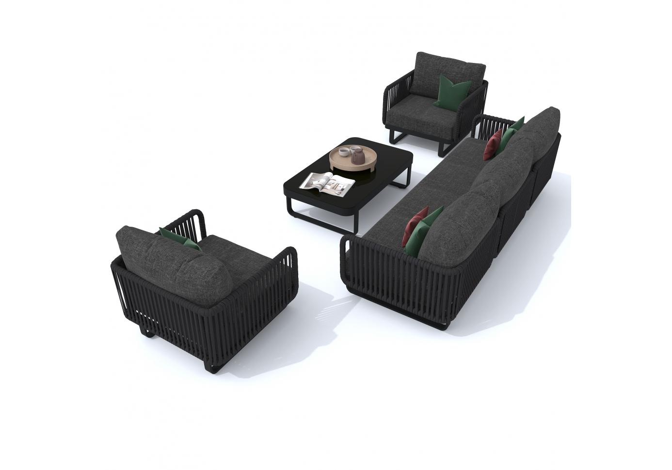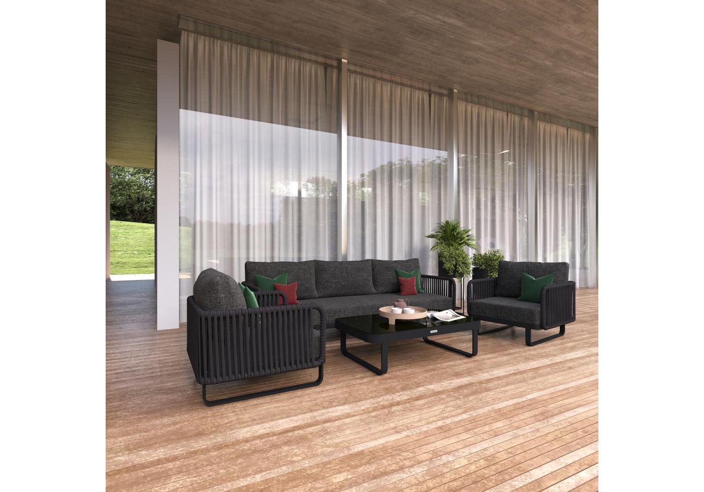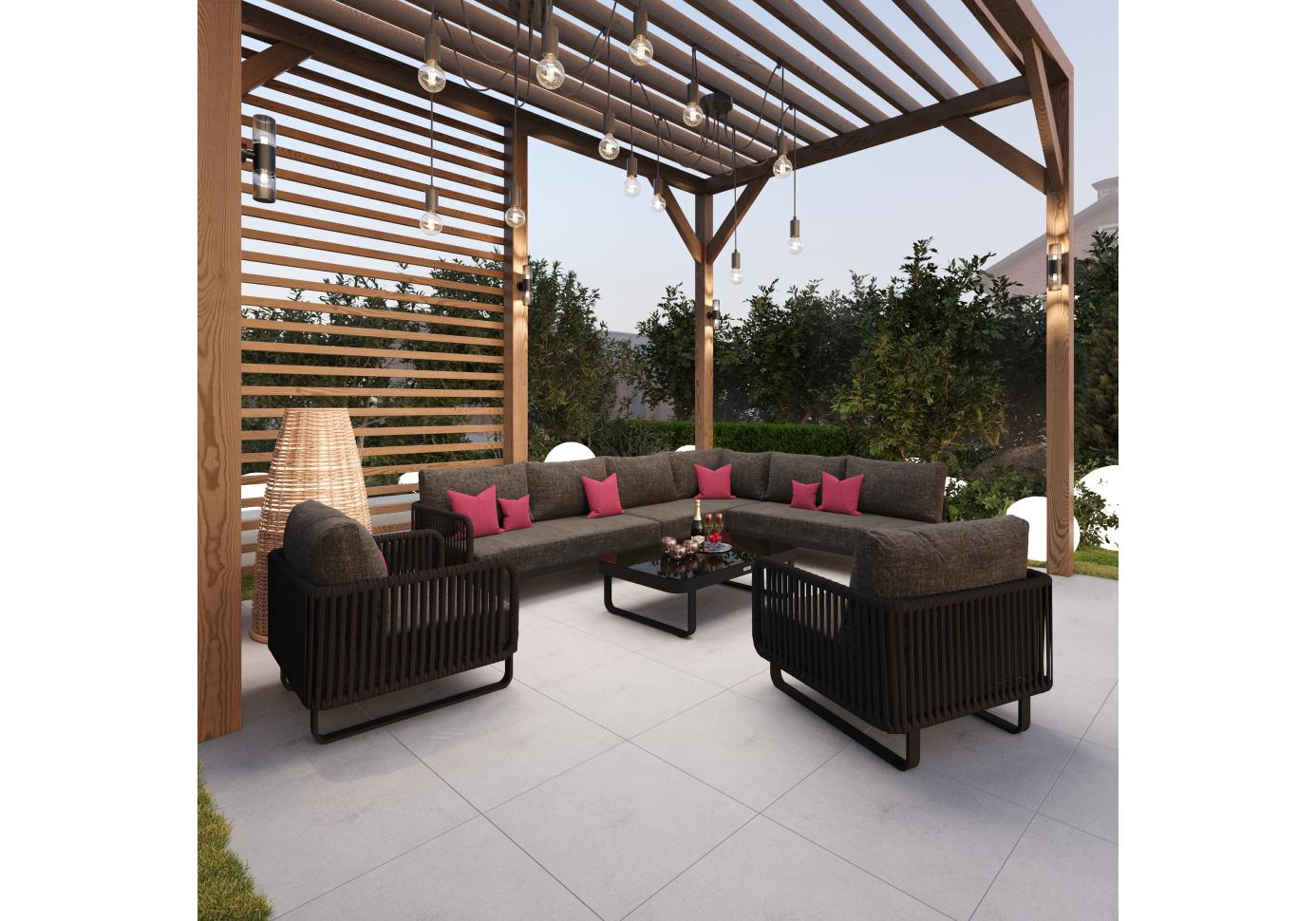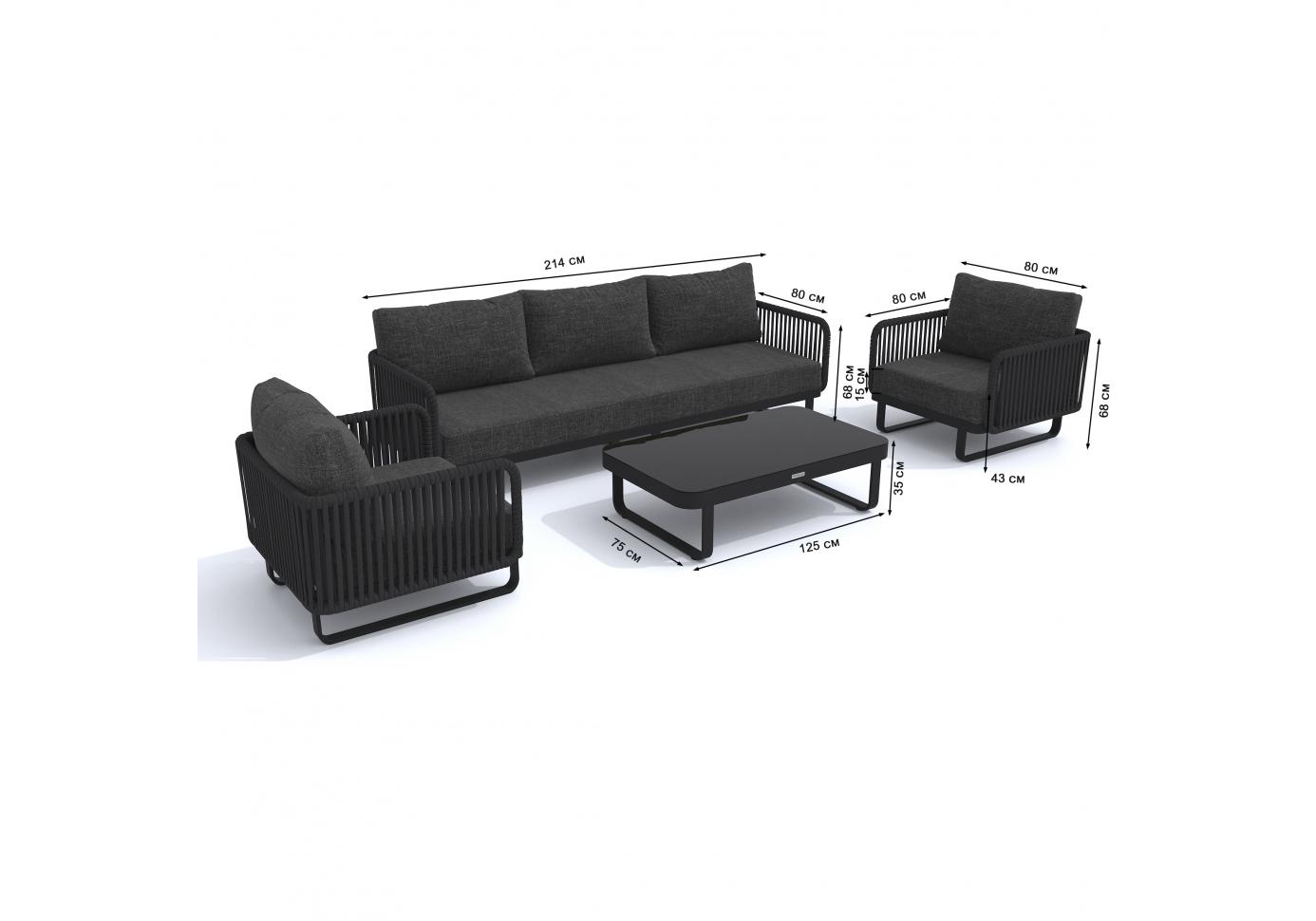 Материалы: всесезонный алюминий, ткань для улицы, веревочное плетение