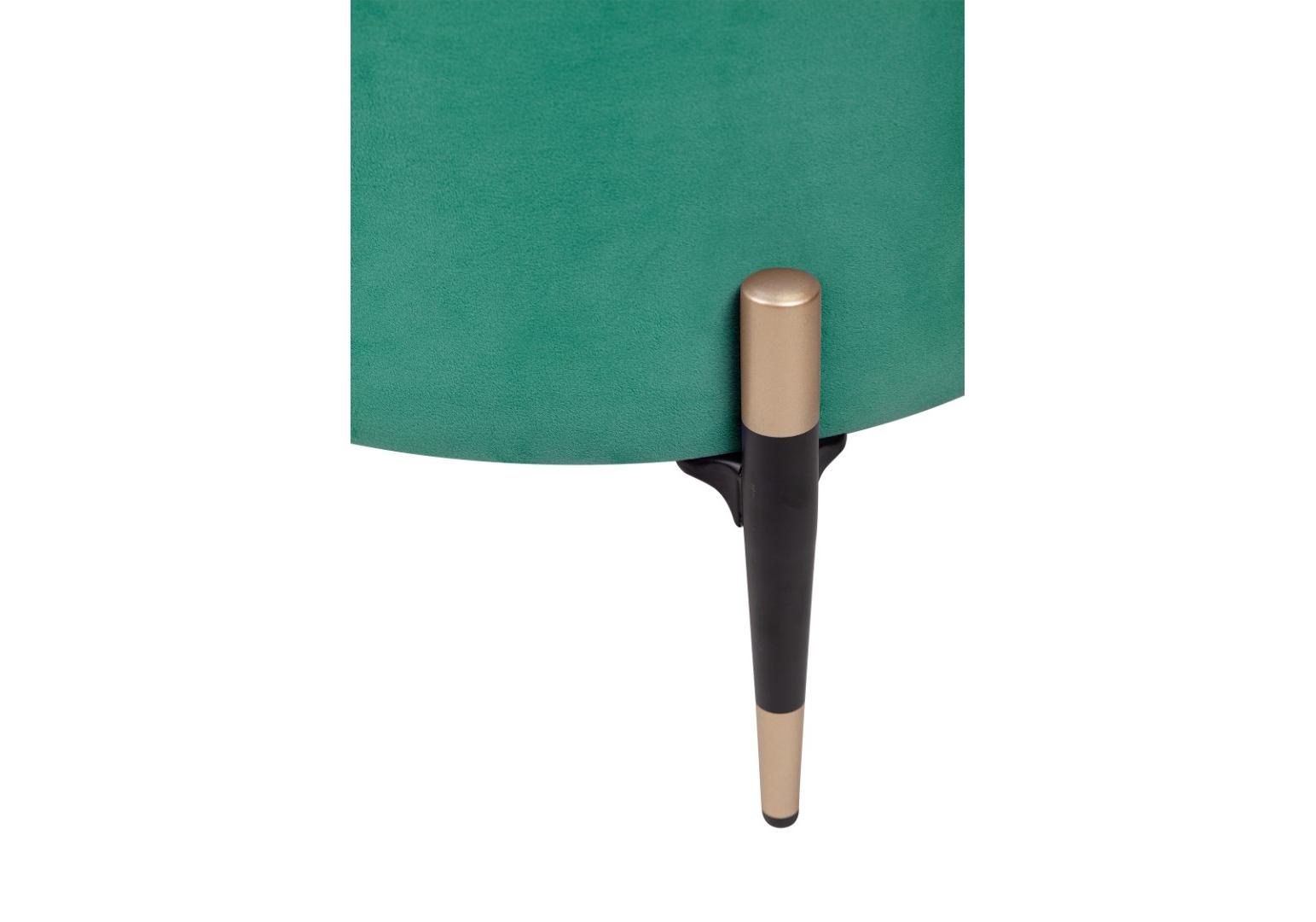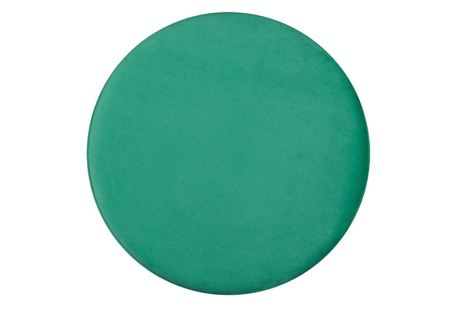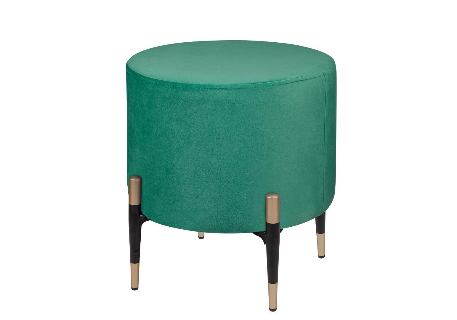 Круглый розовый пуф Lutor из мягкого велюра зеленого цвета. Особого внимания заслуживают ножки: изящные, конусовидные, чёрные — с деликатной золотой окантовкой внизу. Именно эта деталь создаёт элегантный контраст с нежно-розовой обивкой и придаёт пуфу законченный, дизайнерский вид. Легко впишется в любой интерьер.