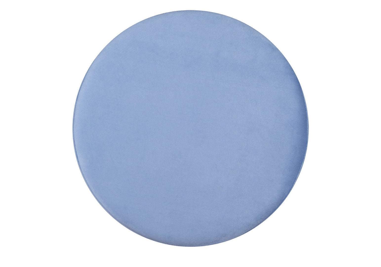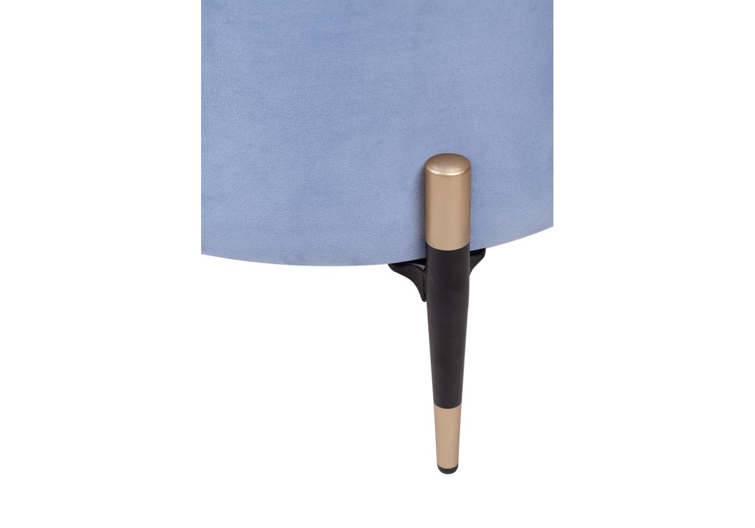 Круглый синий пуф Lutor из мягкого велюра синего цвета. Особого внимания заслуживают ножки: изящные, конусовидные, чёрные — с деликатной золотой окантовкой внизу. Именно эта деталь создаёт элегантный контраст с нежно-розовой обивкой и придаёт пуфу законченный, дизайнерский вид. Легко впишется в любой интерьер.