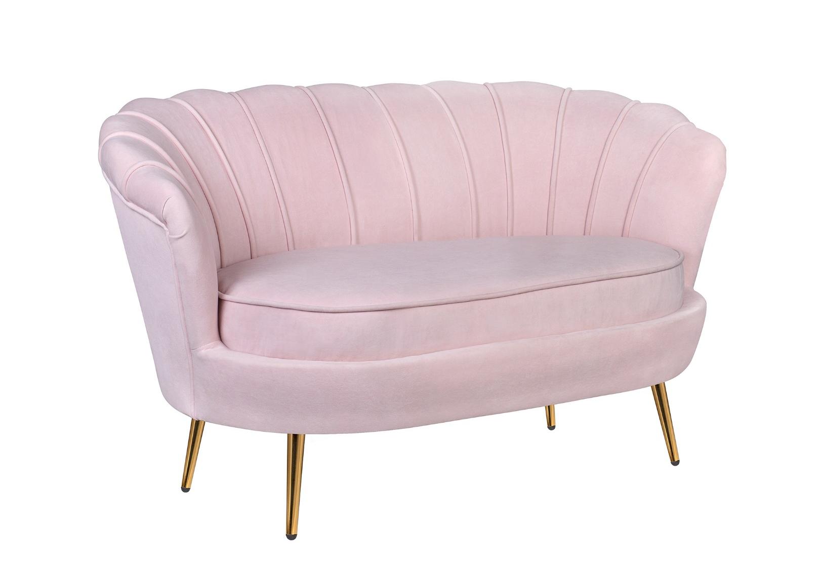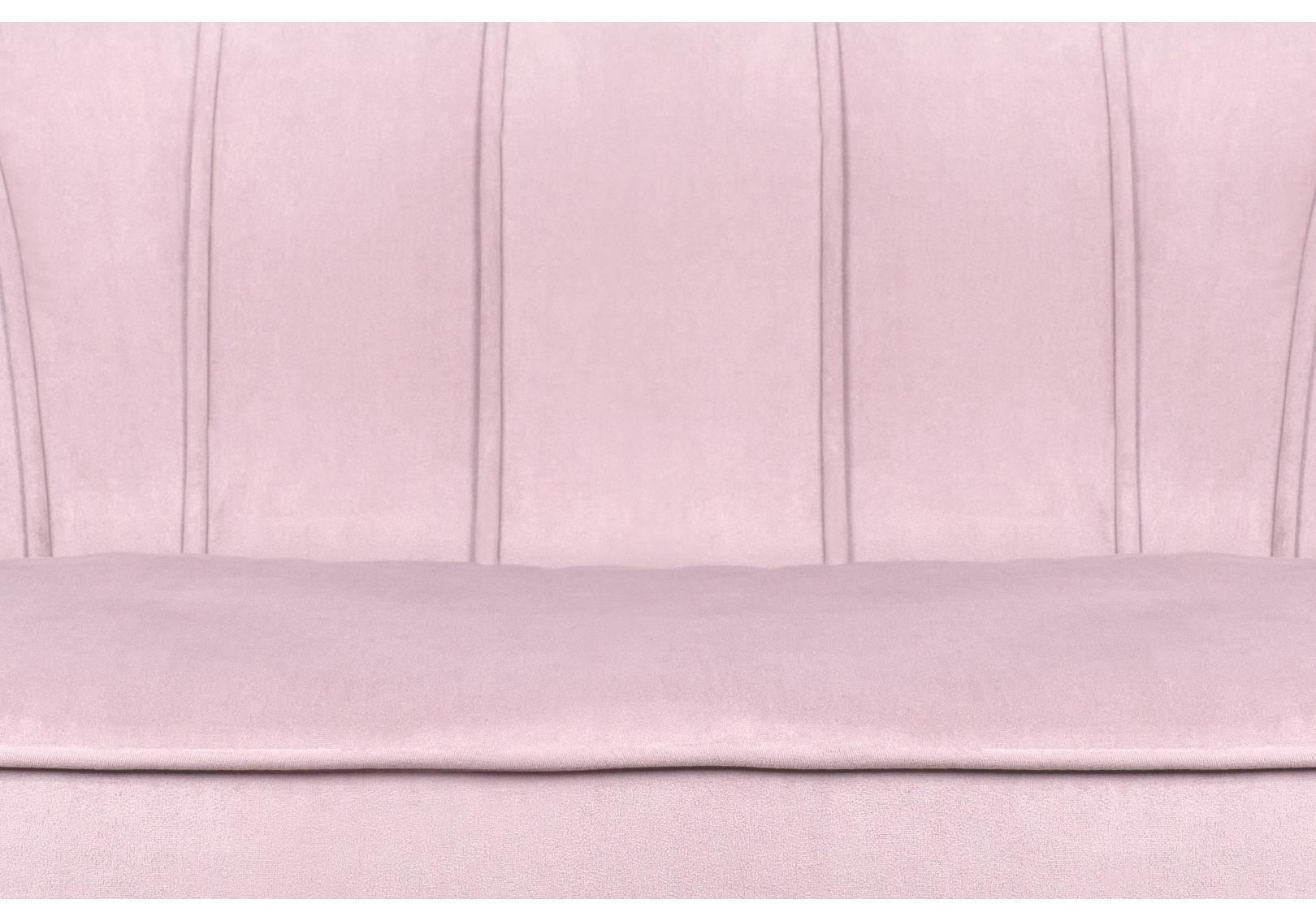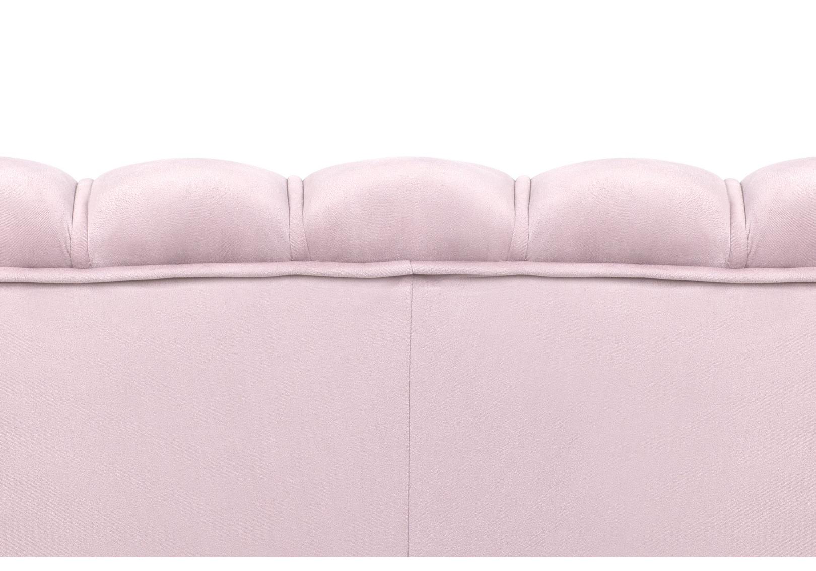 Розовый диван с обивкой из велюра Pearl double pink на основе каркаса из натурального дерева, с бархатистой велюровой обивкой, декорированной продольными стежками на внутренней стороне спинки. Модель выполнена в розовом цвете, по форме напоминает створку раковины, огибающей жемчужину – круглую подушку для сидения. Короткие металлические ножки с блестящей золотистой поверхностью расходятся в виде лучей под небольшим наклоном к основанию. Мебель роскошно выглядит и подходит для оформления элитных интерьеров.
