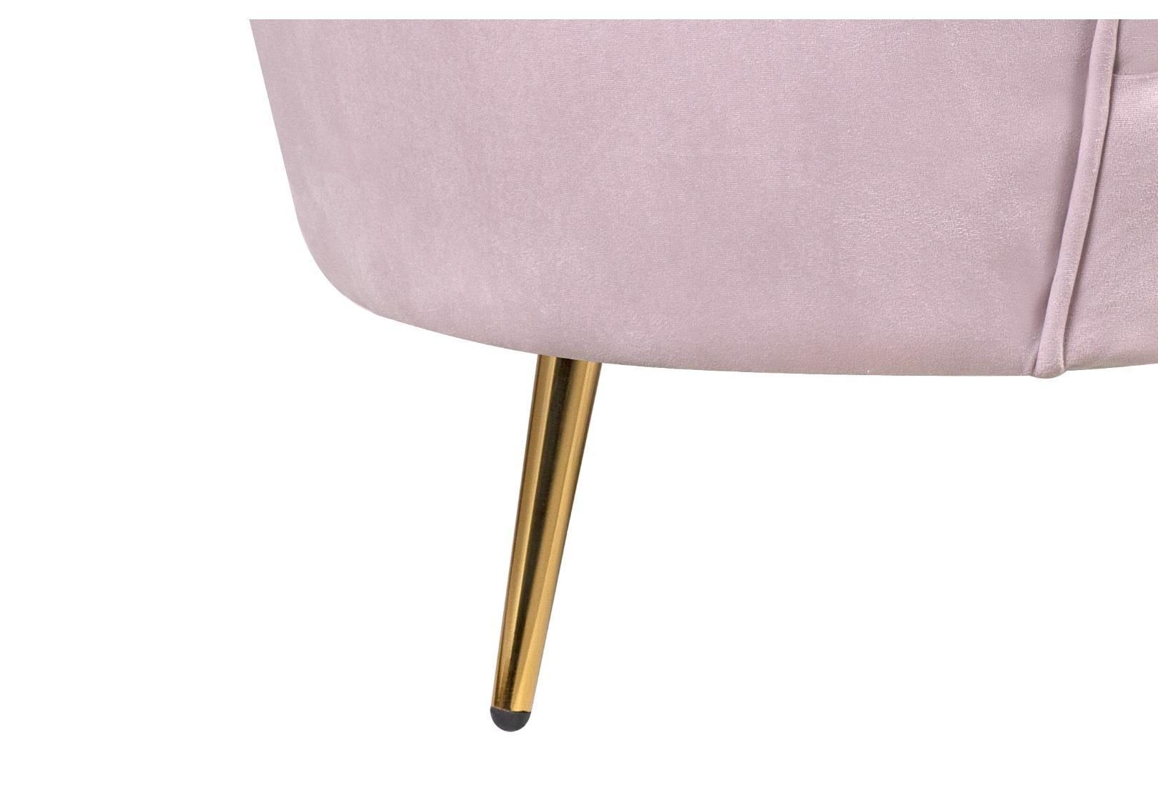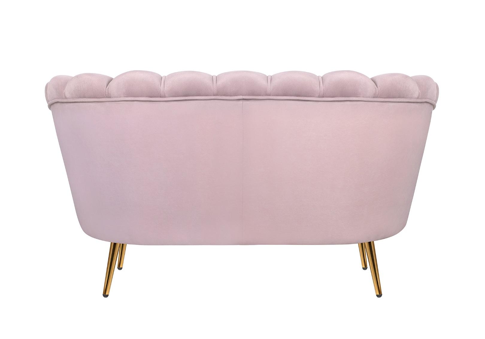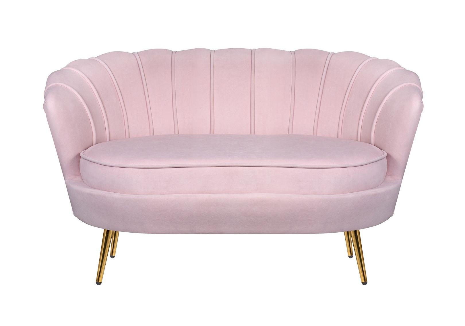 Розовый диван с обивкой из велюра Pearl double pink на основе каркаса из натурального дерева, с бархатистой велюровой обивкой, декорированной продольными стежками на внутренней стороне спинки. Модель выполнена в розовом цвете, по форме напоминает створку раковины, огибающей жемчужину – круглую подушку для сидения. Короткие металлические ножки с блестящей золотистой поверхностью расходятся в виде лучей под небольшим наклоном к основанию. Мебель роскошно выглядит и подходит для оформления элитных интерьеров.