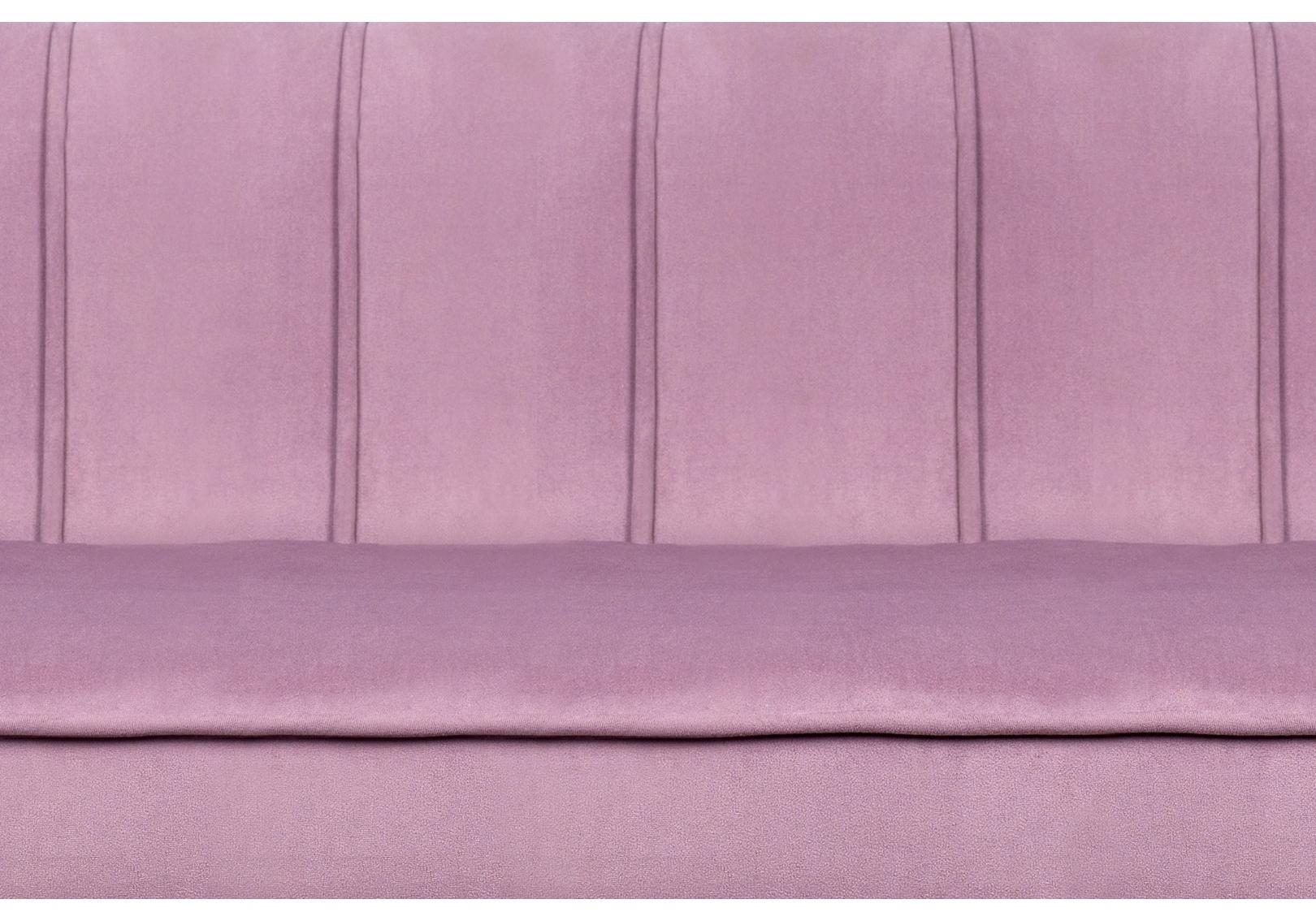 Розовый диван с обивкой из велюра Pearl triple pink на основе каркаса из натурального дерева, с бархатистой велюровой обивкой, декорированной продольными стежками на внутренней стороне спинки. Модель выполнена в розовом цвете, по форме напоминает створку раковины, огибающей жемчужину – круглую подушку для сидения. Короткие металлические черного цвета расходятся в виде лучей под небольшим наклоном к основанию. Мебель роскошно выглядит и подходит для оформления элитных интерьеров.