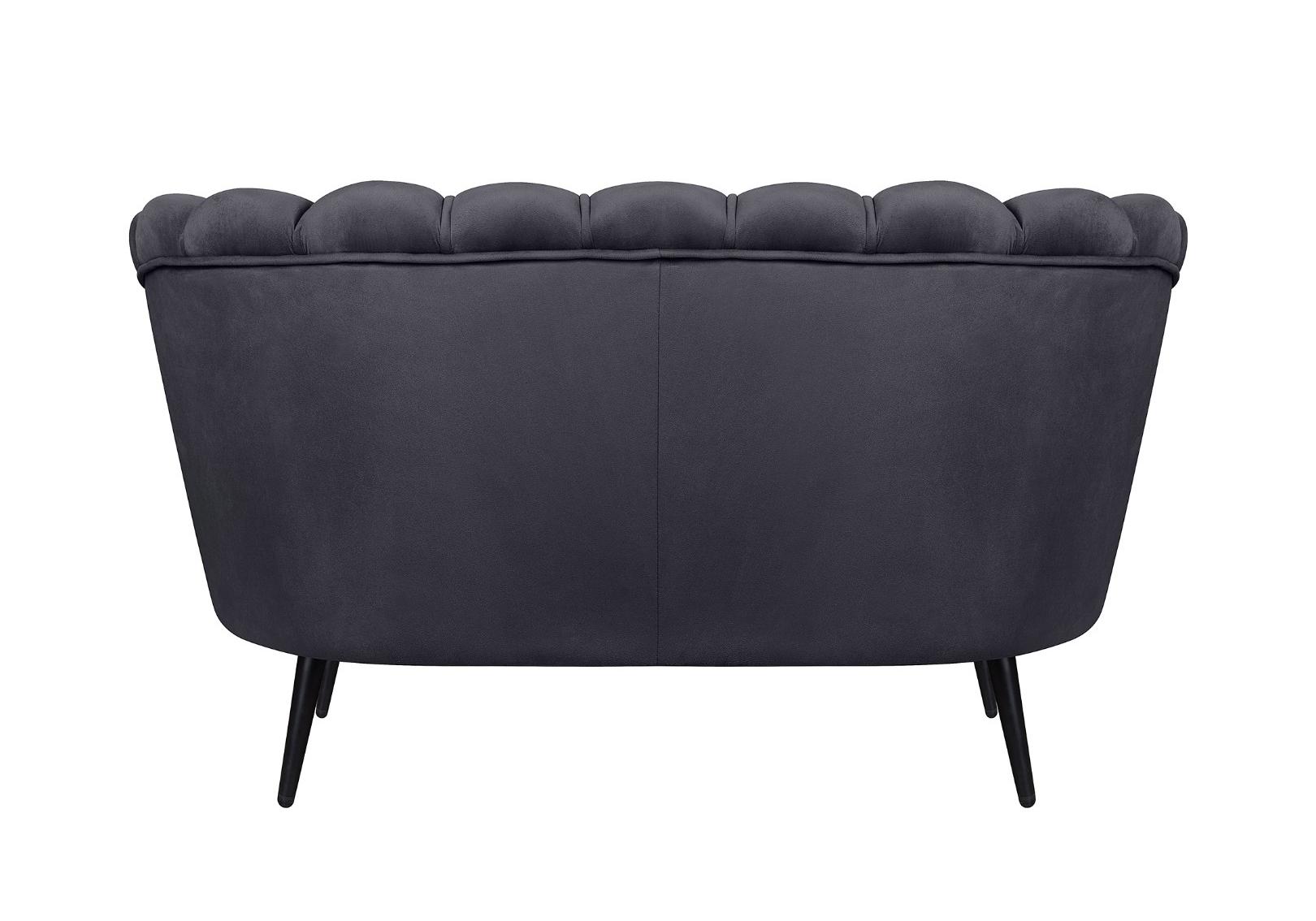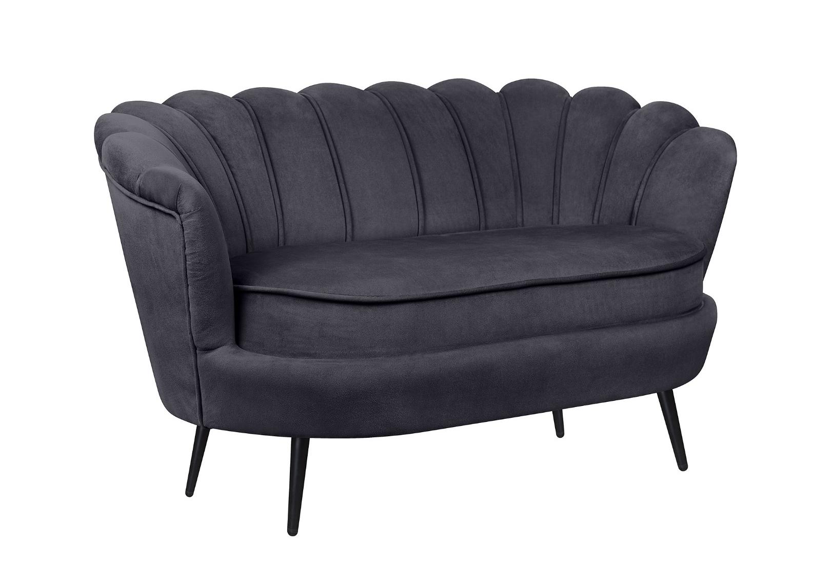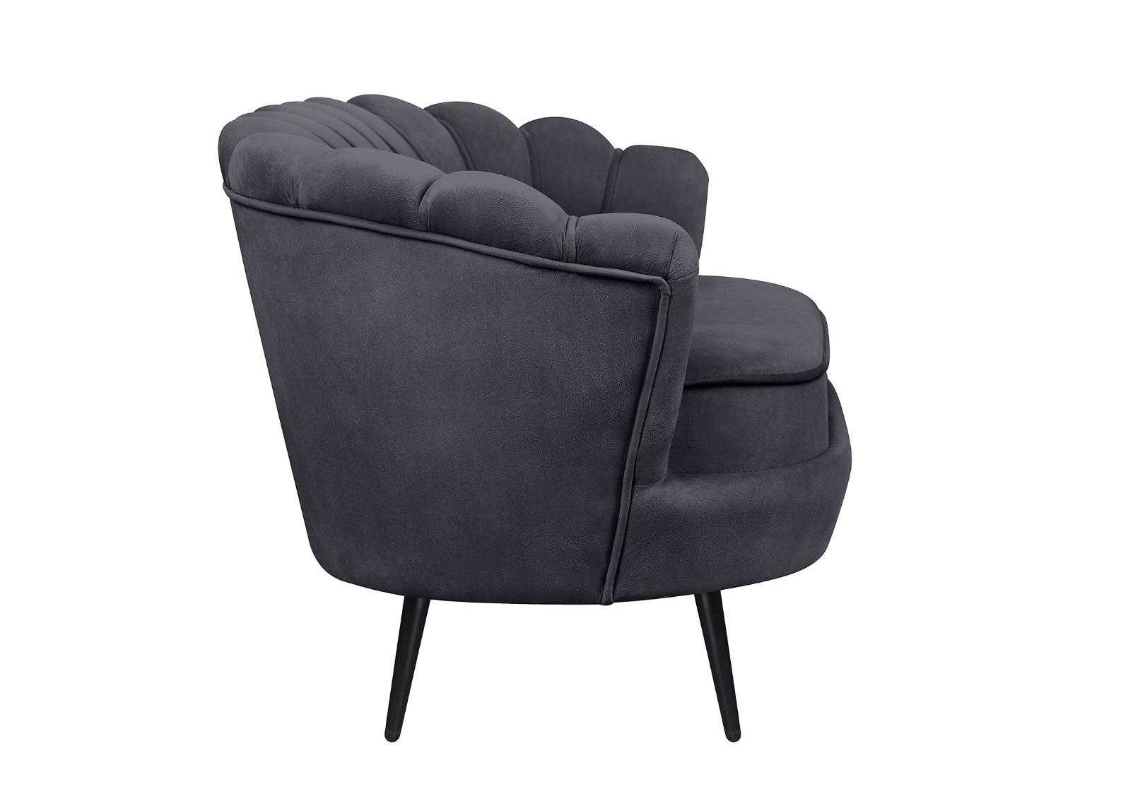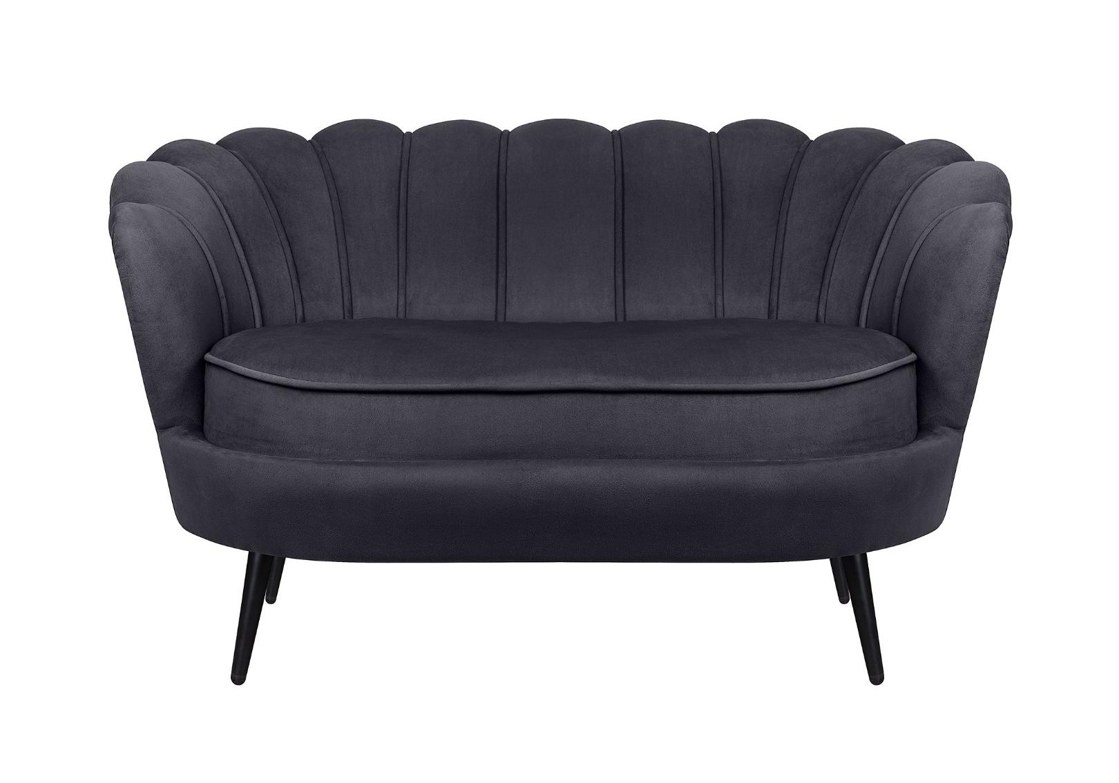 Черный диван ракушка с обивкой из велюра Pearl double black на основе каркаса из натурального дерева, с обивкой, декорированной продольными стежками на внутренней стороне спинки. Модель выполнена в черном цвете, по форме напоминает створку раковины, огибающей жемчужину – круглую подушку для сидения. Короткие металлические ножки черного цвета расходятся в виде лучей под небольшим наклоном к основанию. Мебель роскошно выглядит и подходит для оформления элитных интерьеров.