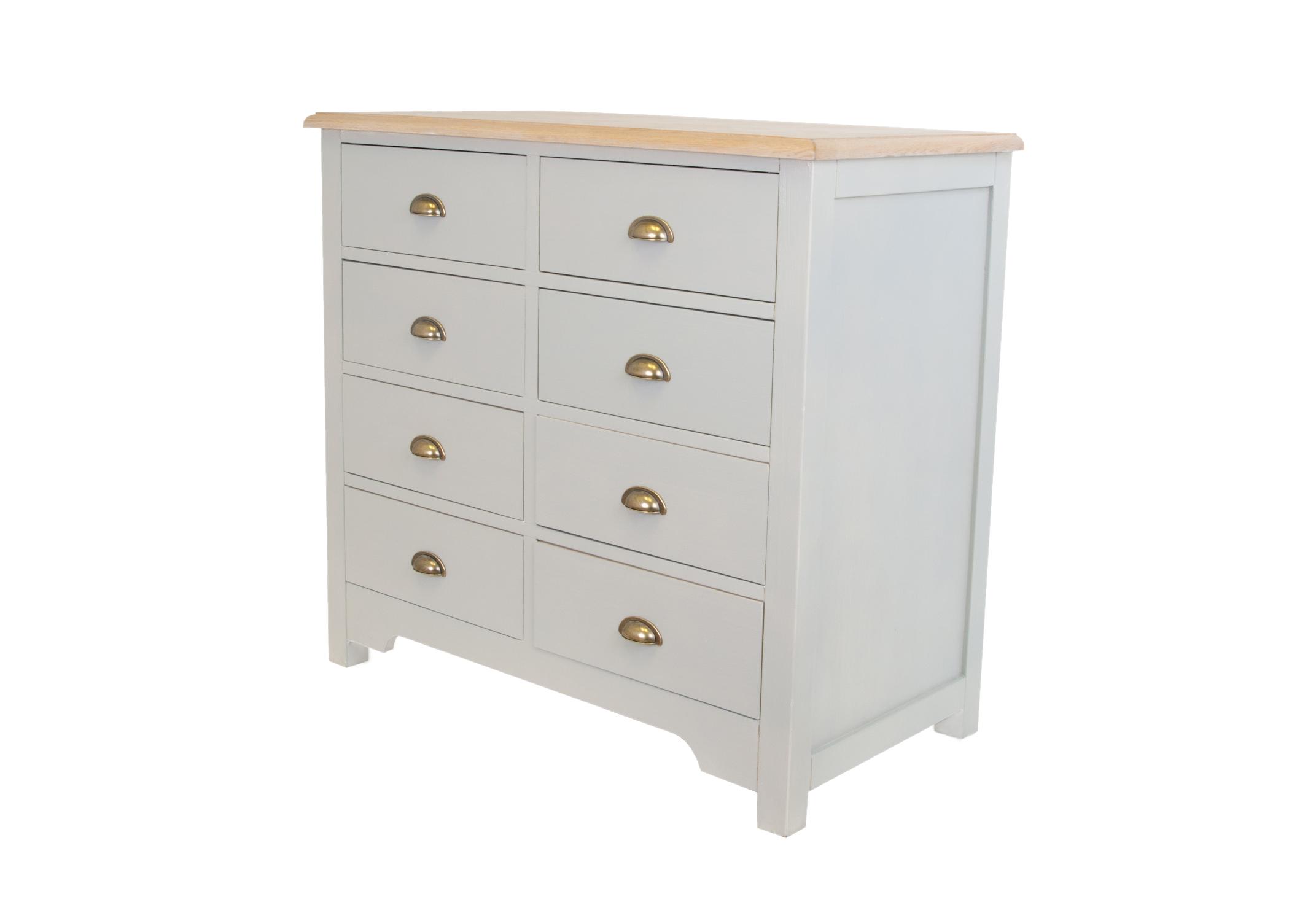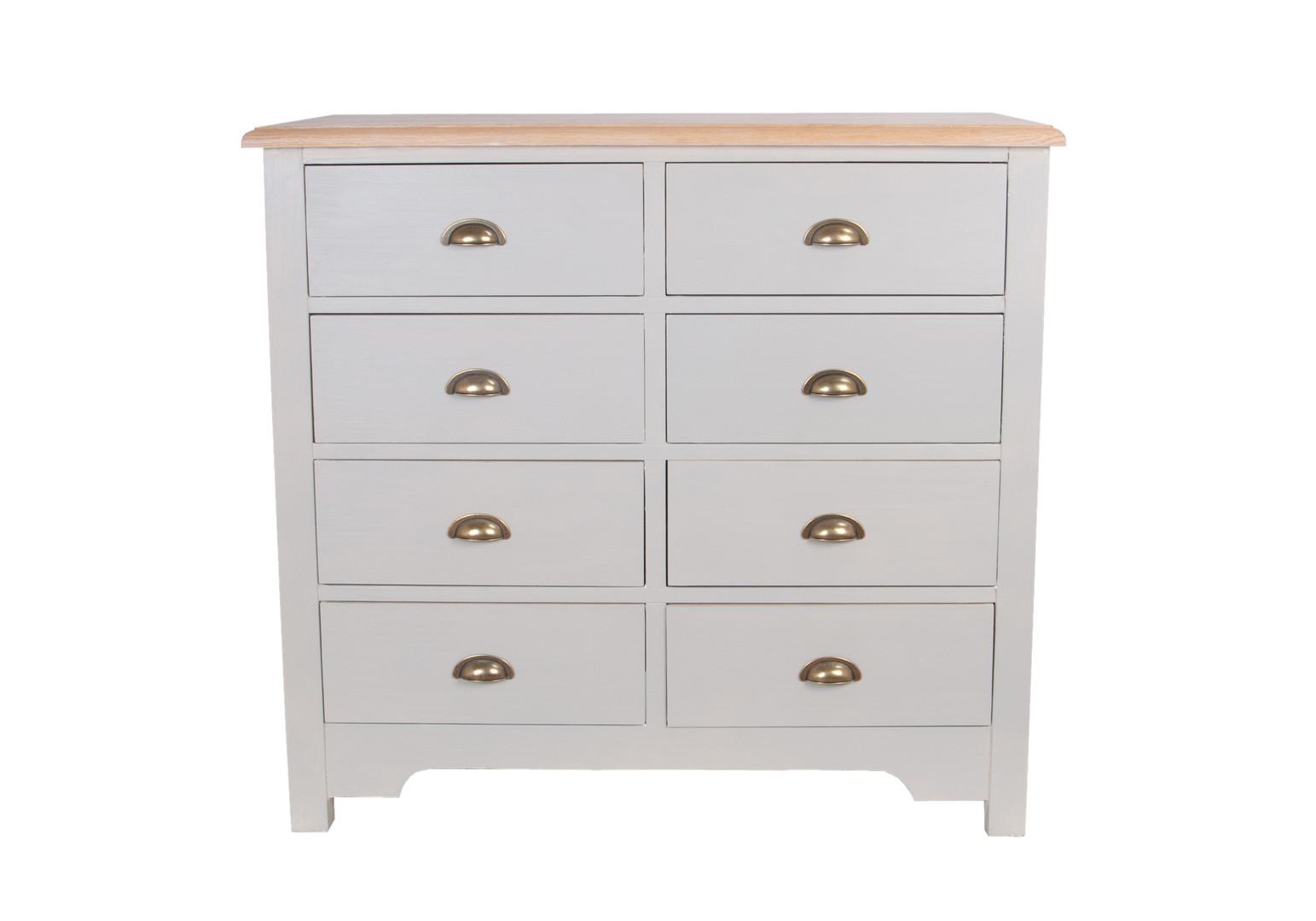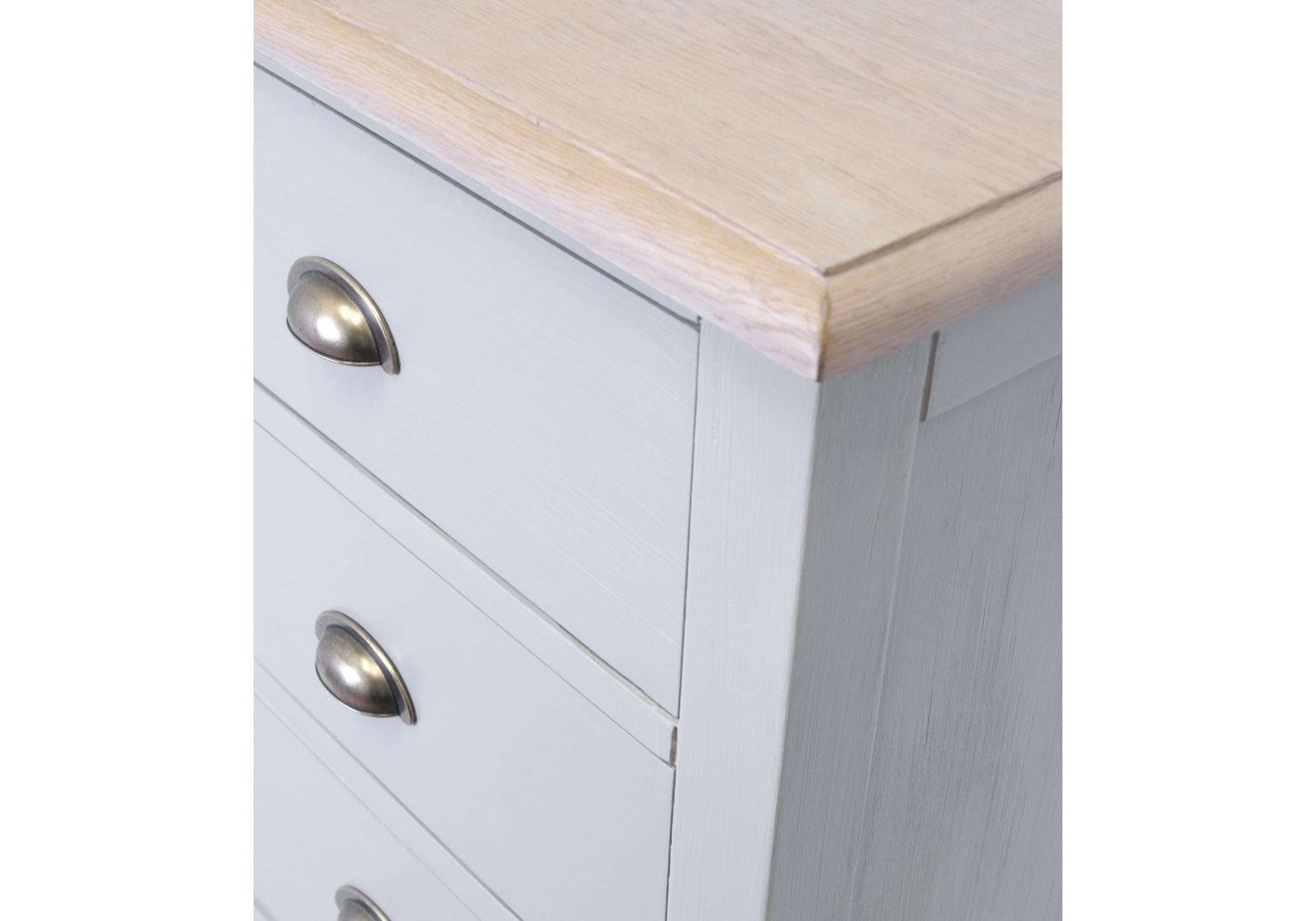 Светло-серый комод Cardey в английском стиле продолжает тематику классической, светлой и элегантной мебели. Комод удобно впишется в любой интерьер и создаст полезное пространство для расположения вещей.