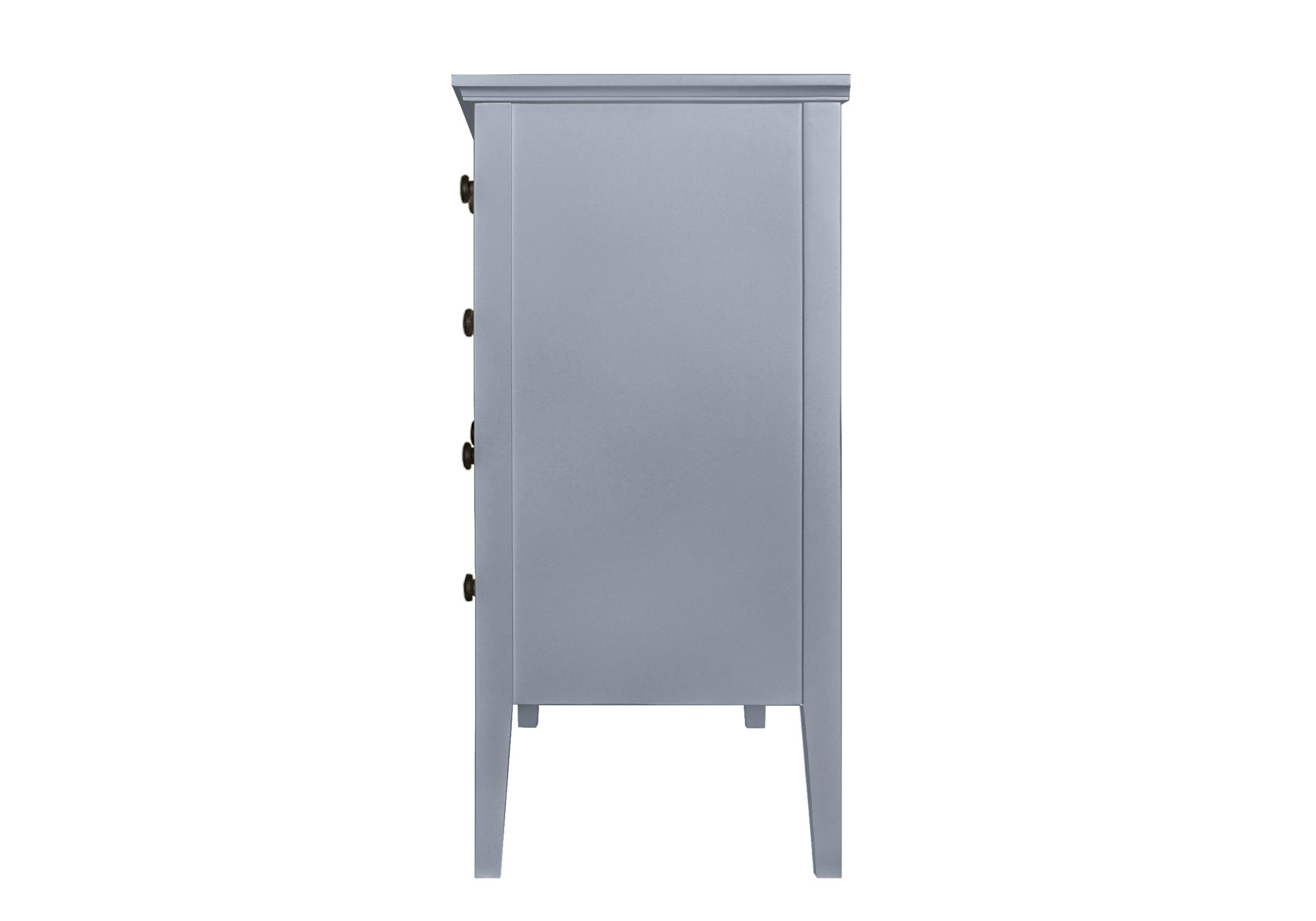 Серый комод Friz Grey современный классик универсальной модификации, способный менять назначение в зависимости от роли, отведенной ей владельцем. Модель в гостиной выступает в качестве классического комода, в спальне способен стать столиком, а в детской – подставкой для игрушек и других принадлежностей ребенка. Выполнен в сером цвете из массива бука и МДФ, отличается практичностью и эффектным внешним видом.