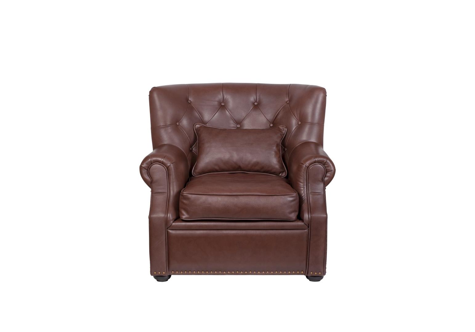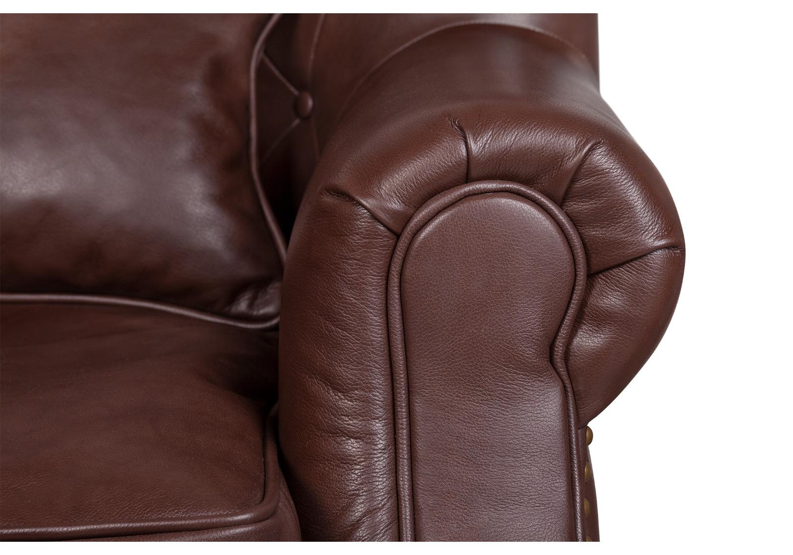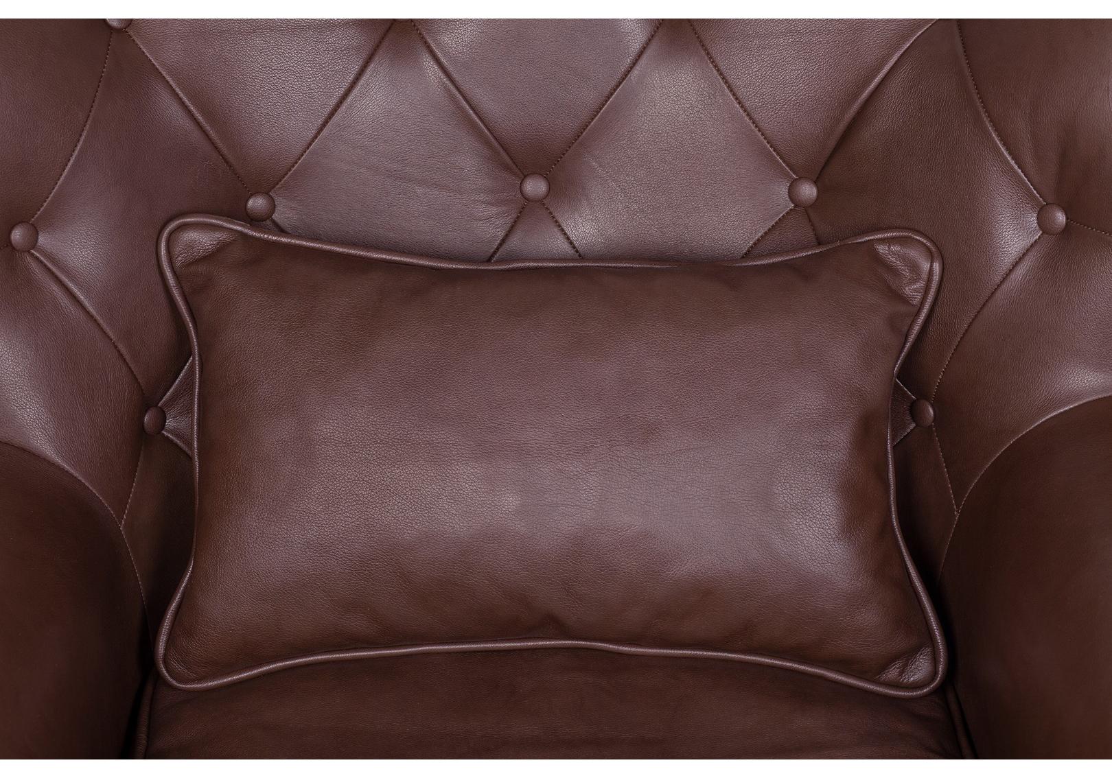Элитное кресло Tesco из натуральной кожи коричневого цвета, выполненное в классическом английском стиле. Объемная стежка на спинке и блестящие заклепки по низу изделия служат эффектным украшением. Наличие двух маленьких колесиков спереди облегчает передвижение модели. Поставляется в комплекте с высоким съемным сиденьем и небольшой кожаной подушкой.