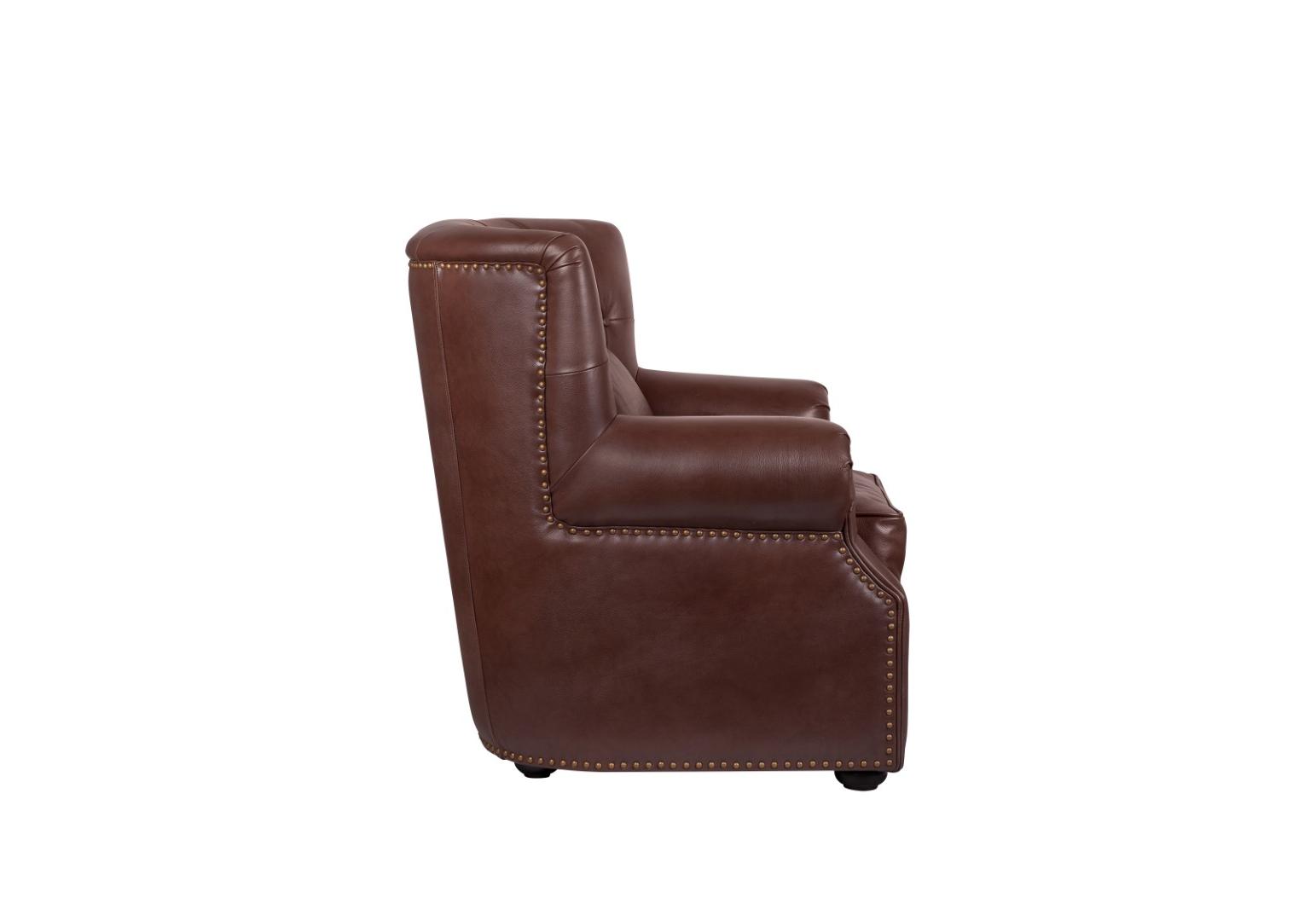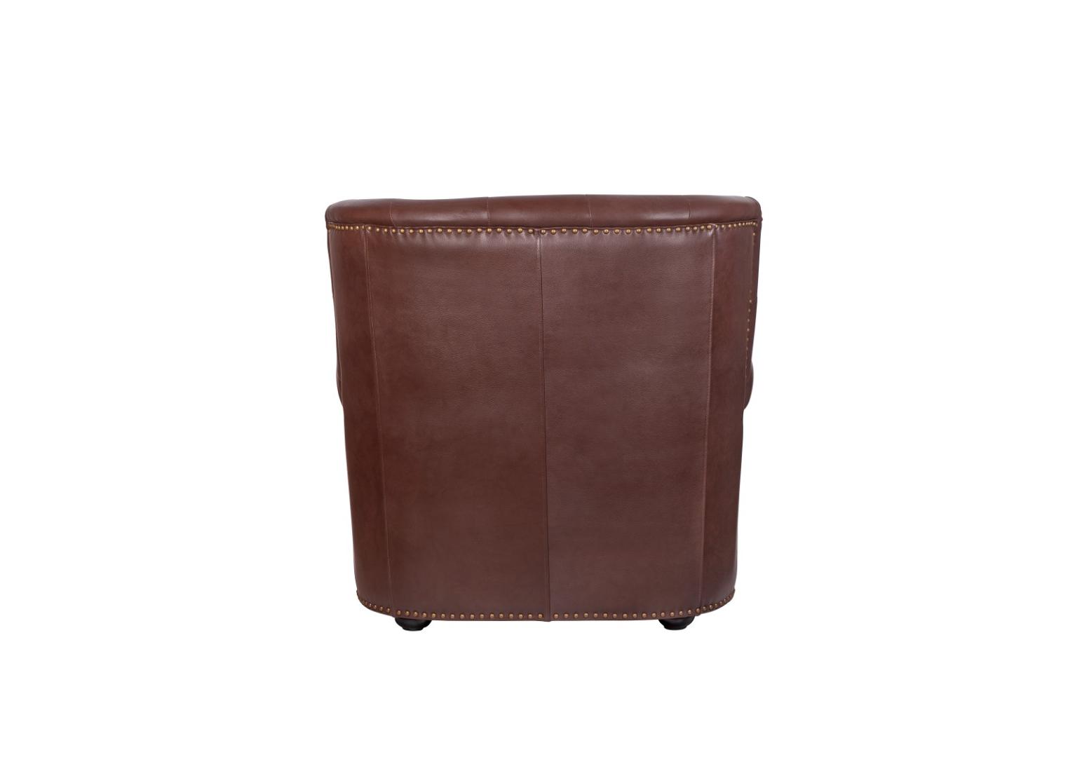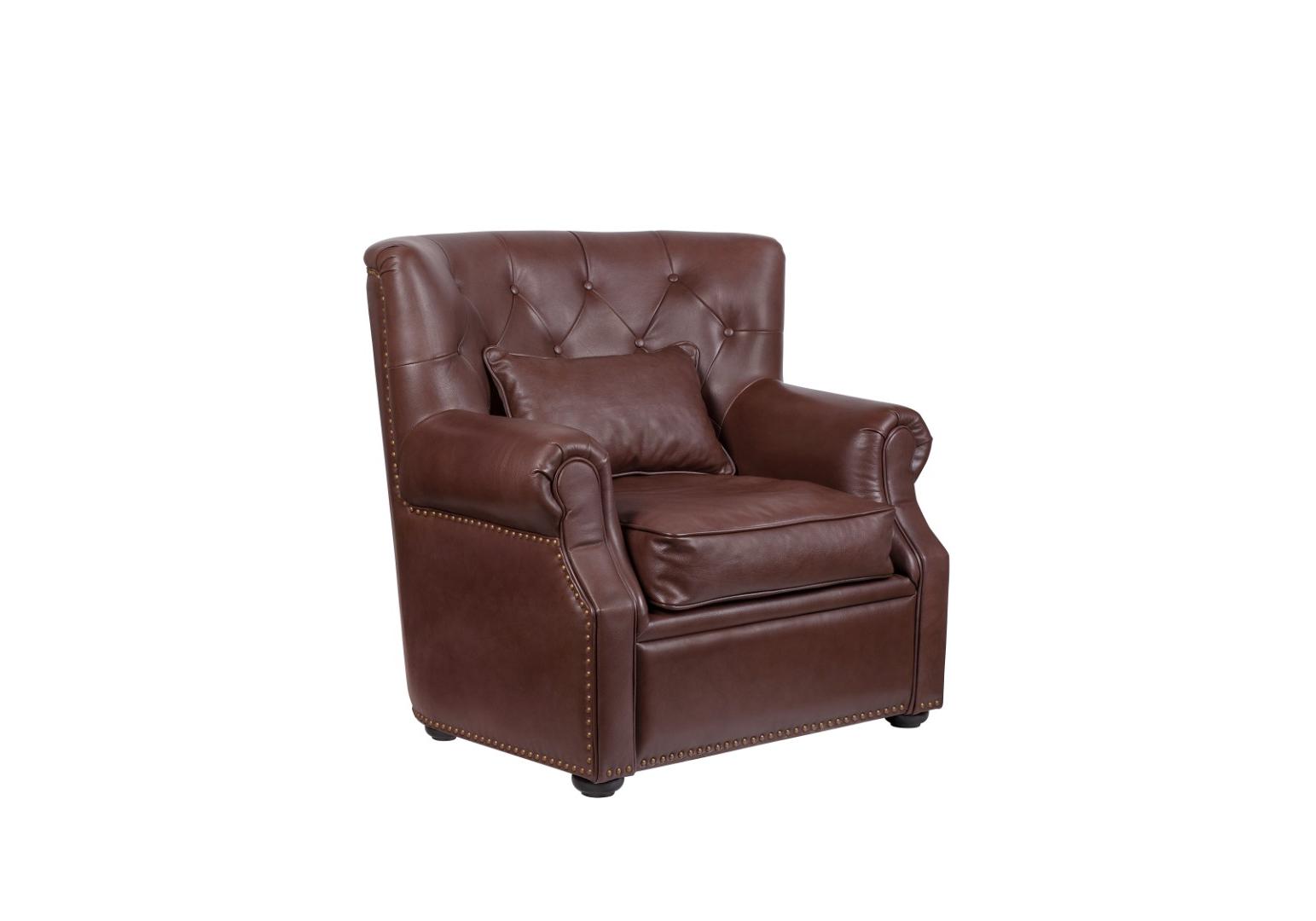 Элитное кресло Tesco из натуральной кожи коричневого цвета, выполненное в классическом английском стиле. Объемная стежка на спинке и блестящие заклепки по низу изделия служат эффектным украшением. Наличие двух маленьких колесиков спереди облегчает передвижение модели. Поставляется в комплекте с высоким съемным сиденьем и небольшой кожаной подушкой.