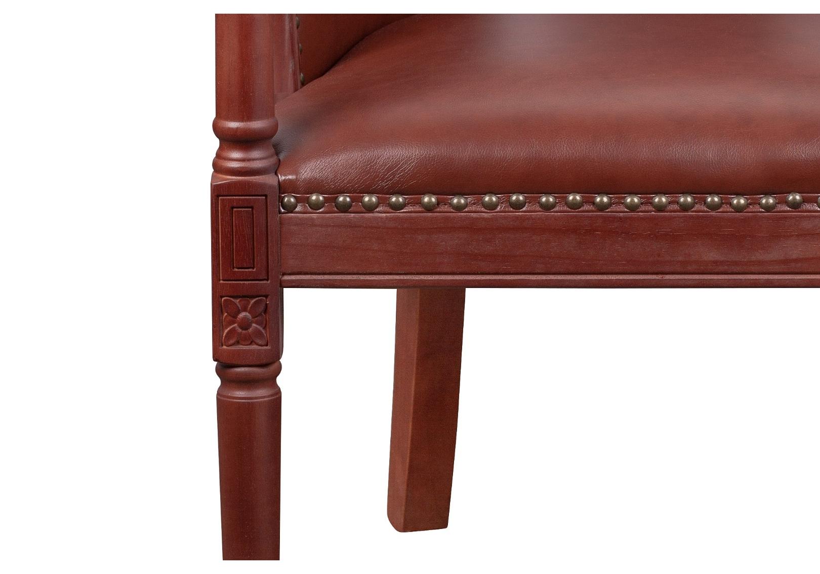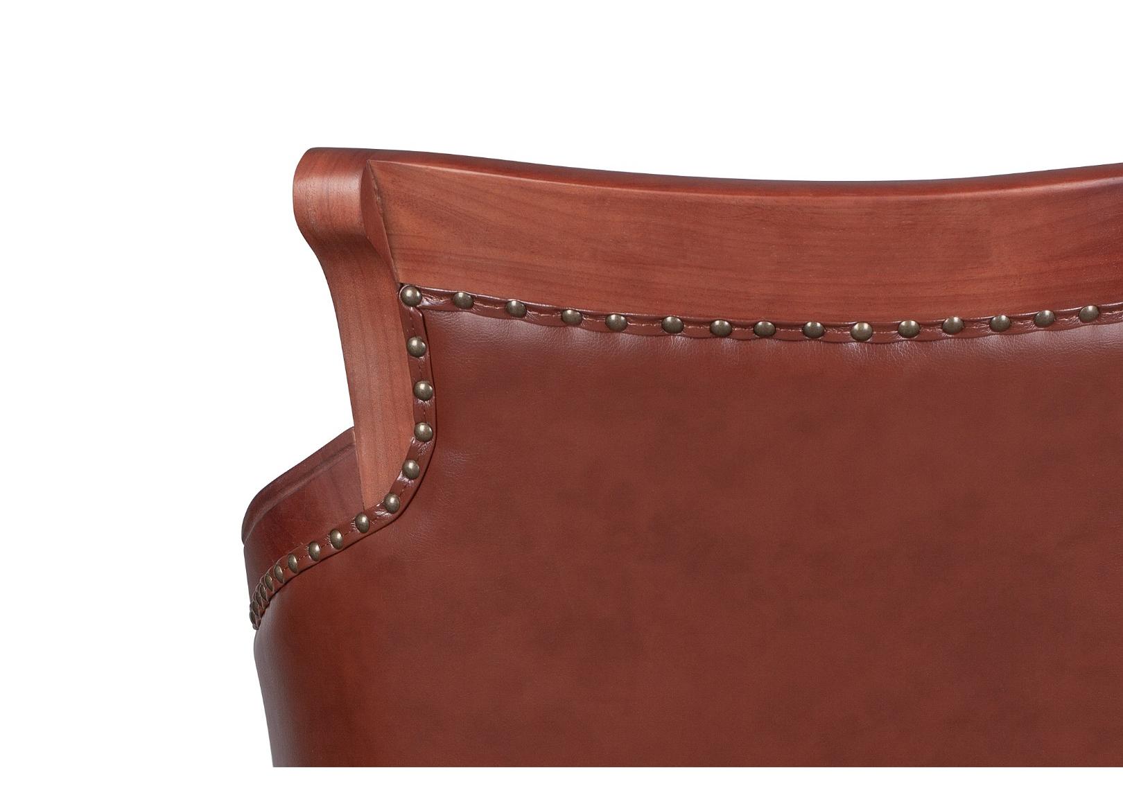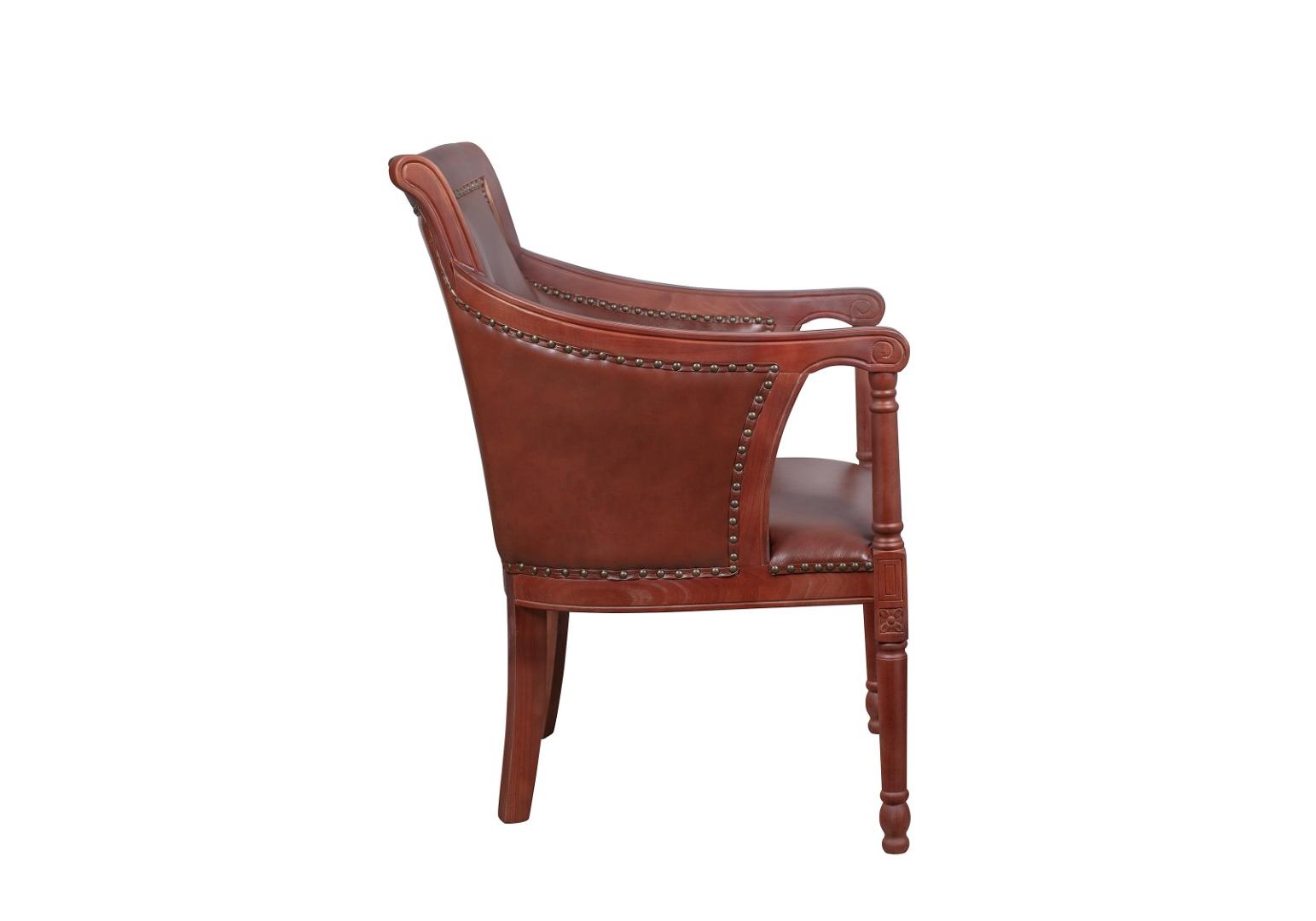 Кресло Valene Brown коричневого цвета с резными ножками и низкой спинкой, переходящей в фигурные подлокотники. Каркас из ценных пород дерева гарантирует прочность модели и устойчивость к статическим нагрузкам. Обивка из коричневой искусственной кожи, приятная на ощупь поверхность эффектно смотрится в классических и современных интерьерах. Модель подходит для гостиных, спален, рабочих кабинетов и офисных приемных, обеспечивает комфортный отдых или приятное ожидание.