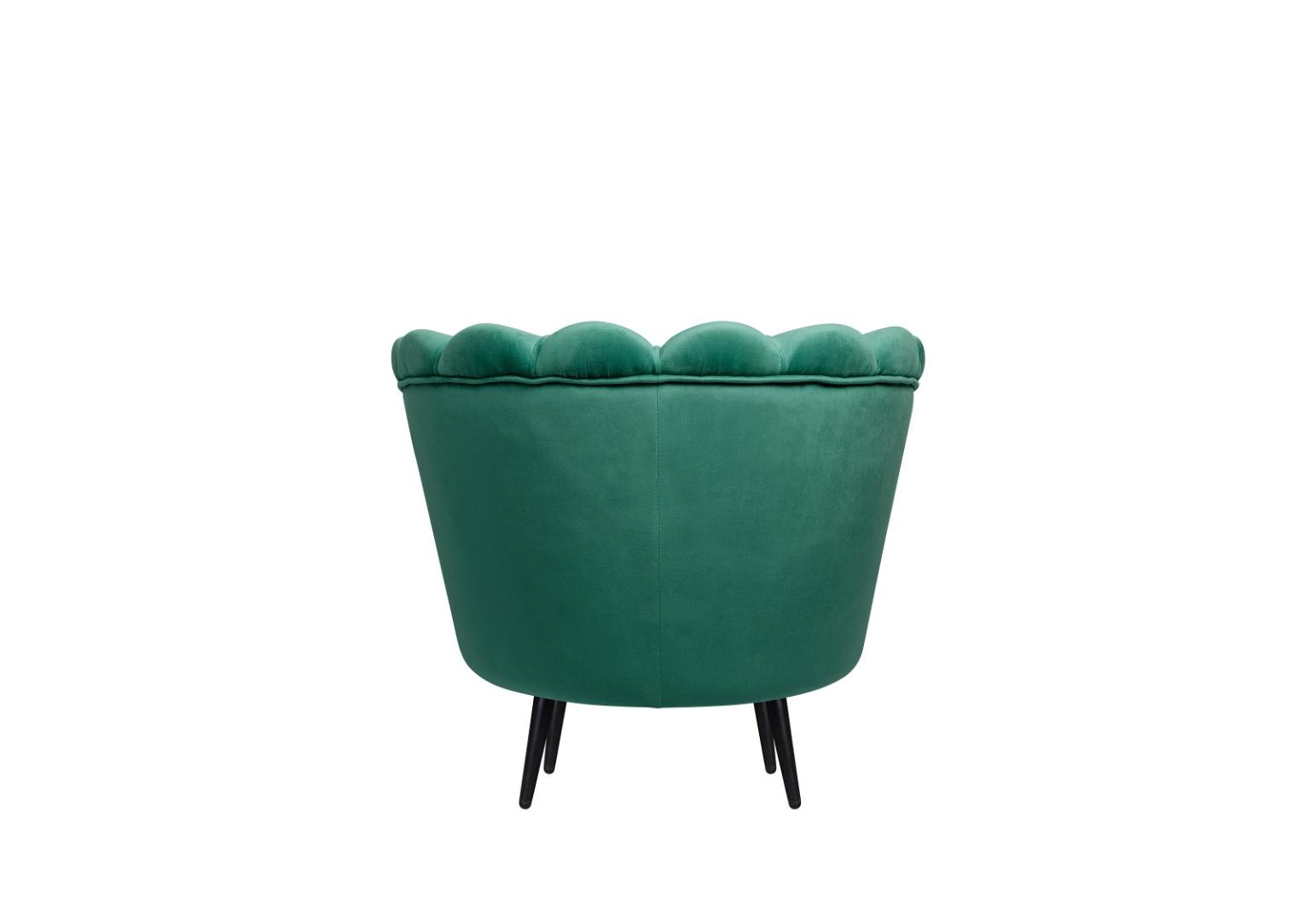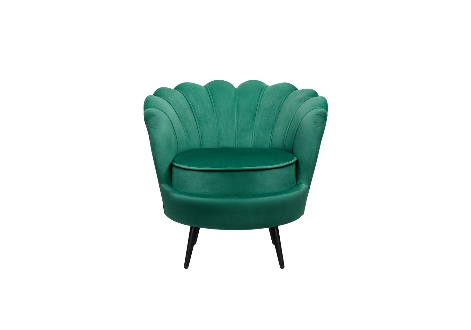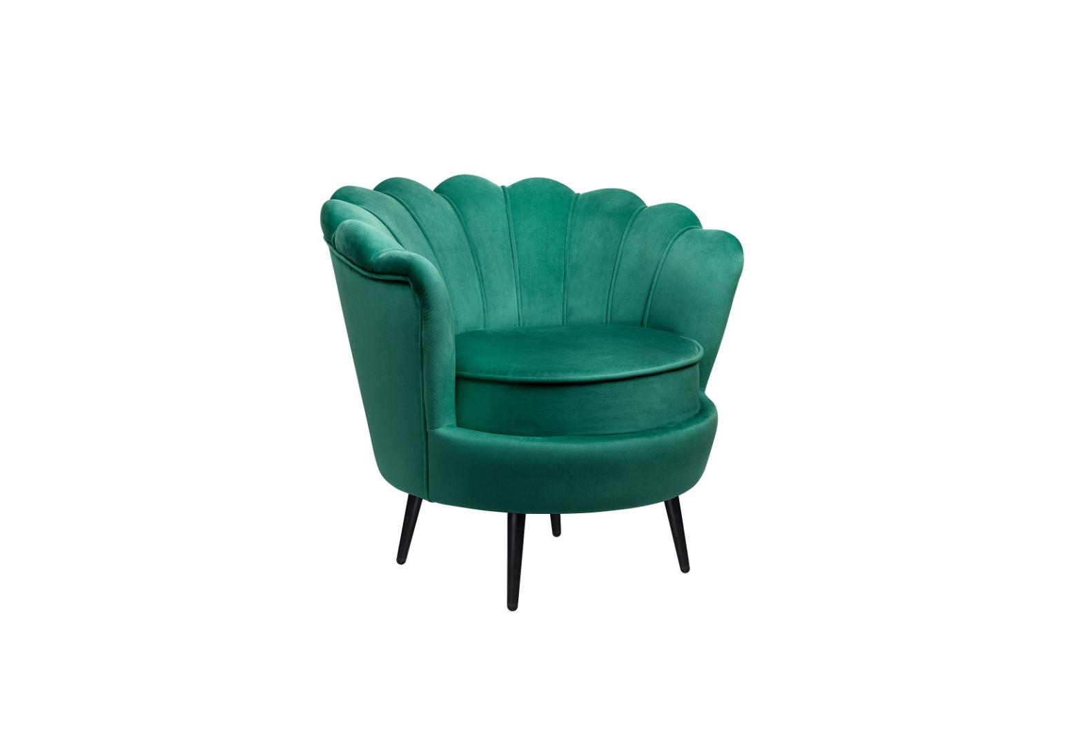 Дизайнерское кресло Pearl green v2 на основе каркаса из натурального дерева, с велюровой обивкой, декорированной продольными стежками на внутренней стороне спинки. Модель выполнена велюре зеленого цвета, по форме напоминает створку раковины, огибающей жемчужину – круглую подушку для сидения. Короткие металлические ножки черного цвета расходятся в виде лучей под небольшим наклоном к основанию. Мебель роскошно выглядит и подходит для оформления элитных интерьеров.
