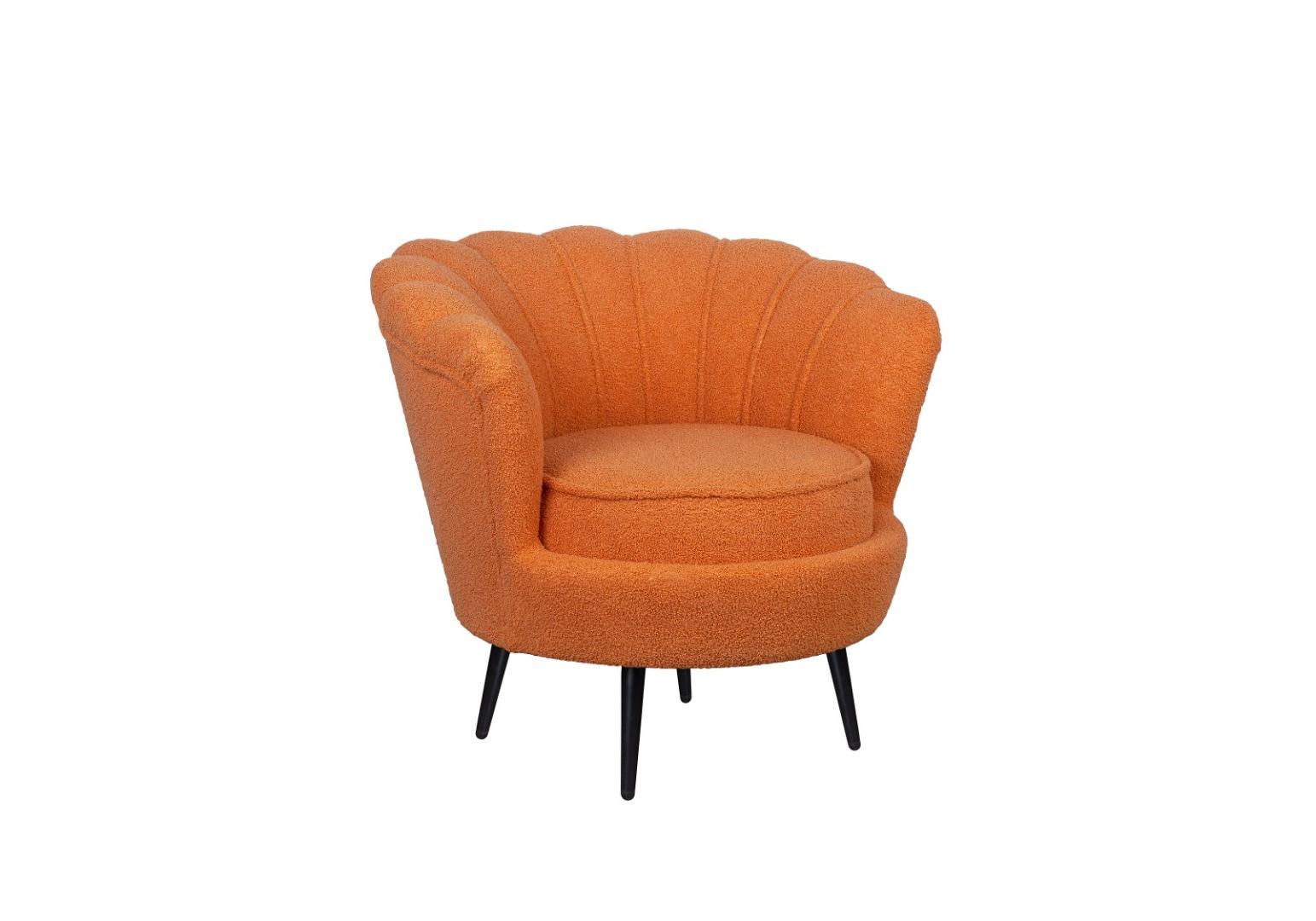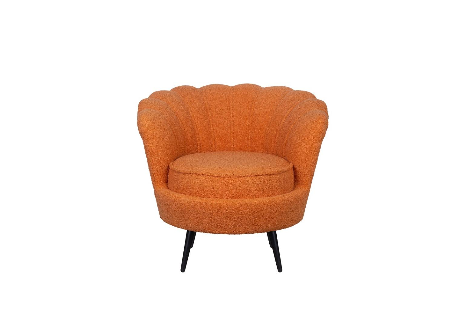 Низкое кресло ракушка Pearl Orange Boucle на черных ножках