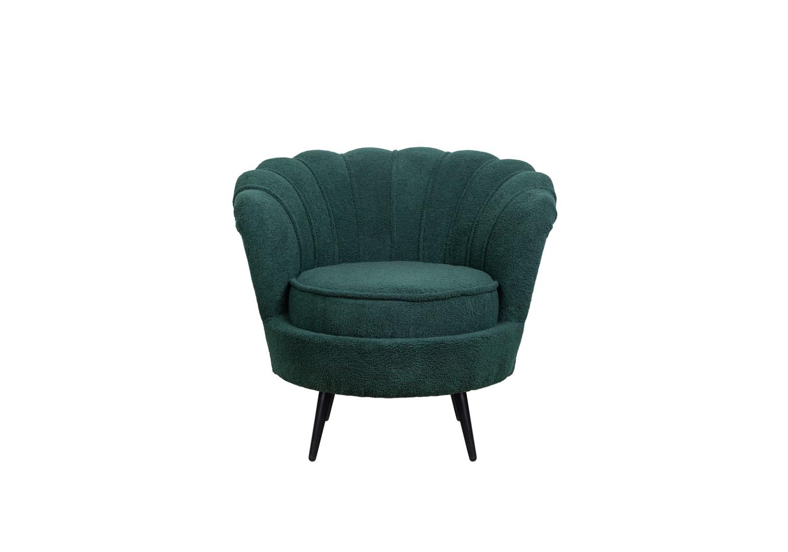 Низкое кресло ракушка Pearl зеленый Boucle на черных ножках